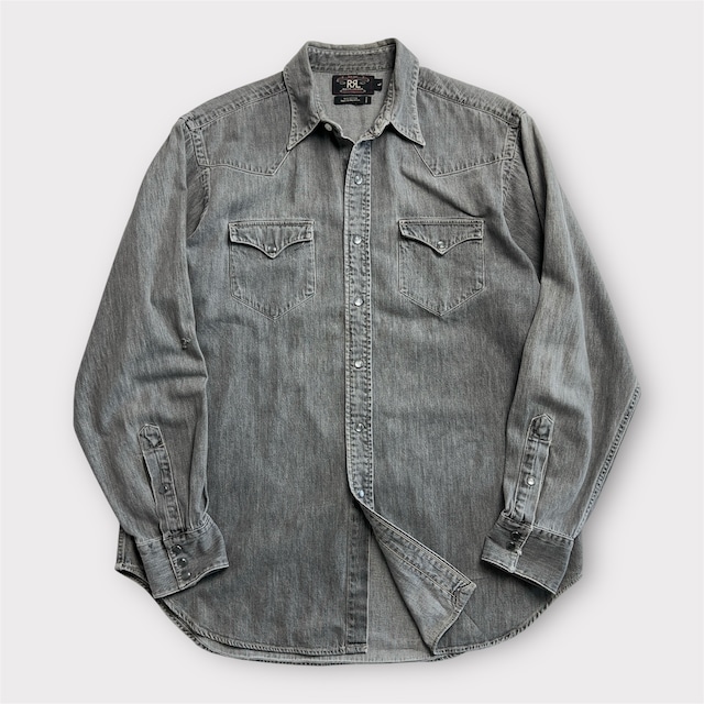 90's RRL by Ralph Lauren Black Denim Western Shirt 90年代 ダブルアールエル デニムシャツ ウエスタンシャツ ブラックデニム スナップボタン ラルフローレン SIZE L 3つ星タグ【1000A5209】【送料無料】