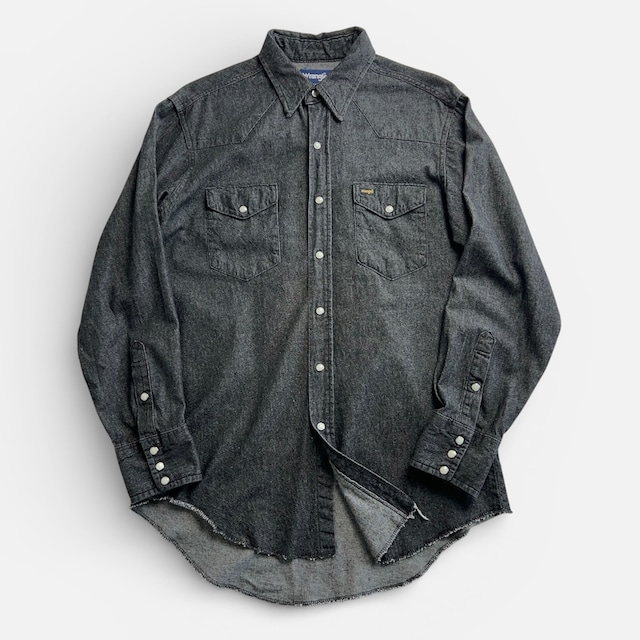 1980's Wrangler 70127BK BLACK DENIM WESTERN SHIRT 80年代 ラングラー デニムウエスタンシャツ 先染めブラック MADE IN USA SIZE 16 1/2【1000A5208】【送料無料】