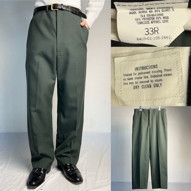 1980's U.S.MILITALY WOOL×POLY SLACKS SERGE ARMY GREEN W33 80年代 米軍 アメリカ軍 スラックス ミリタリー ウール アーミーグリーン カーキ 【1000A5126】【送料無料】
