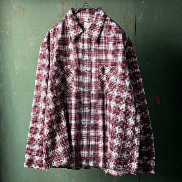1970's JCPenney Ombre Plaid Wool Shirt 70年代 JCペニー オンブレチェック ウールシャツ ボックスカット オープンカラー ループカラー【1000A5011】【送料無料】