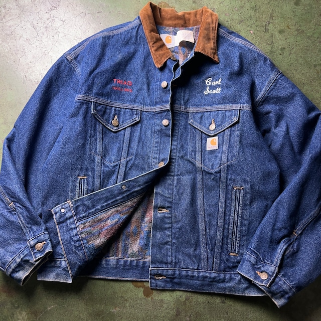 90's Carhartt "Southwest Collection" Lined Denim Jacket XL 90年代 カーハート サウスウエストコレクション デニムジャケット 裏地ブランケット ネイティブ柄 【1000A5033】【送料無料】