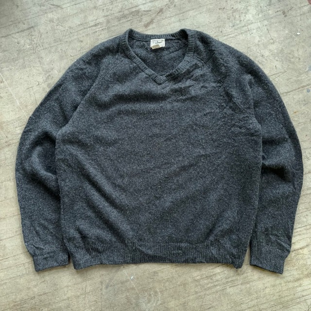 "L.L.Bean" V-neck Wool Knit SIZE XL エルエルビーン Vネック ラグランスリーブ ウール ニット グレー 灰色【3000円均一商品】【TH0947】