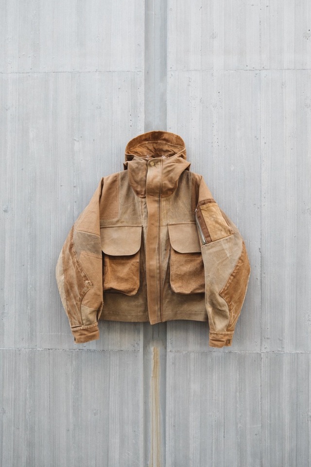 re: SST vintage BLK Leather jacket Ver 裄丈65cm 身幅67cm 脇下袖丈60cm 着丈61cm 当ブランド愛してやまない90s patagonia SSTをオマージュして製作しているフィッシングジャケット、"SST"。 ビンテージ BLK leather jacket を3つ解体し、裁断し縫い合わせてます。 ビンテージの生地を使用していますので抜群の雰囲気を醸し出しています。 こちらの商品は1点物になります ポケット、ジップ、ボタン、タグ、、、 元の素材のよさを残しつつ、SSTに落とし込みました。 Thではカラーや素材を変更していますが改めてこちらの形のよさを再認識します。 溺愛してやまないからこそリスペクトを込めて オリジナルに存在しないものを。 私達なりのSSTです。