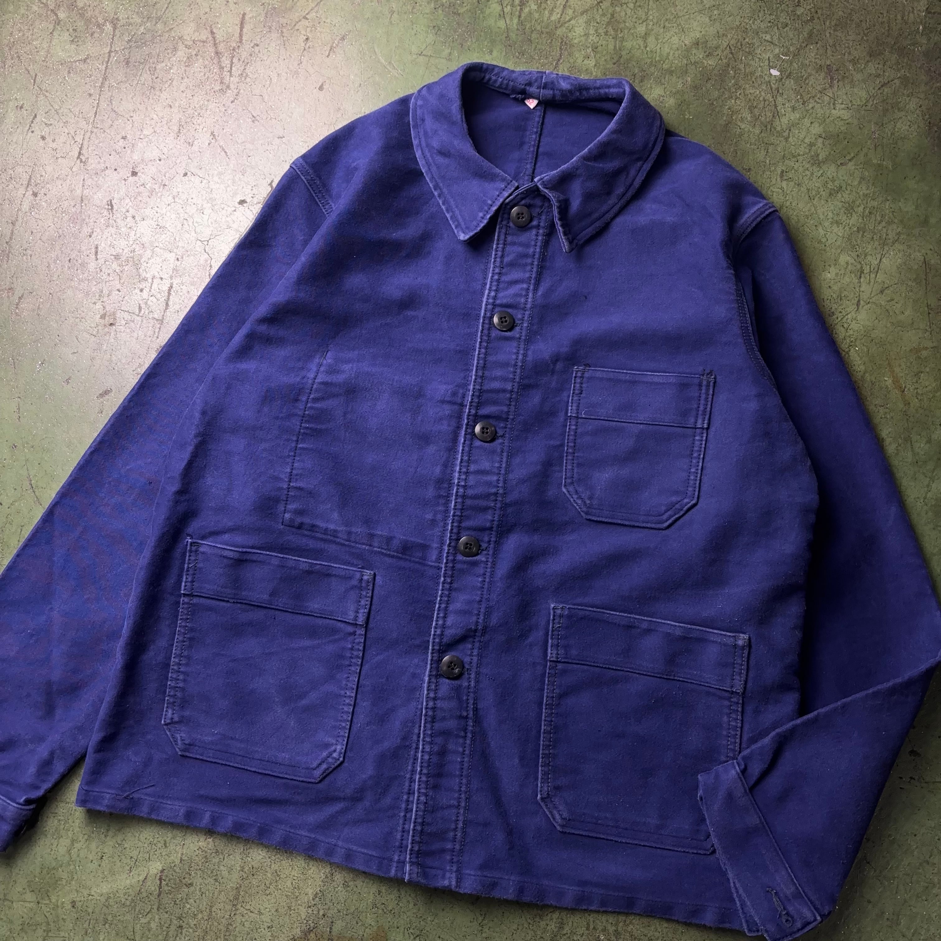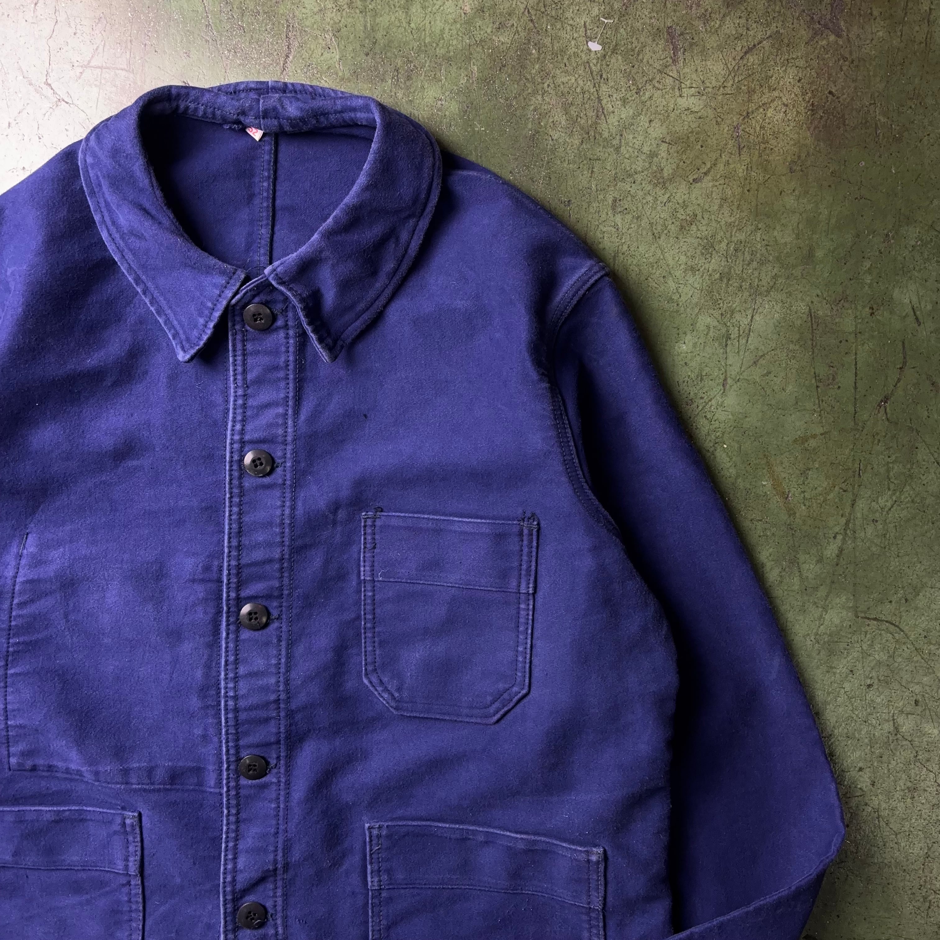 40’s 50’s "LE MONT ST MICHEL" Moleskine EURO Work Jacket SIZE 42 MADE IN FRANCE 40年代 50年代 モンサンミッシェル モールスキン ユーロワークジャケット ブルー 【1000A3108】【送料無料】
