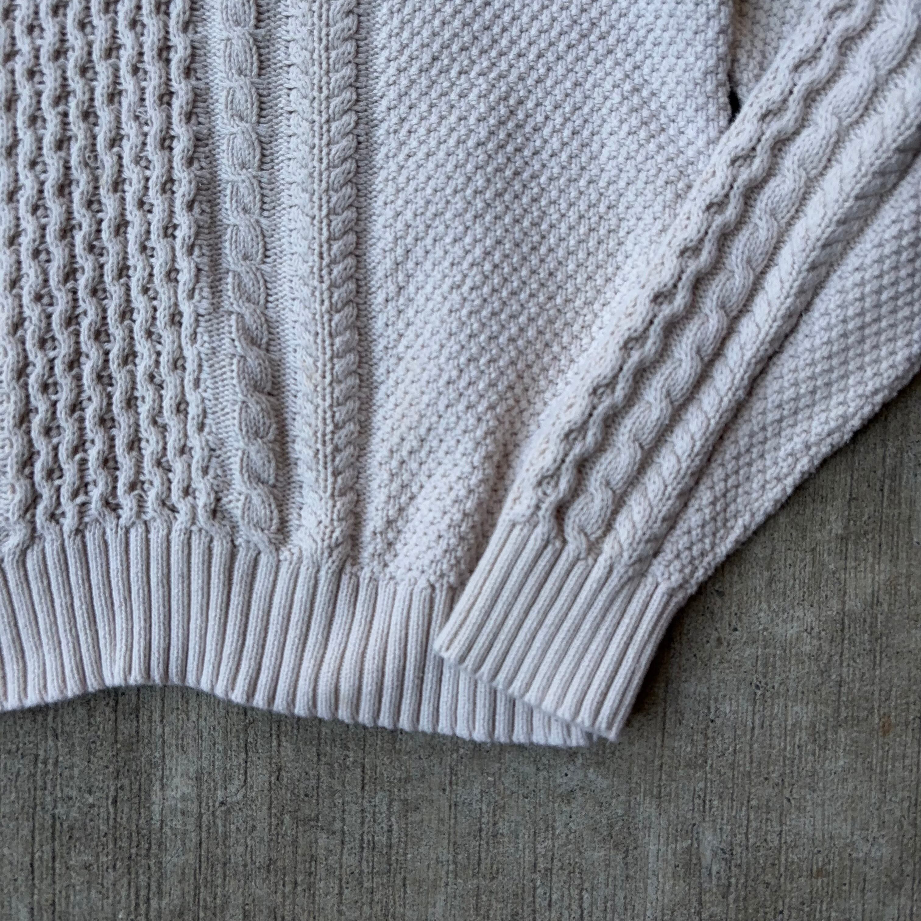 OLD NAVY Cotton Aran Knit Sweater SIZE M オールドネイビー コットン アラン ニット オフホワイト【3000円均一商品】【TH1261】