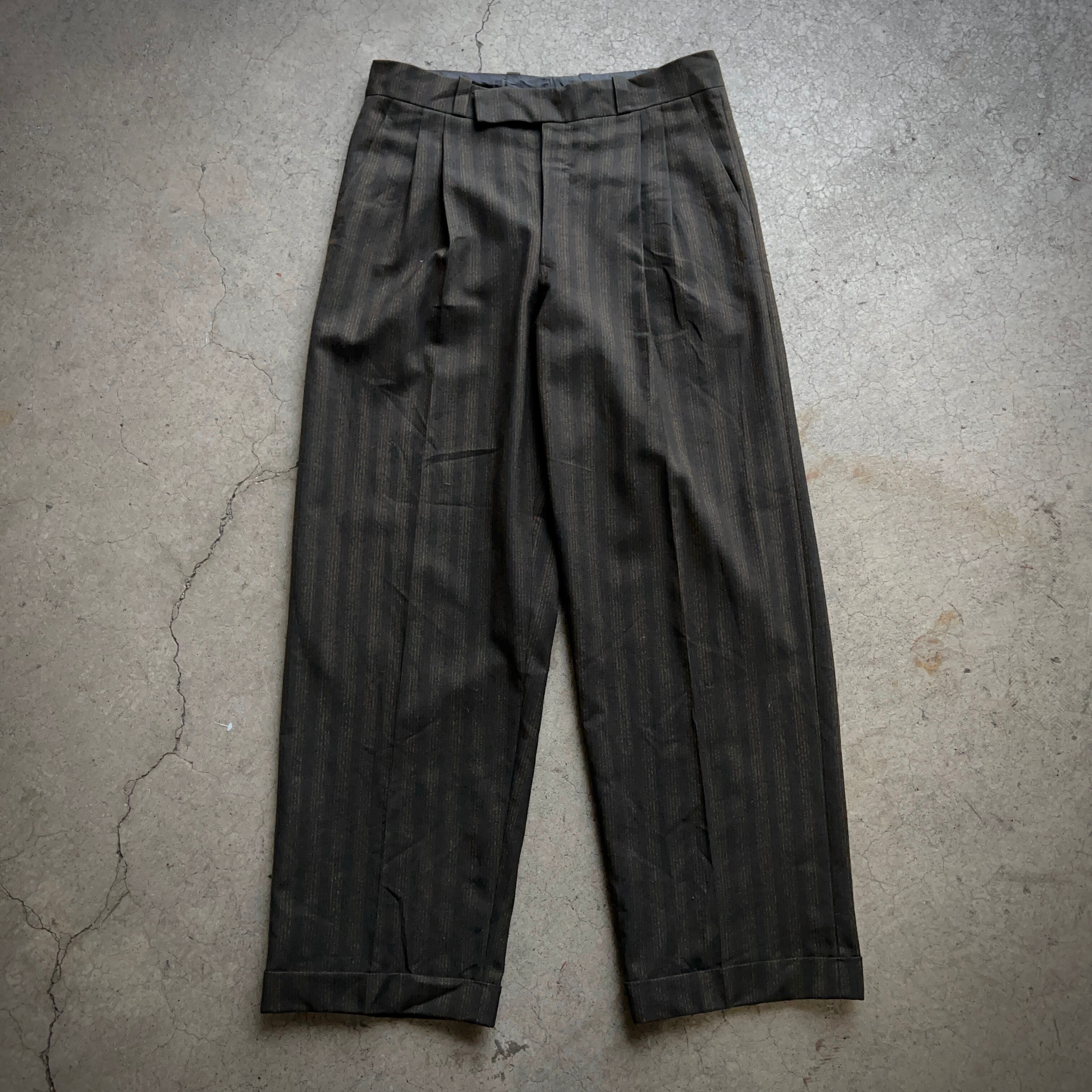 50年代60年代のヴィンテージ物かと思ってしまうくらい雰囲気のある2タックストライプスラックス。