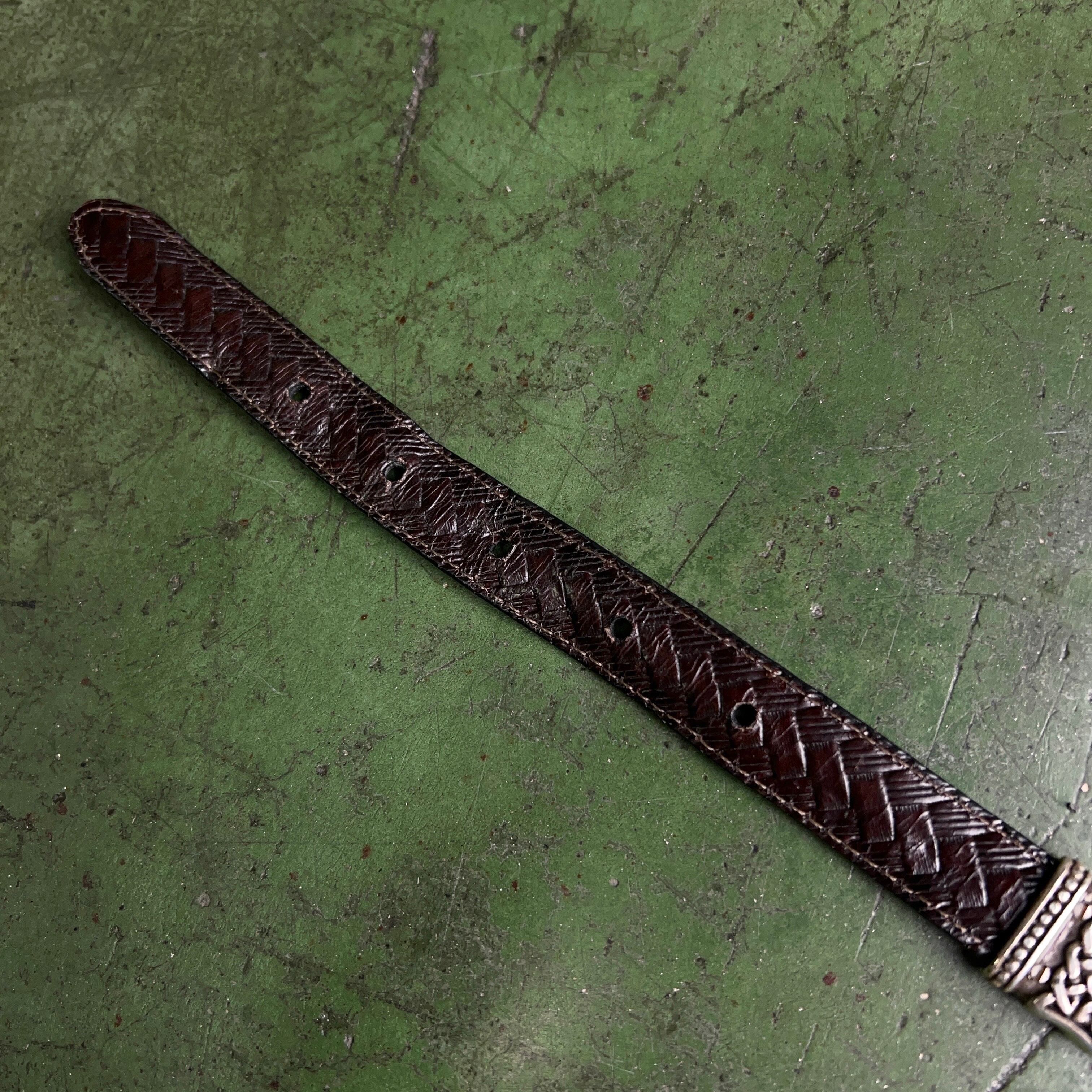 アメリカで仕入れたユニークなタイプのレザーベルト。金具の連結部分がくるくると回るため表面のブラックレザーと裏面のブラウンレザーを好きにカスタマイズできる仕様。
