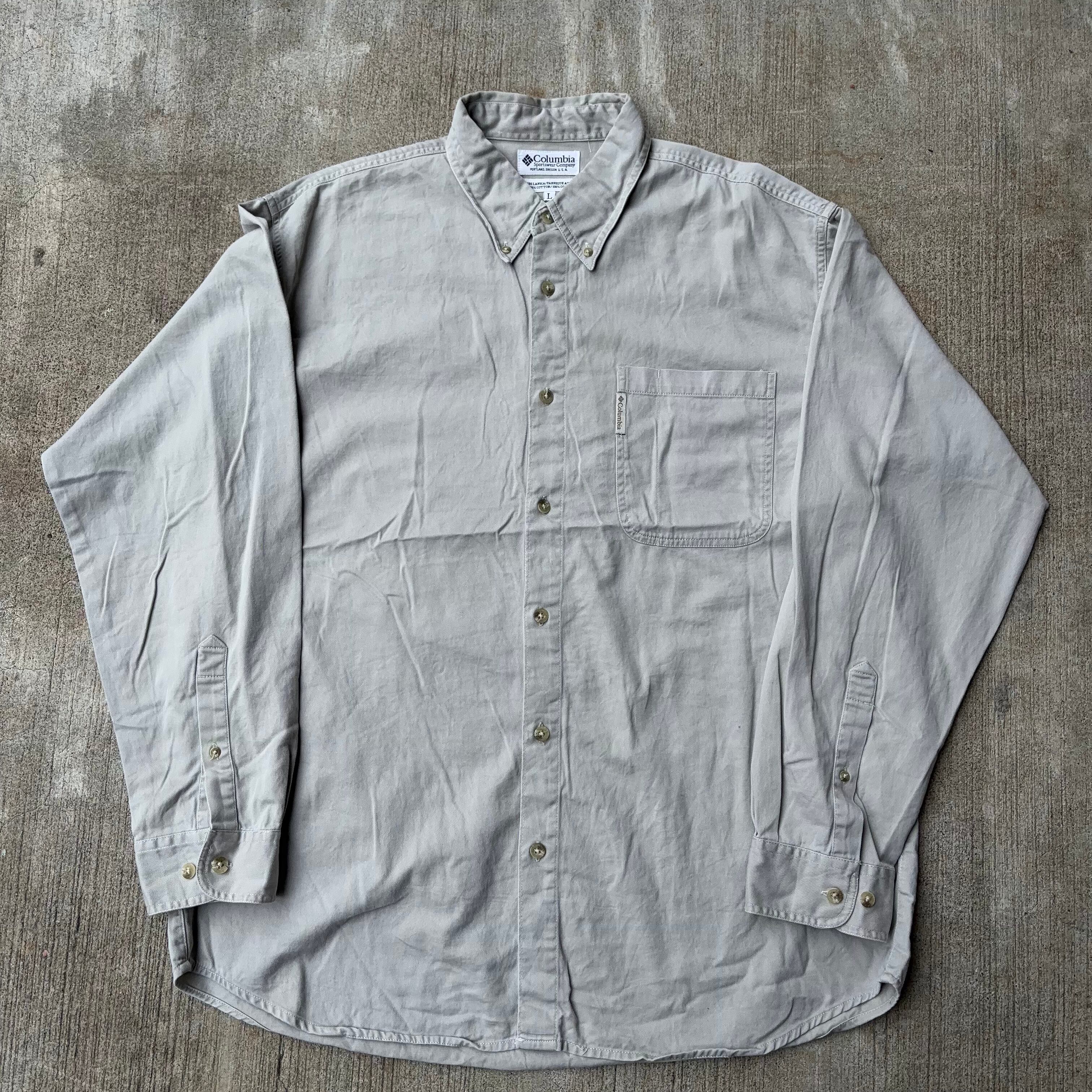90’s Columbia Cotton L/S Shirt SIZE L 90年代 コロンビア コットン 長袖シャツ ベージュ【3000円均一商品】【TH1301】