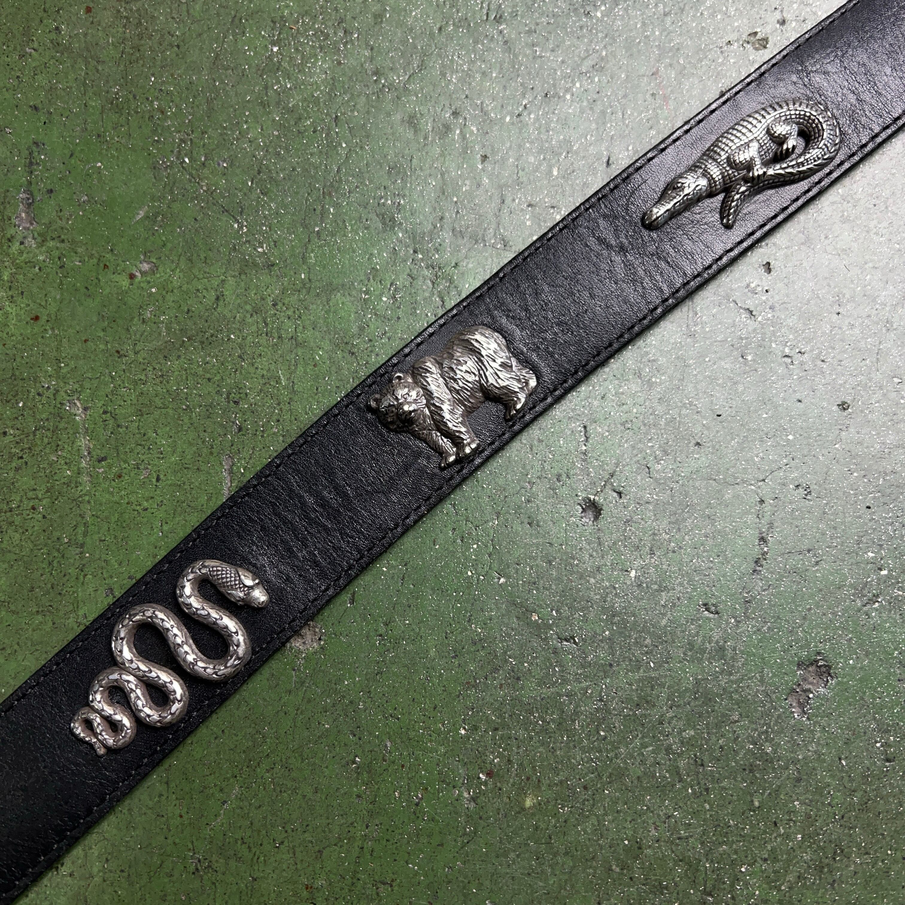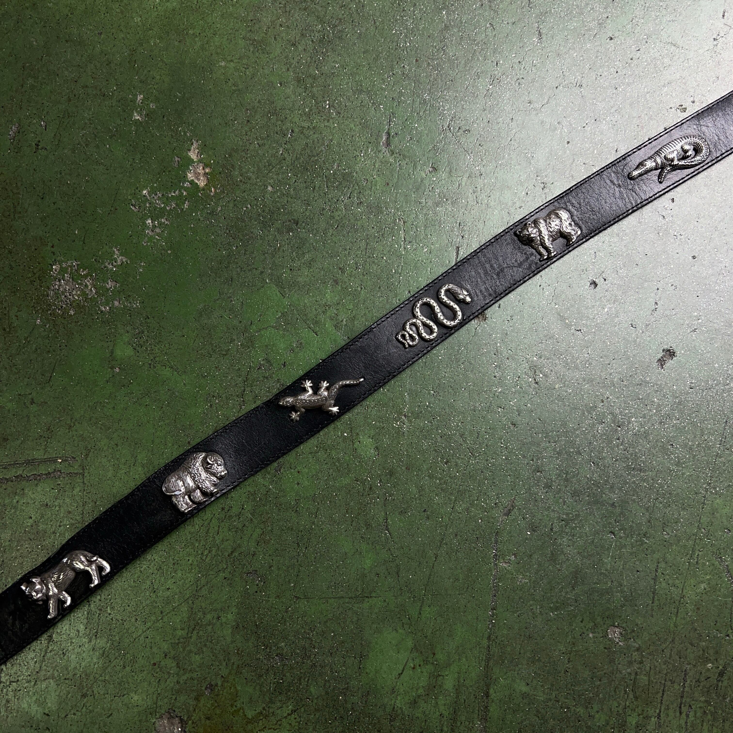 こちらは動物のメタルコンチョが取り付けられたレザーベルトとなります。