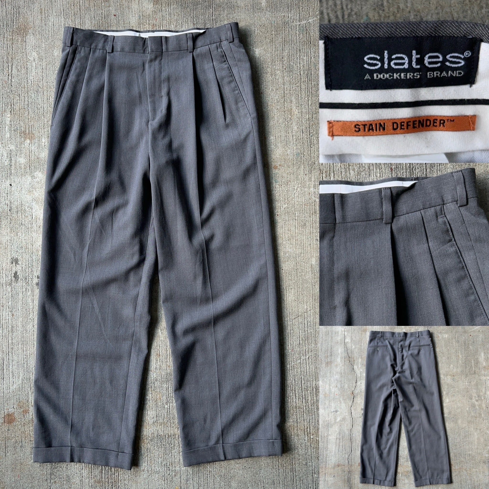 00's Levi's SLATES 2tuck Wide Slacks W34 00年代 リーバイス スレイツ 2タック スラックス グレー 【1000A3136】