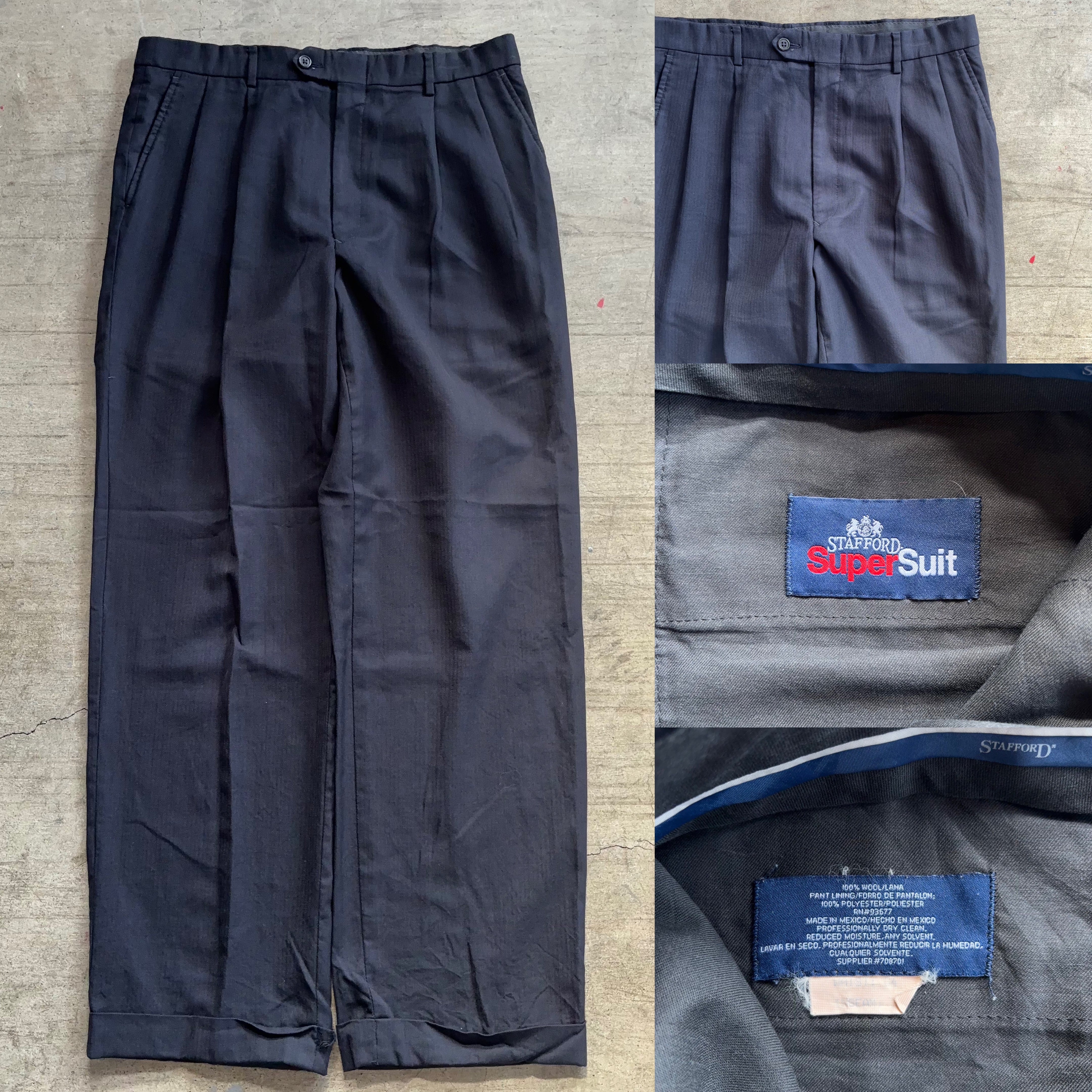 STANFORDO 2Tuck Wide Slacks Pants W34 スタンフォード 2タック入り ワイド スラックス ブラック 黒 スミクロ 墨黒【3000円均一商品】【2点以上の購入で1000円OFF】【TH1324】