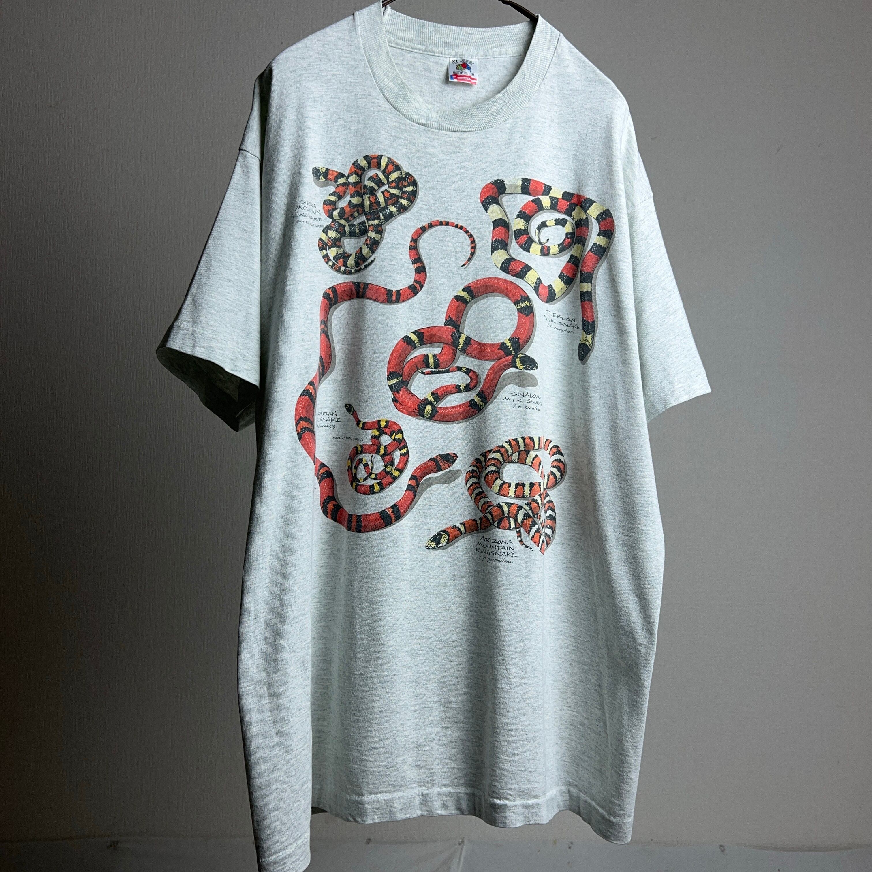 キングヘビ属のカラフルなヘビたちのアートが描かれヘビ好きにはたまらないヴィンテージTシャツ。