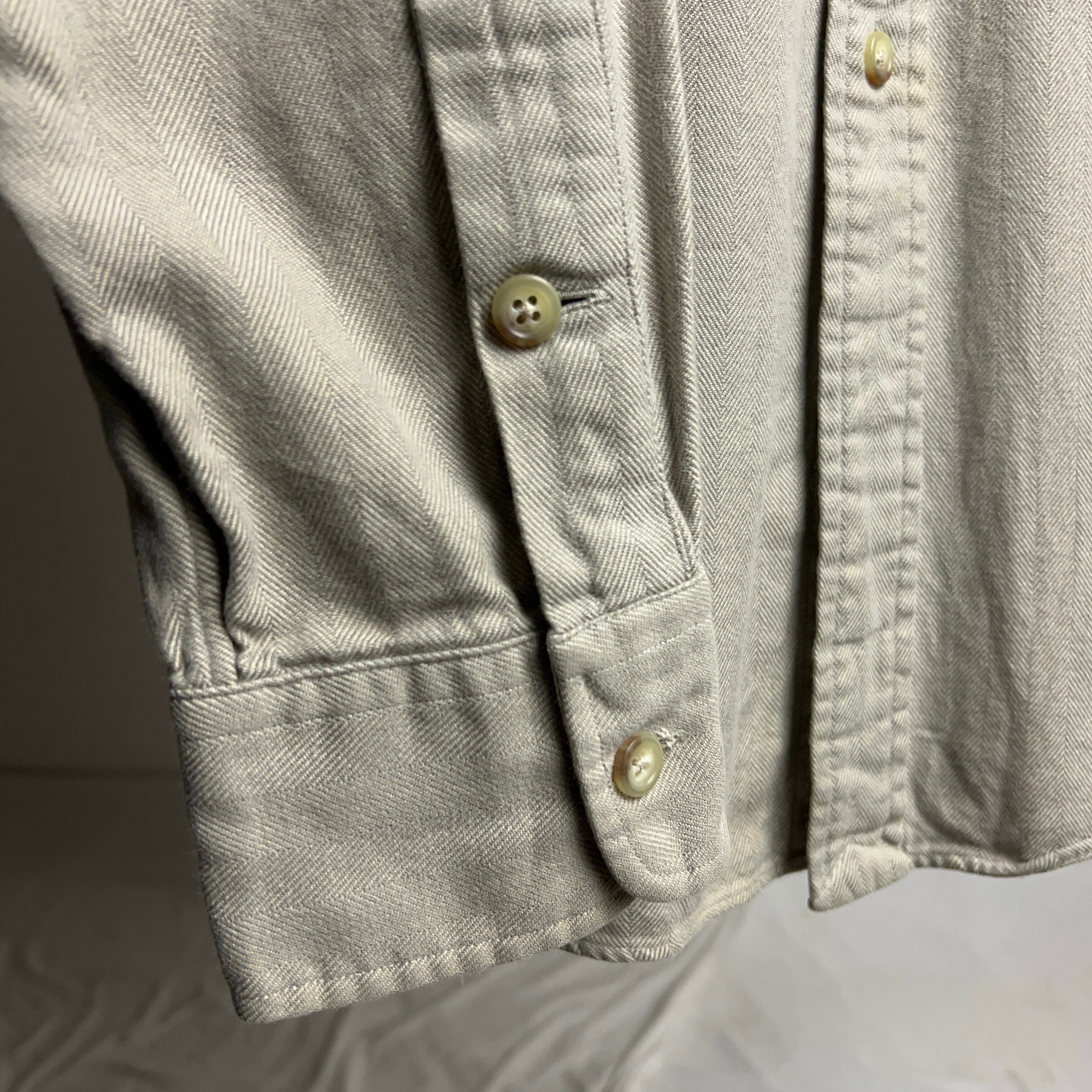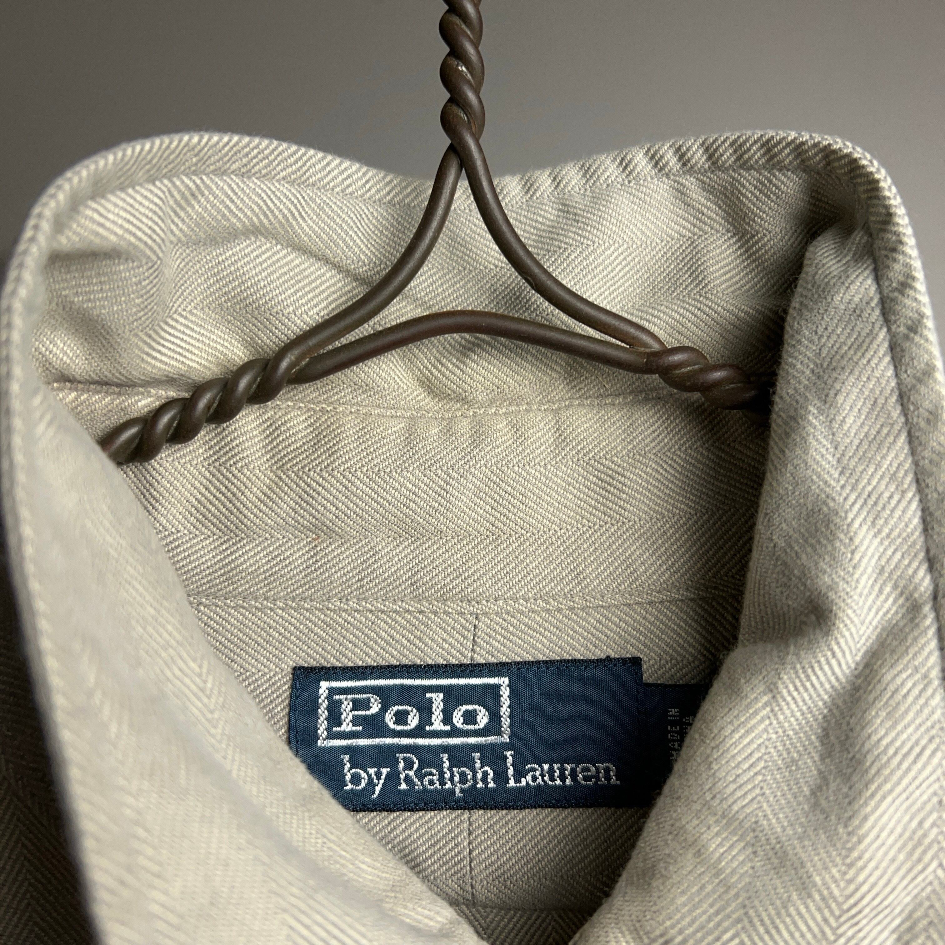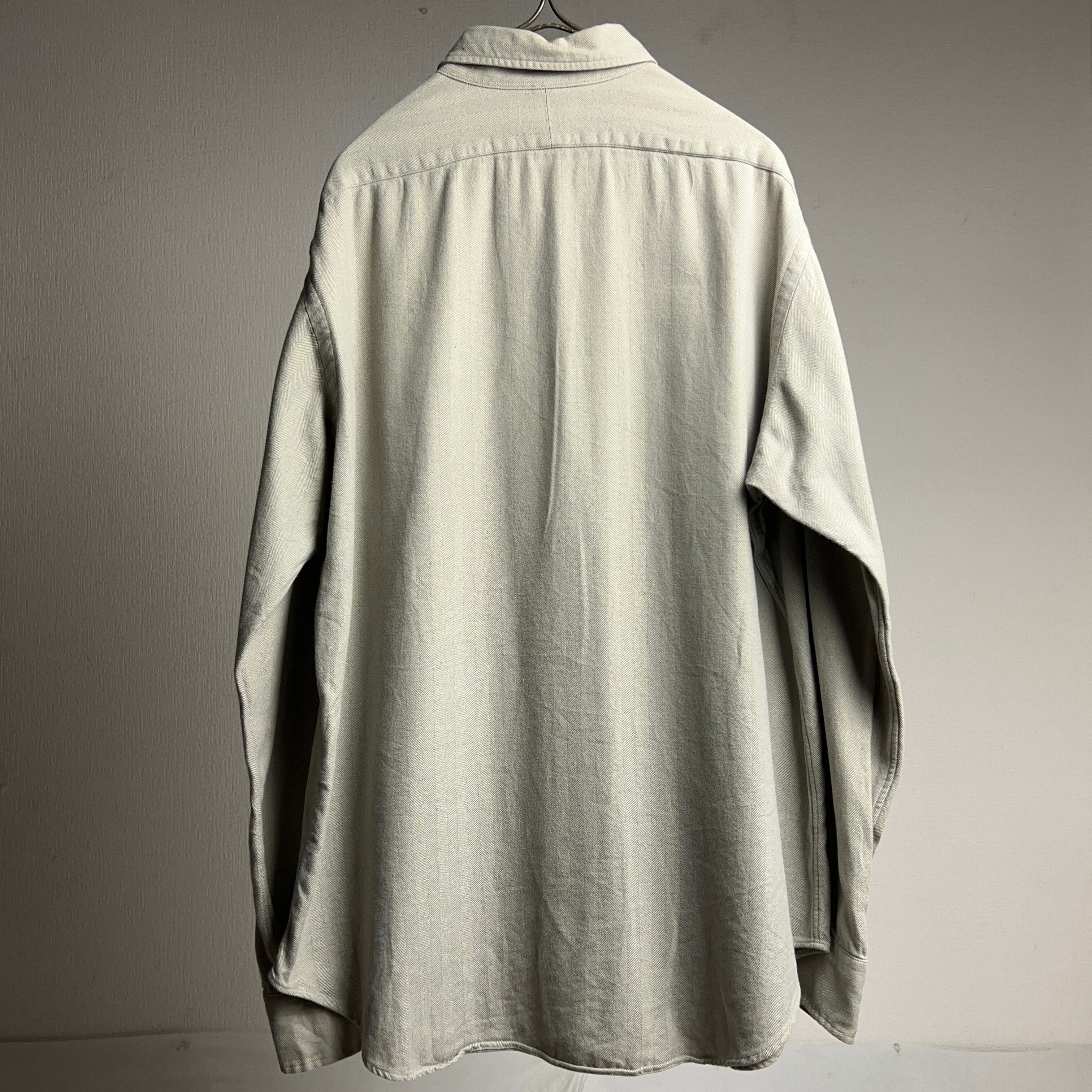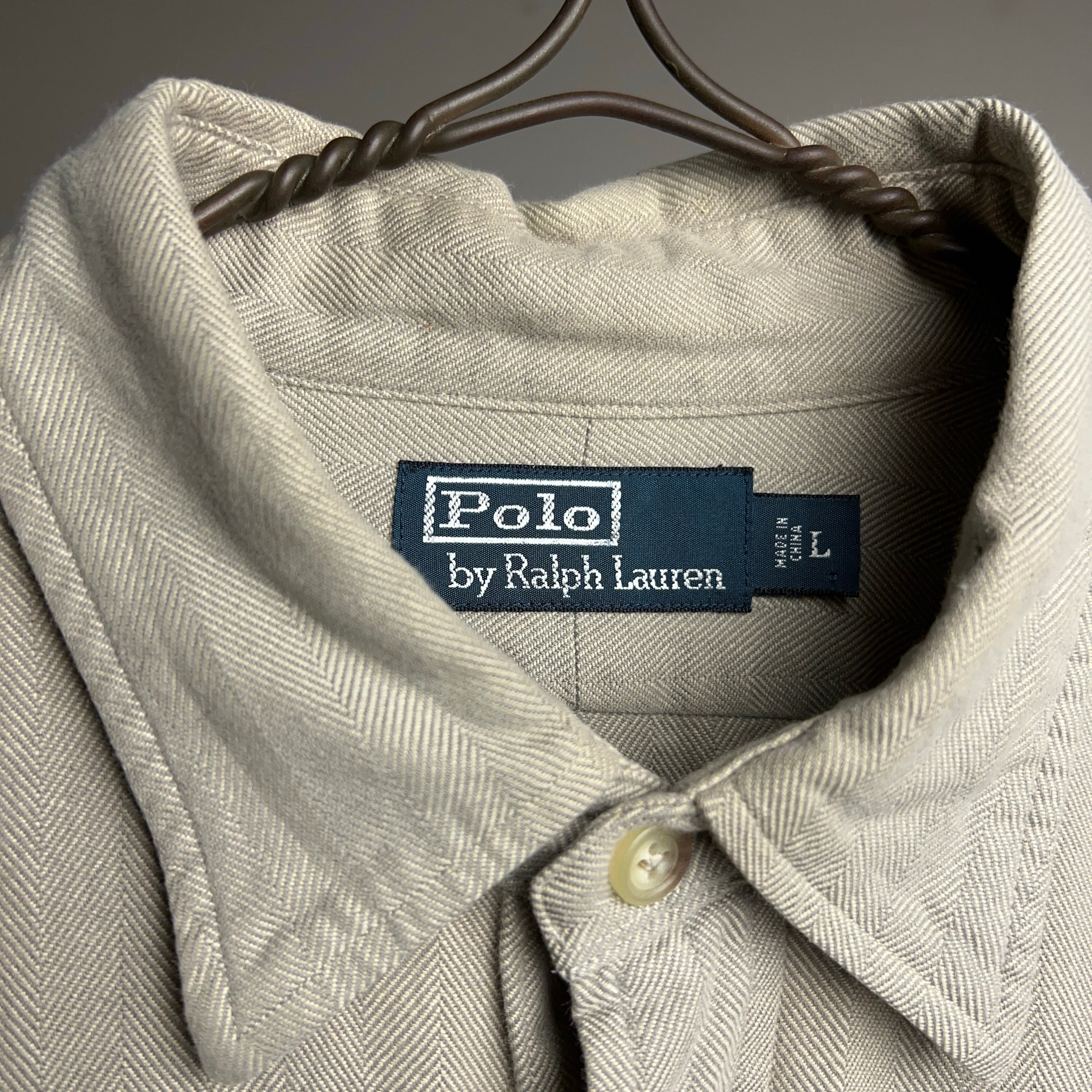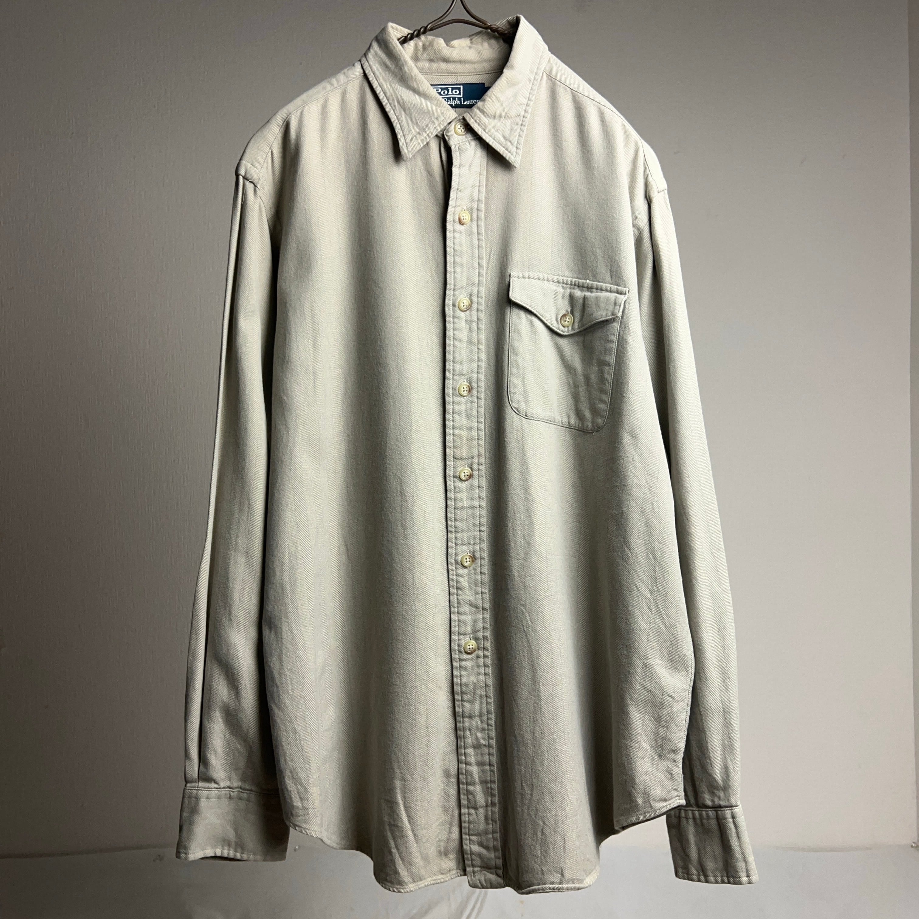 old POLO by Ralph Lauren HBT Cotton L/S Shirt 90年代 00年代 ポロラルフローレン ヘリンボーンツイル コットンシャツ グレージュ【1000A3248】