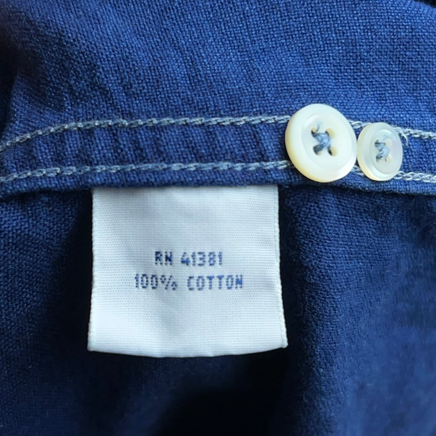 深みのあるインディゴカラーに白のボタンがよく映えています。