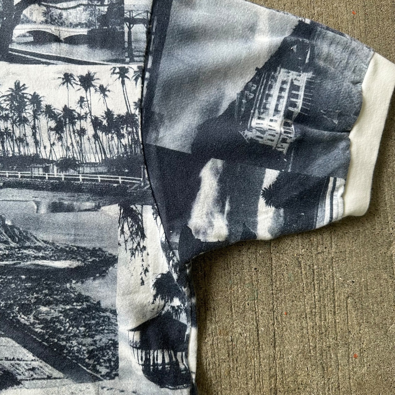 90s CHARK LINE All Over Pattern Art Ringer Short Sleeve Tee shirt Free Size 総柄 アート 半袖Tシャツ リンガー フリーサイズ 90年代【3000円均一商品】【TH1009】