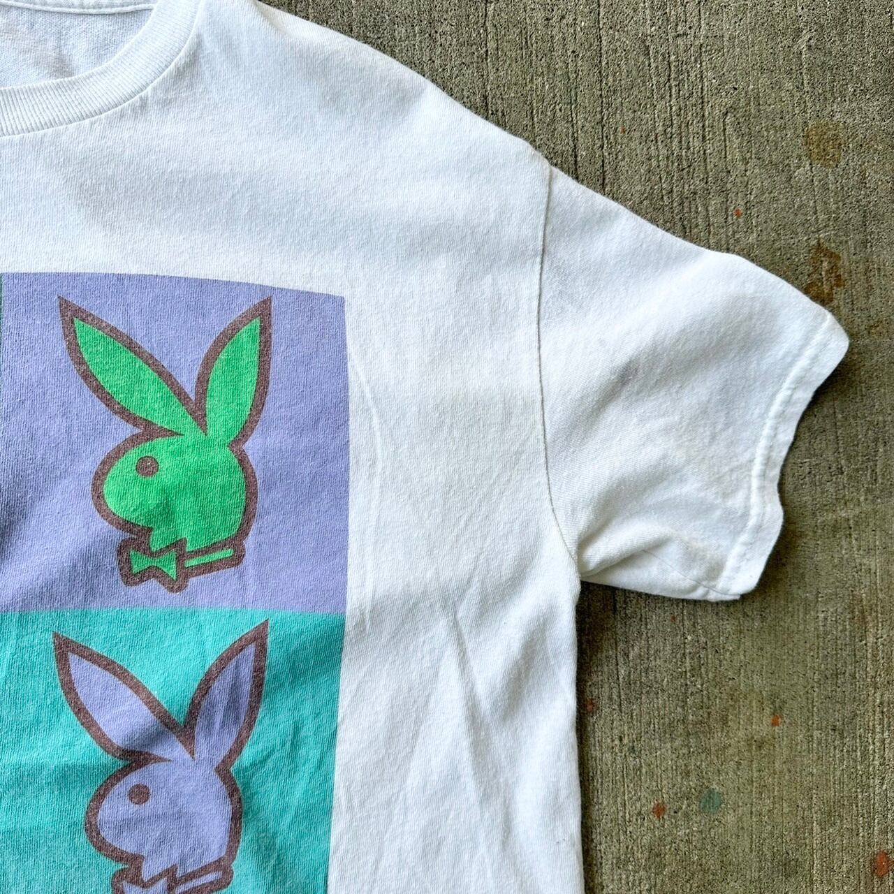 プレイボーイのプリントが入った白Tee。