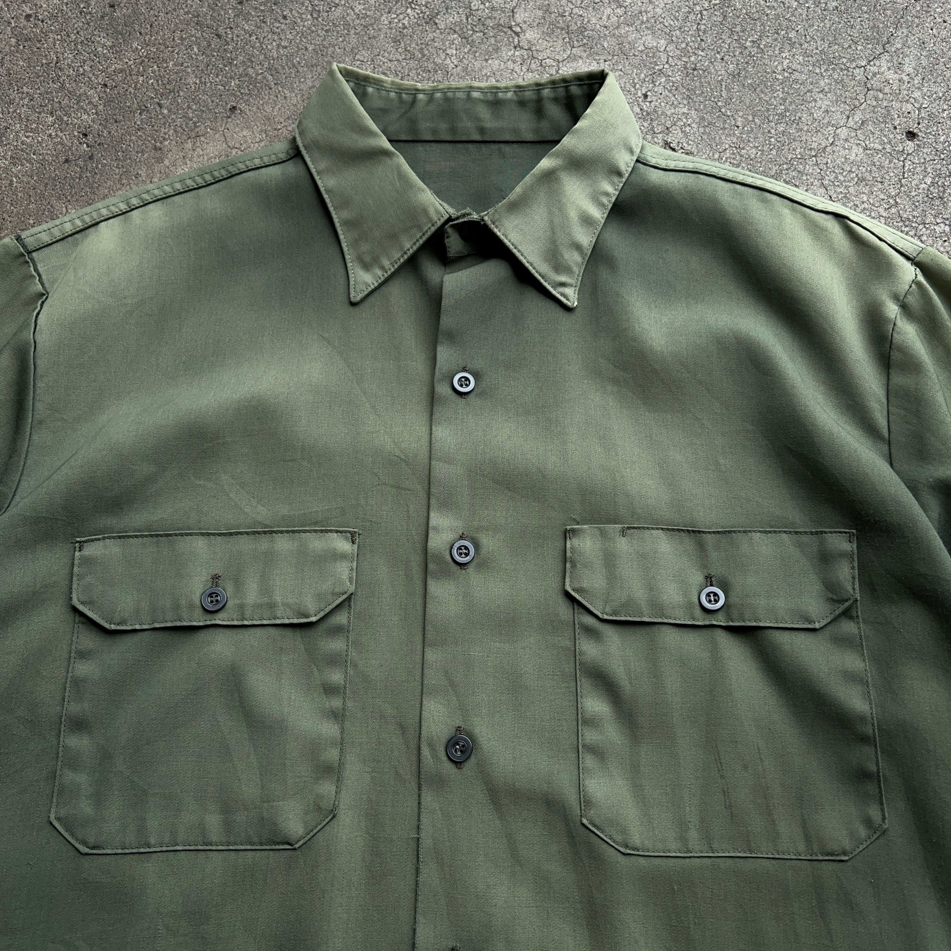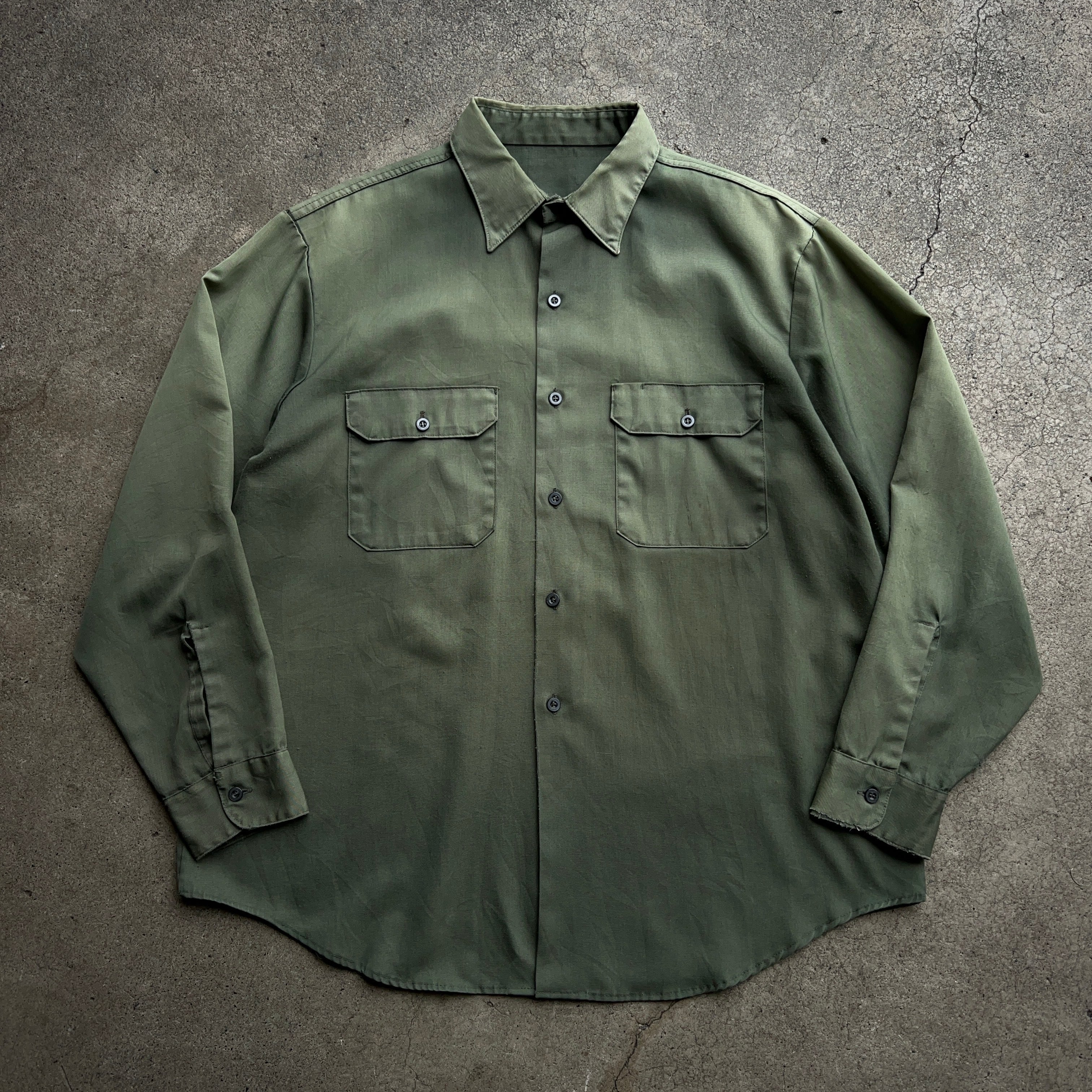 60's~70's Fade Work Shirt 60年代 70年代 フェード ワークシャツ 色褪せ サンフェード カーキ【1000A3275】【送料無料】