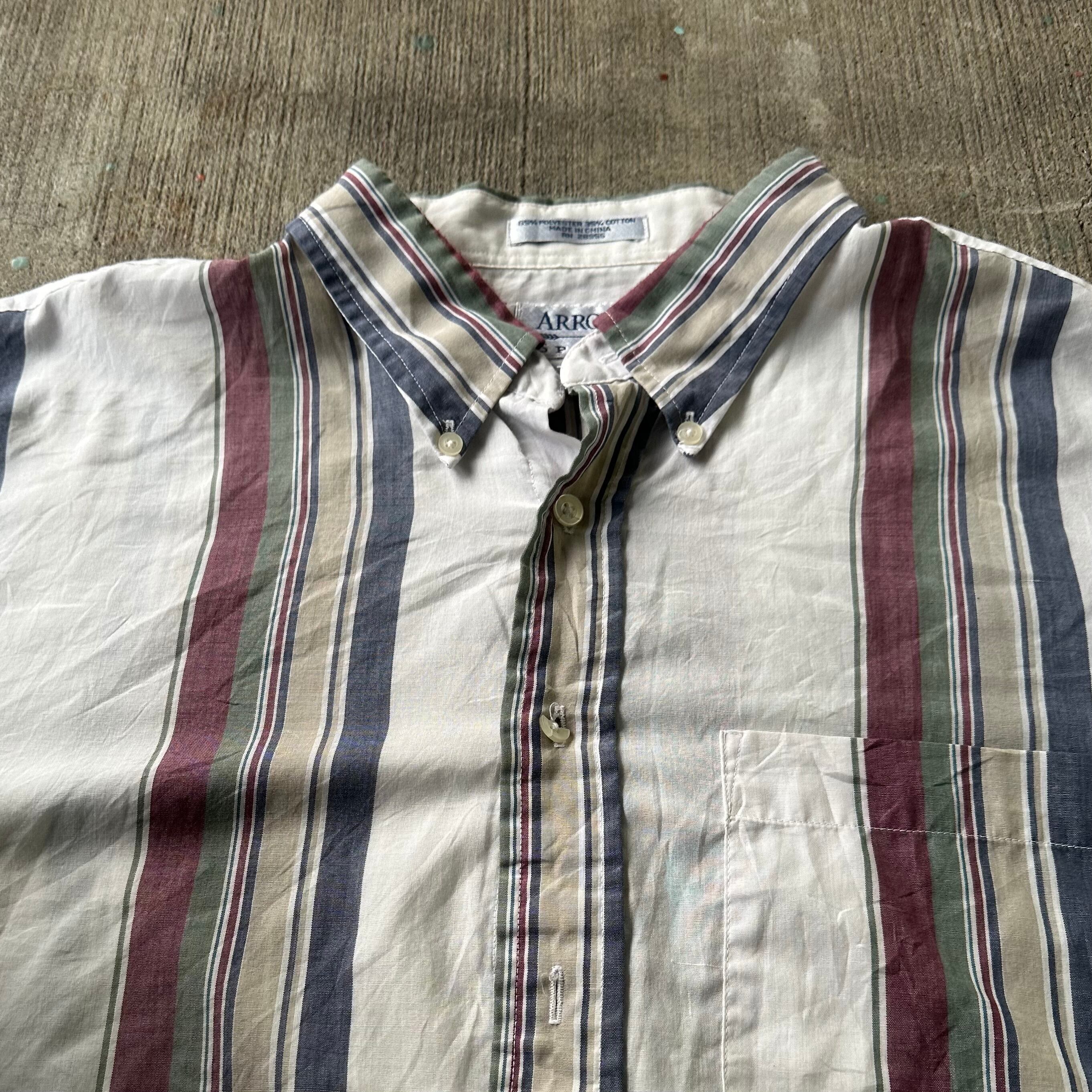 ARROW SPORT POLYESTER COTTON STRIPE Short Sleeve Shirt AMERICAN CASUAl アロー スポーツ ポリエステル コットン ストライプ 半袖シャツ 2XLサイズ アメリカン カジュアル【TH1021】【3000円均一商品】