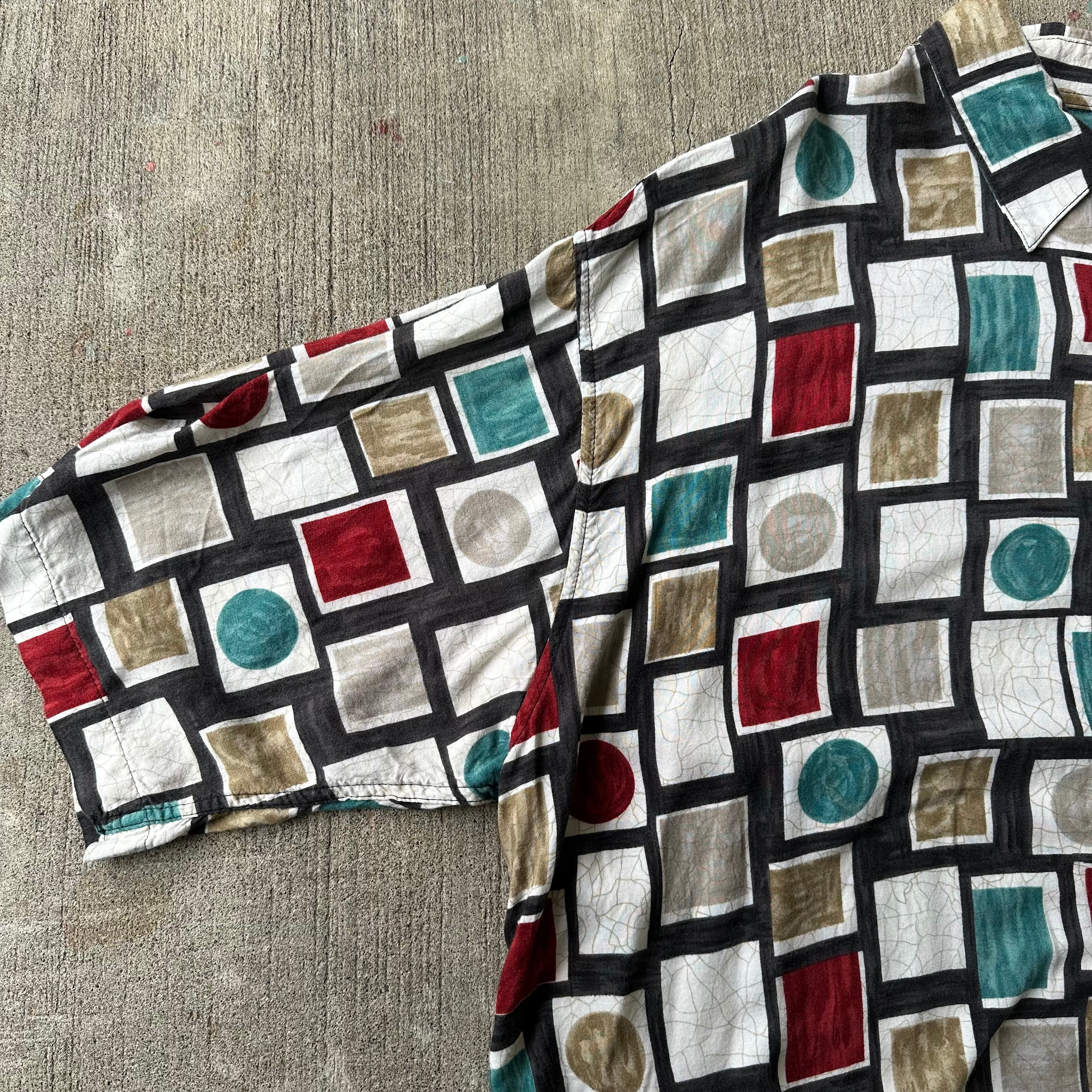 PRESWICK&MOORE 00s ART ALL OVER PATTERN Short Sleeve Shirt RAYON プレスウィック&ムーア アート 総柄 半袖シャツ レーヨン XLサイズ 【TH1024】【3000円均一商品】