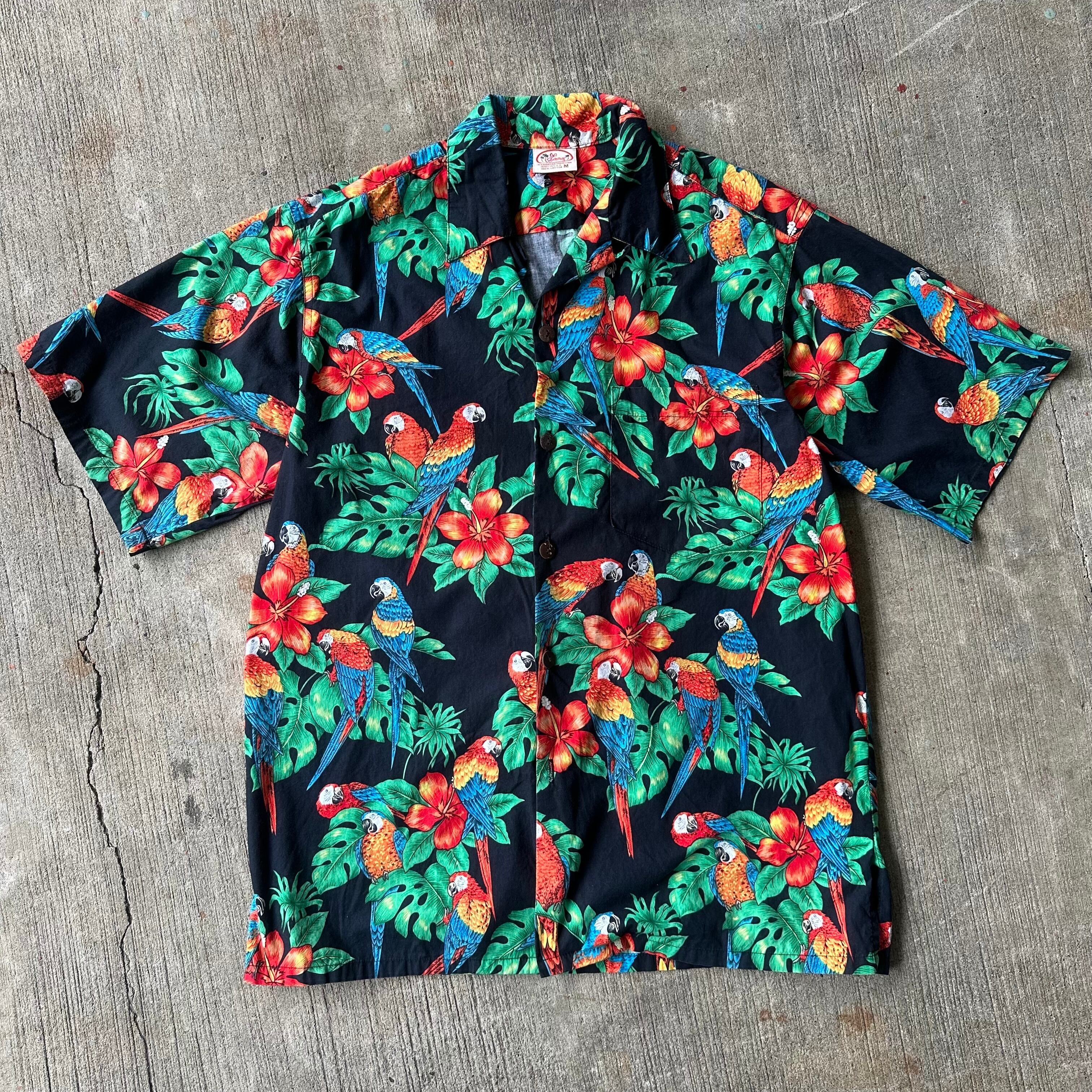 GOBaReFooT 90s AMERICAN CASUAL GOOD REGULAR BLACK Short Sleeve ALOHA Shirt ゴーベアフット アメカジ グッドレギュラー ブラック半袖シャツ アロハ Mサイズ【TH1042】【3000円均一商品】