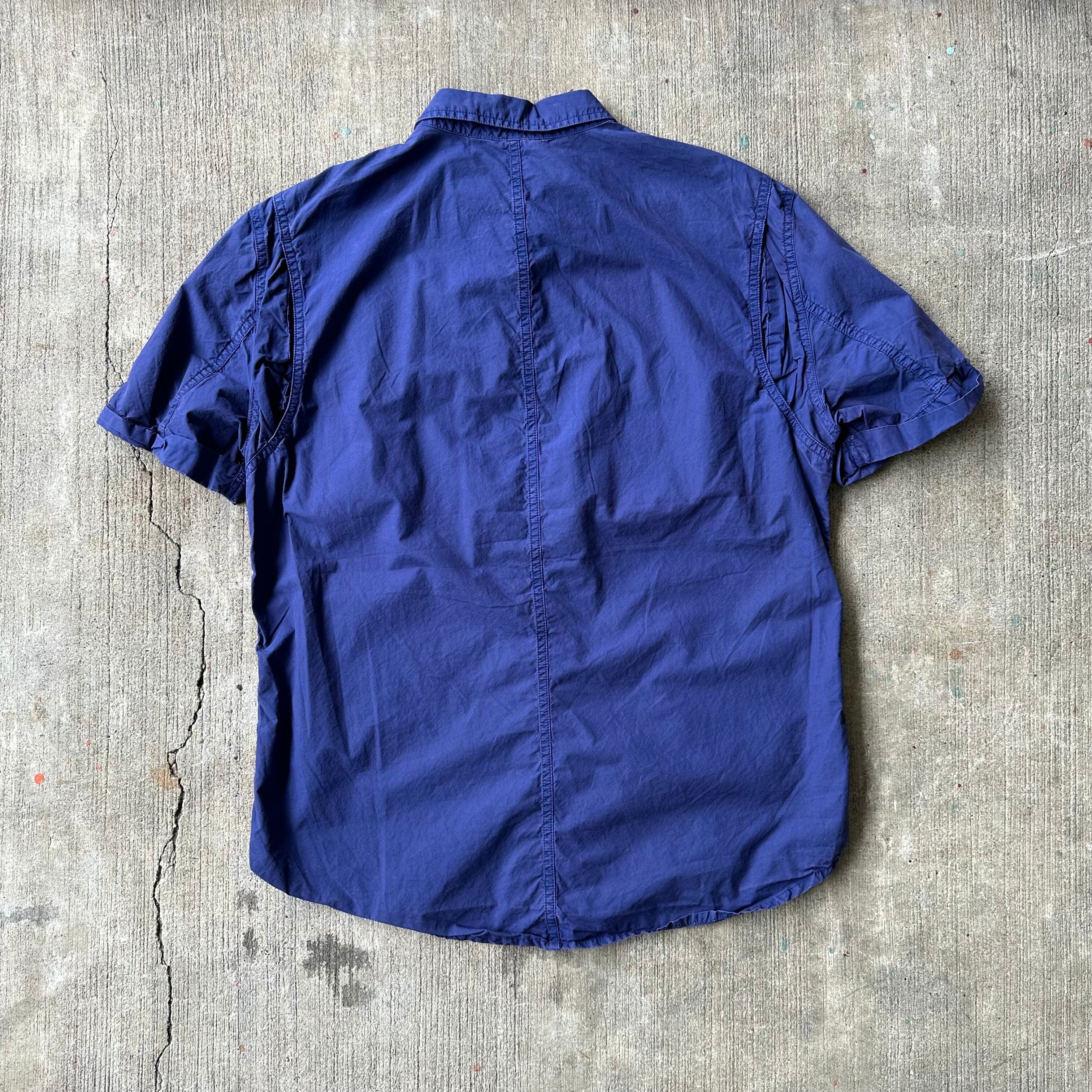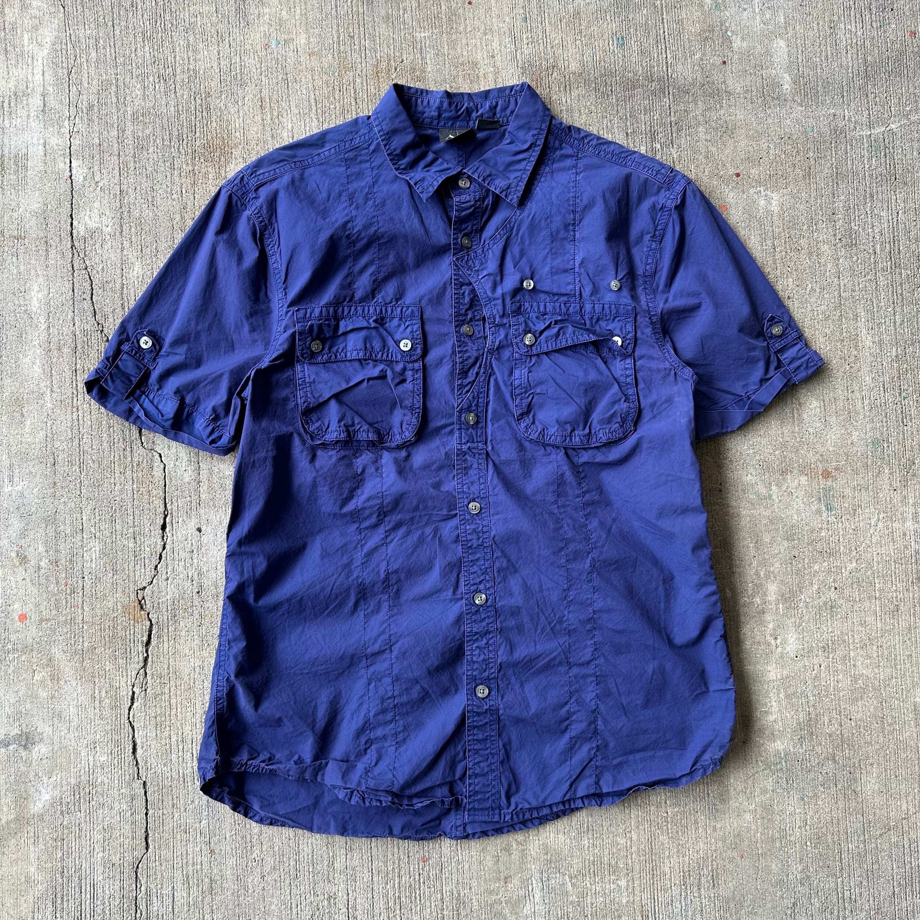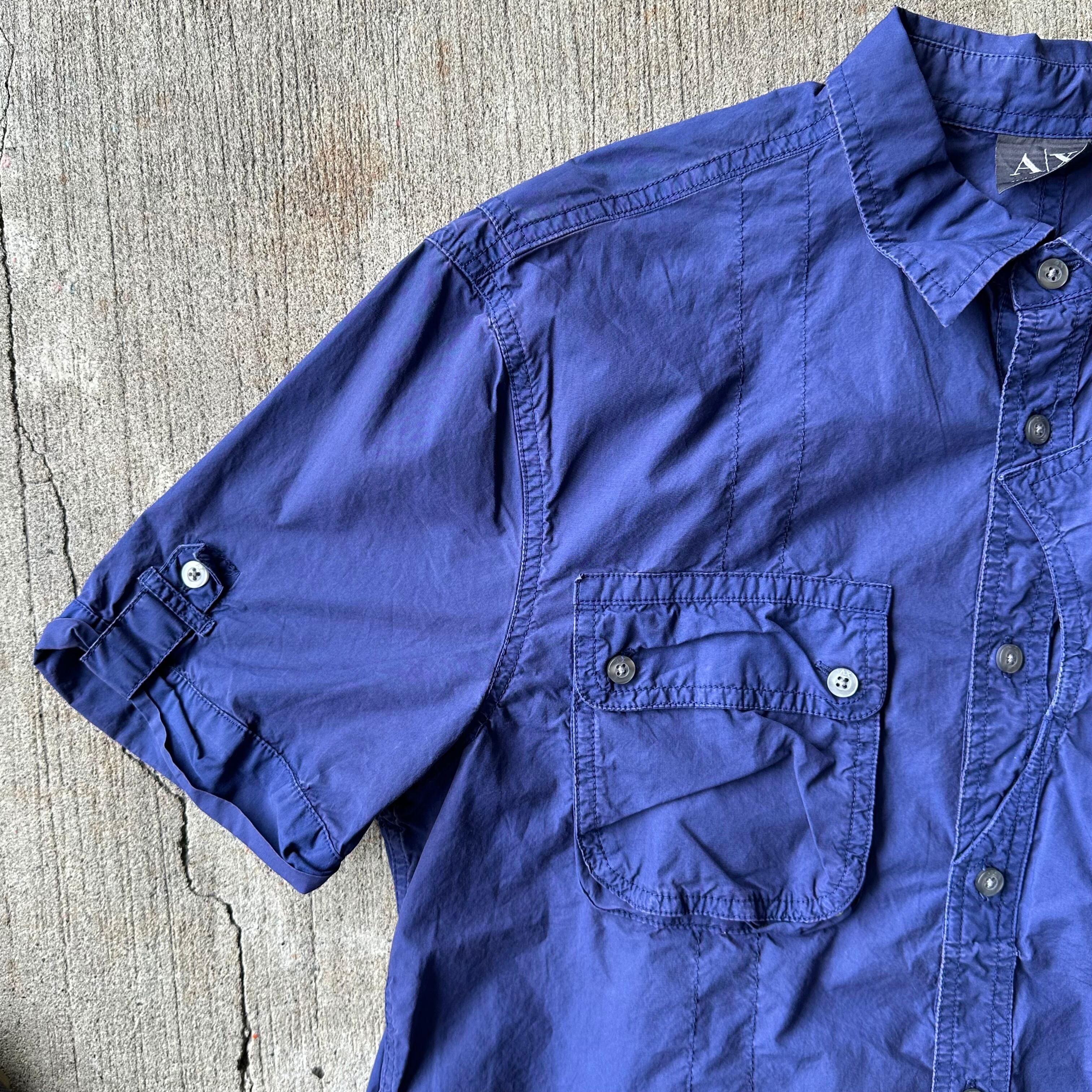 ARMANI EXCHANGE BRAND MODE EGGPLANT NAVY Short Sleeve Work Shirt アルマーニ エクスチェンジ ブランド モード 茄子紺 半袖 ワークシャツ Mサイズ【TH1044】【3000円均一商品】