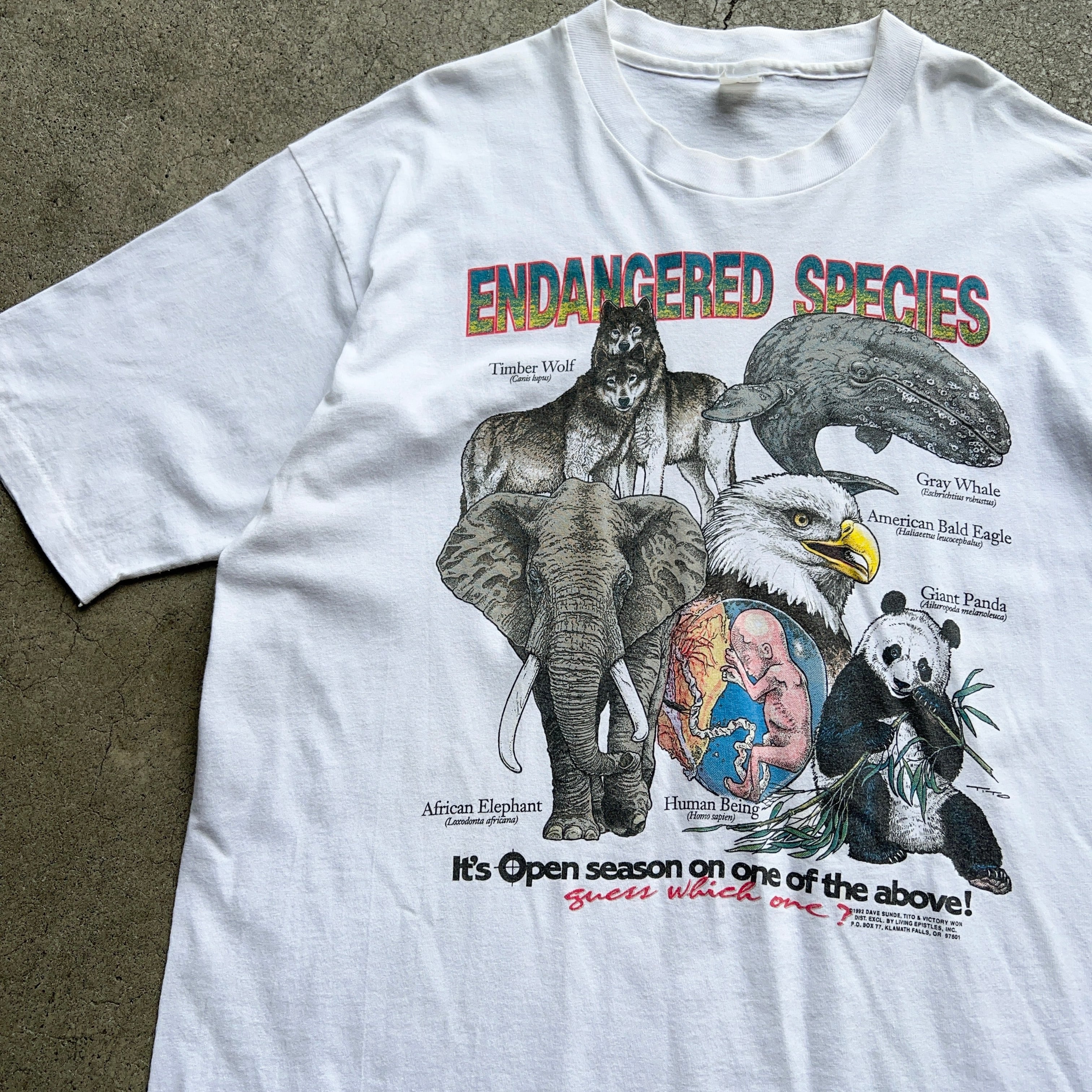 90's 絶滅危惧種 Tshirt 90年代 動物 クジラ オオカミ ワシ パンダ ゾウ 人 Tシャツ 白 ホワイト MADE IN USA アメリカ製 USA製【1000A3304】