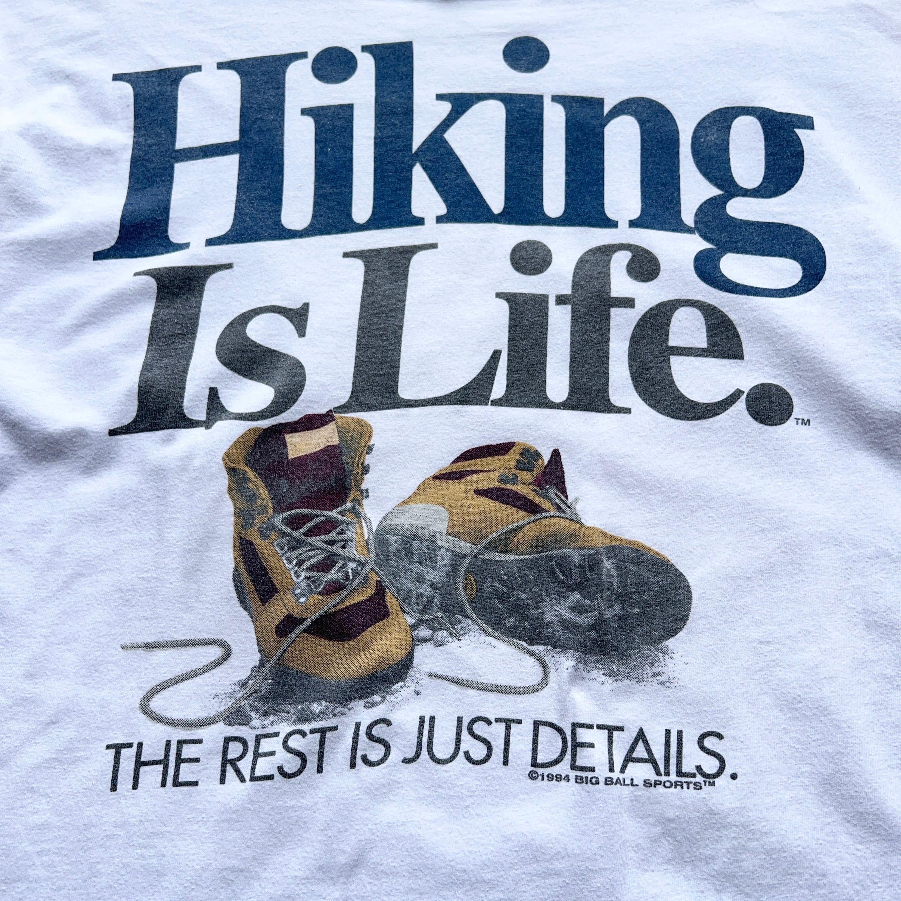 90's "HIKING IS LIFE" Tshirt 90年代 ハイキング トレッキング 登山 Tシャツ 白 ホワイト MADE IN USA 【1000A3307】