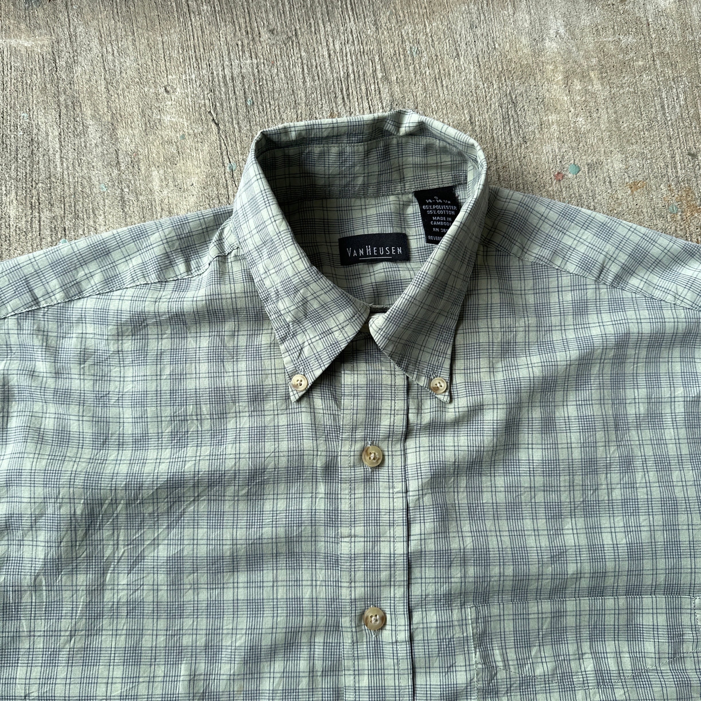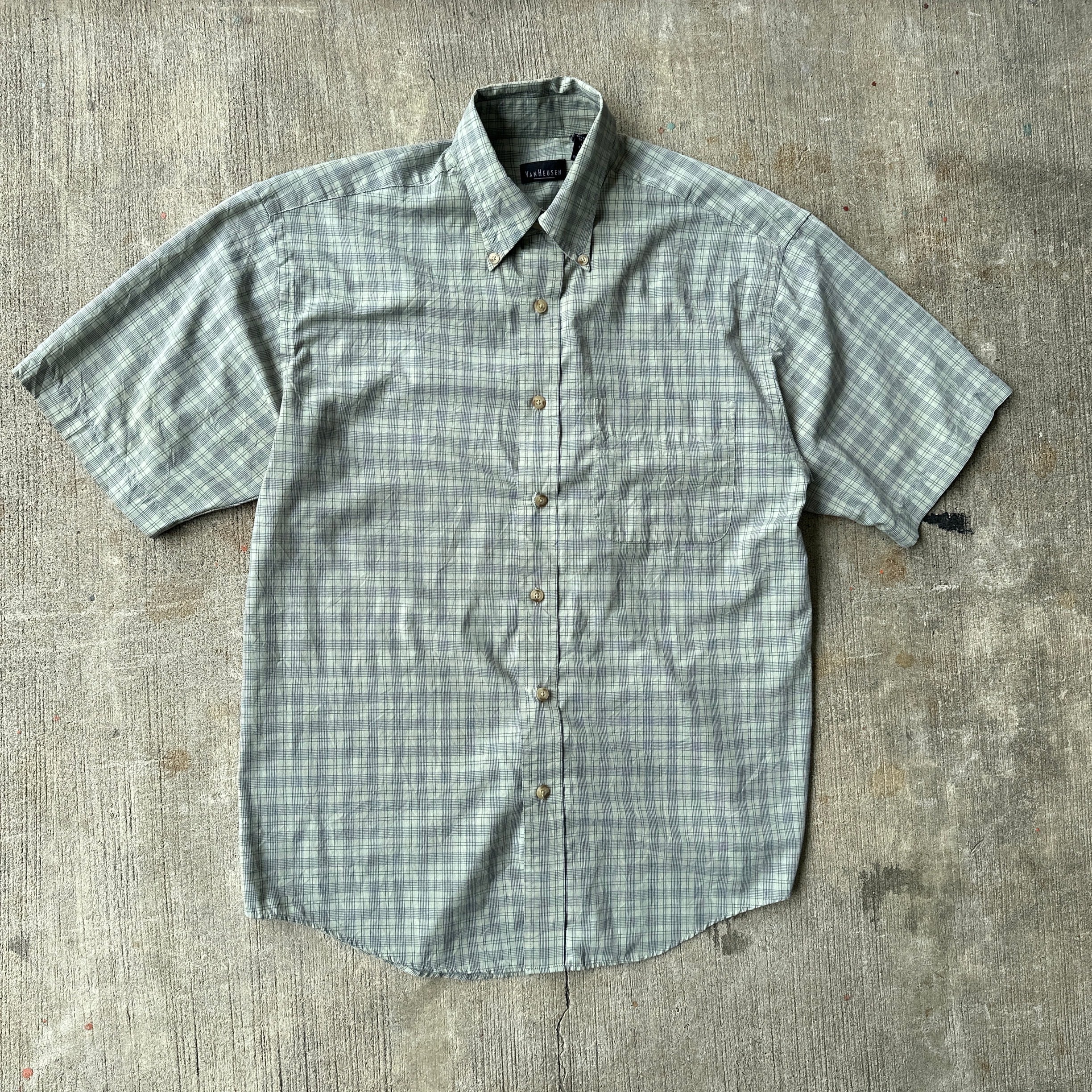 VANHEUSEN の半袖チェックシャツ。