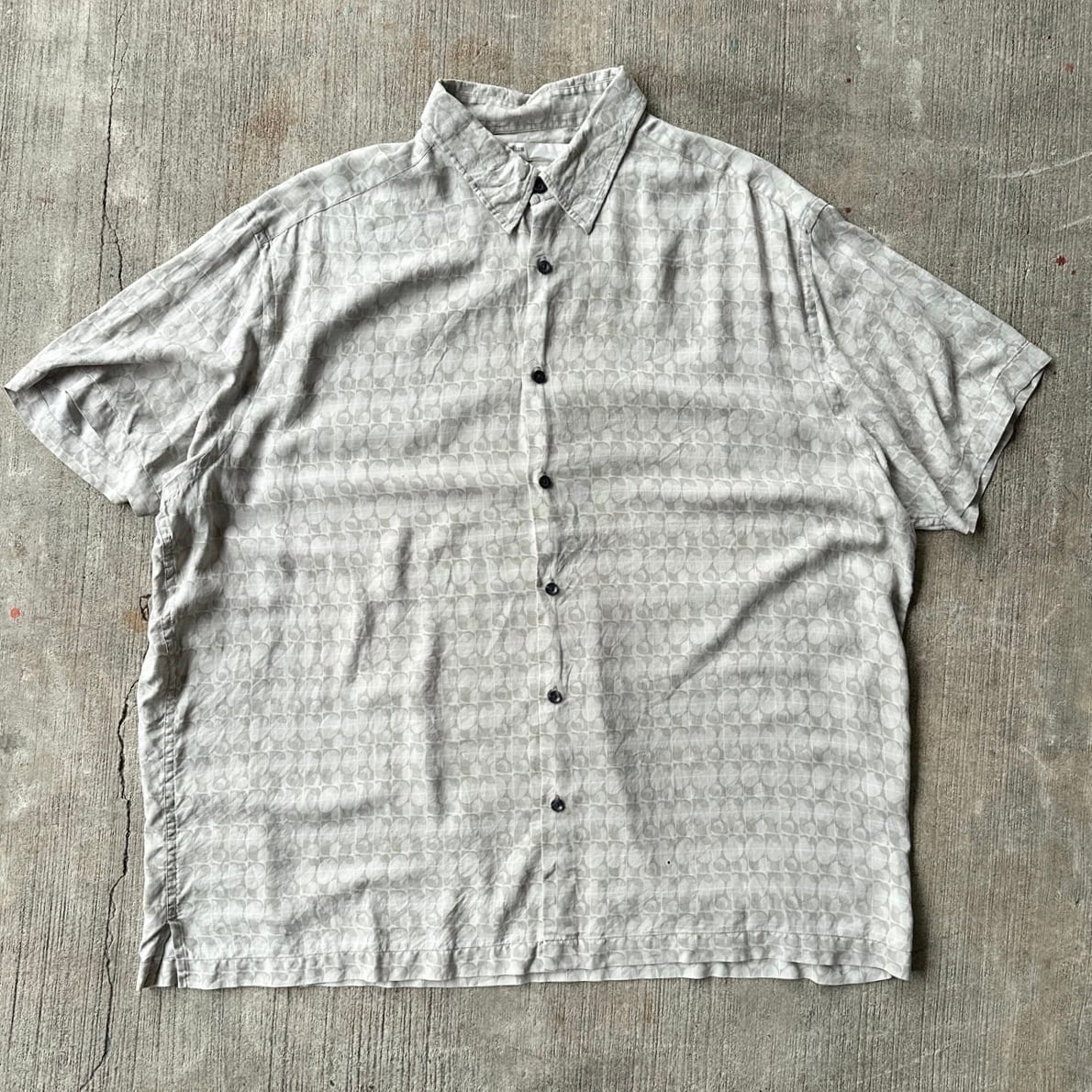 PERRY ELLIS Patterned Silk Shirt ペリーエリス シルクシャツ 半袖 総柄 【TH1076】【3000円均一商品】