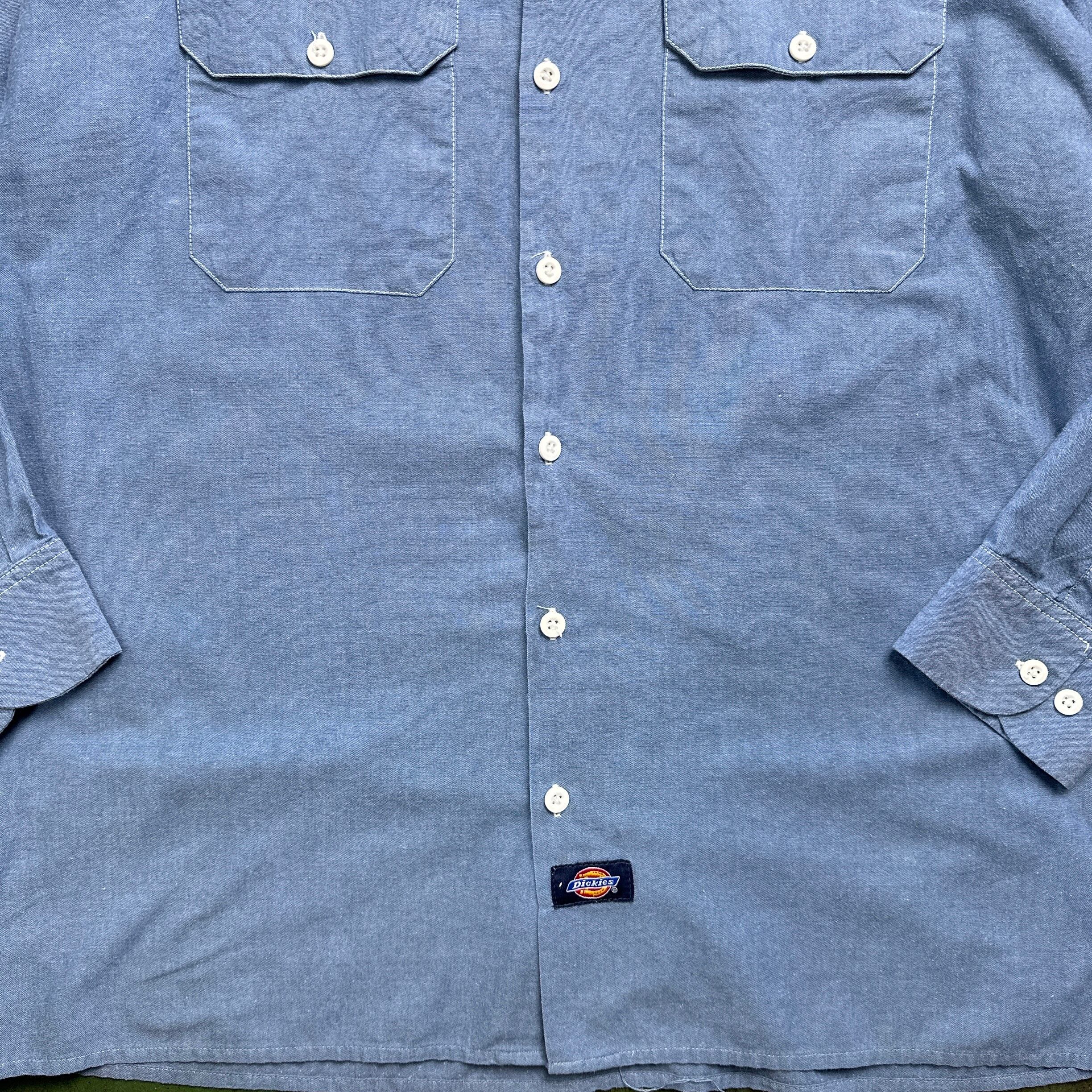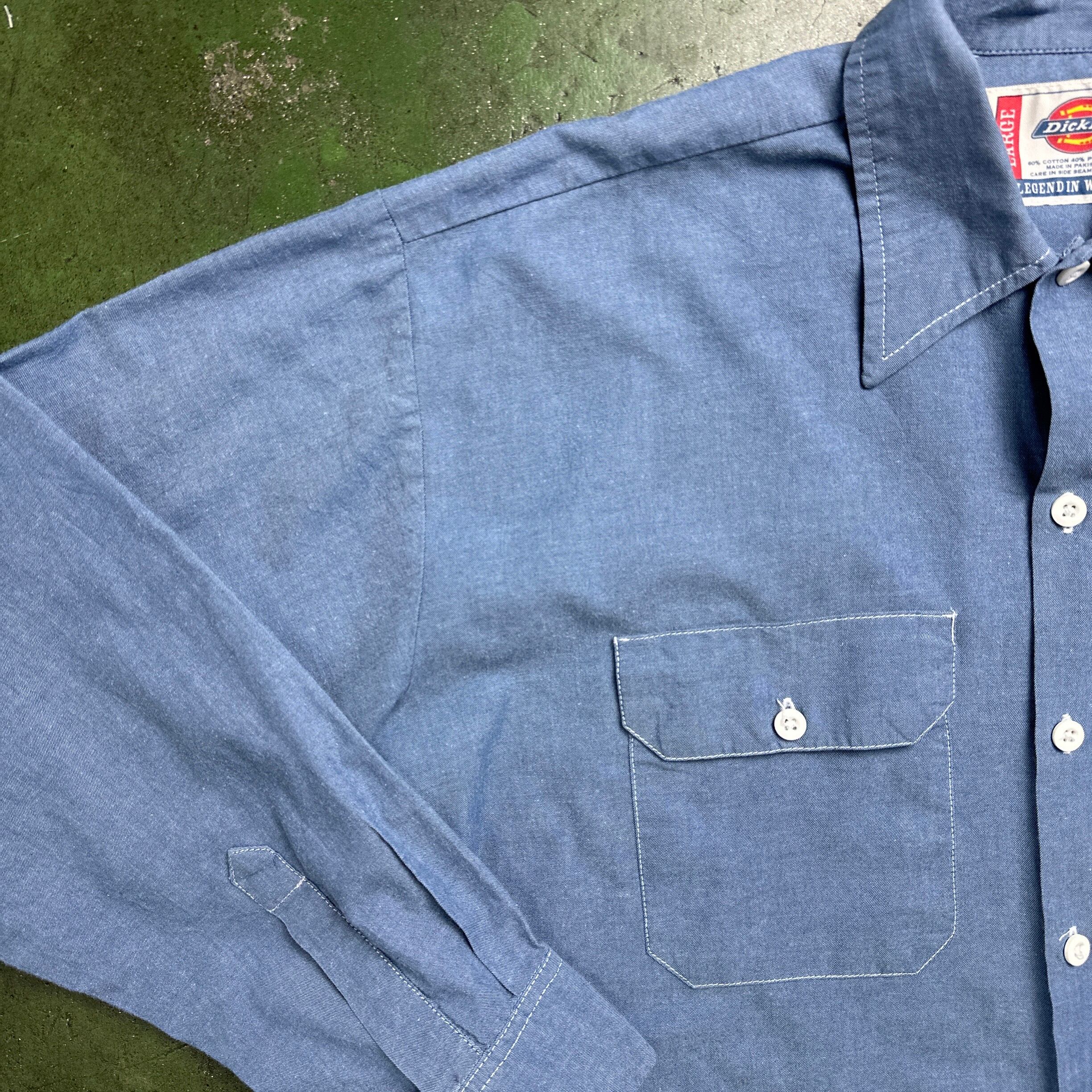 "Dickies" Blue Chambray Shirt ディッキーズ ブルー シャンブレー シャツ Lサイズ【TH1096】【3000円均一商品】