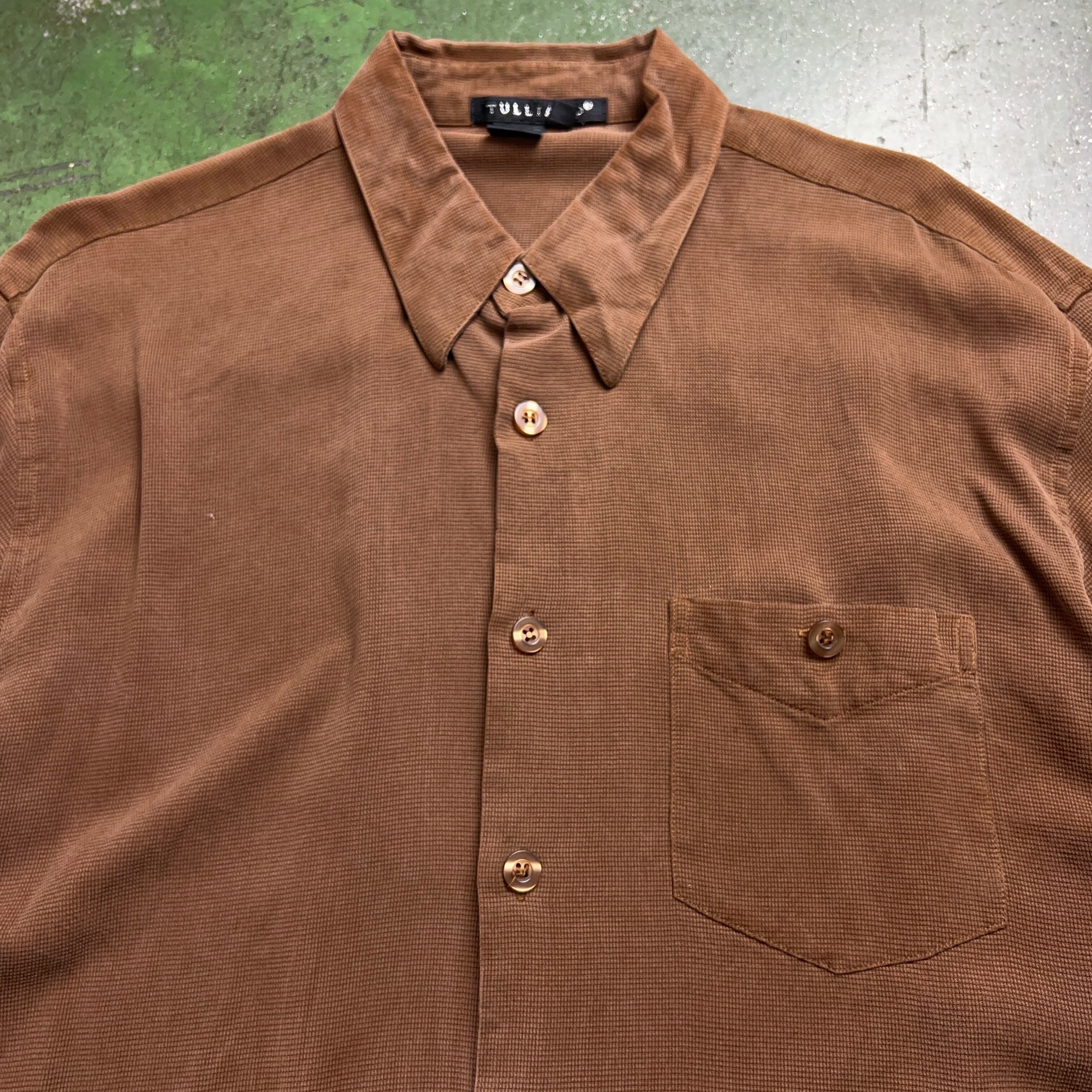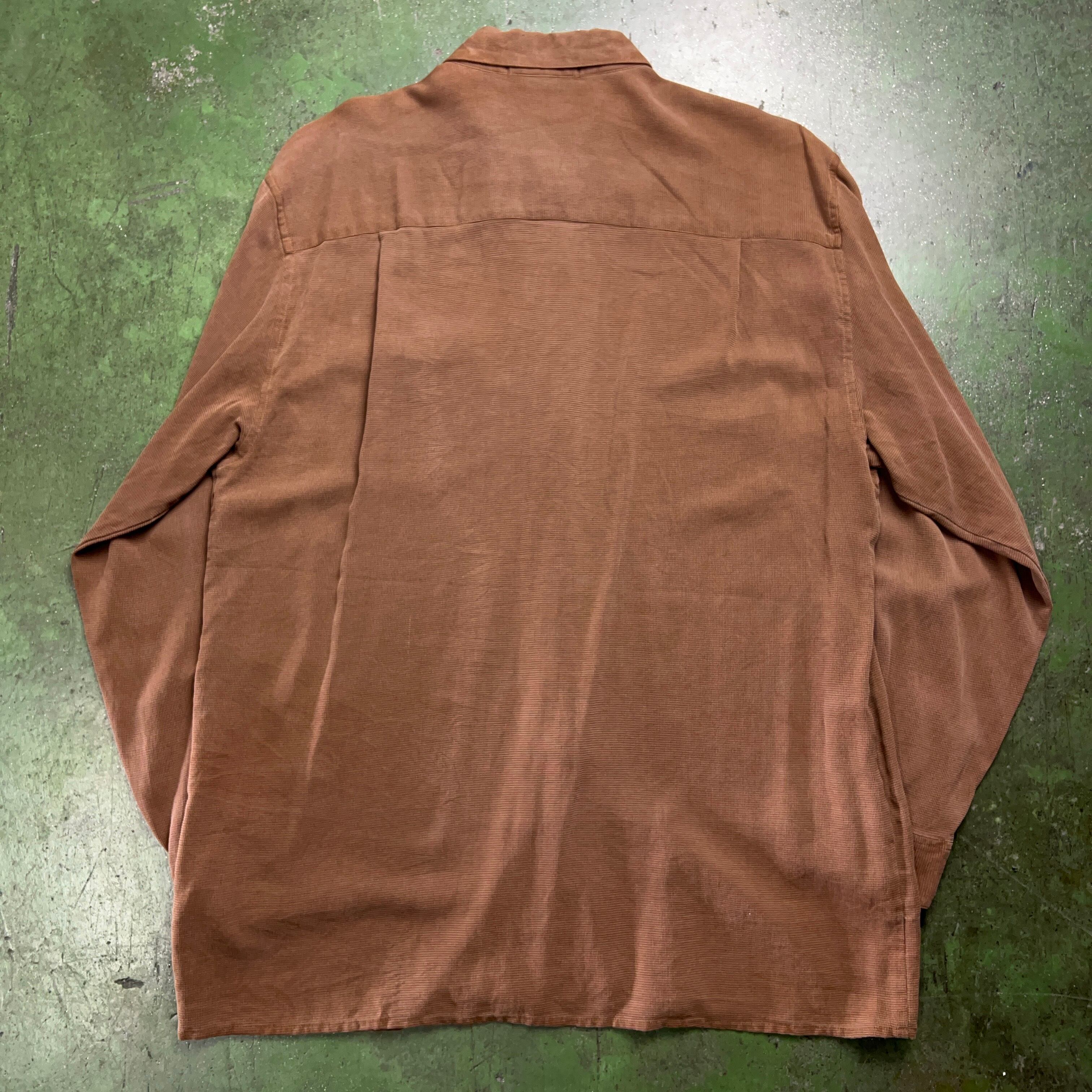 Silk L/S Shirt Brown シルク 長袖シャツ ブラウン てろてろ【TH1205】【3000円均一商品】