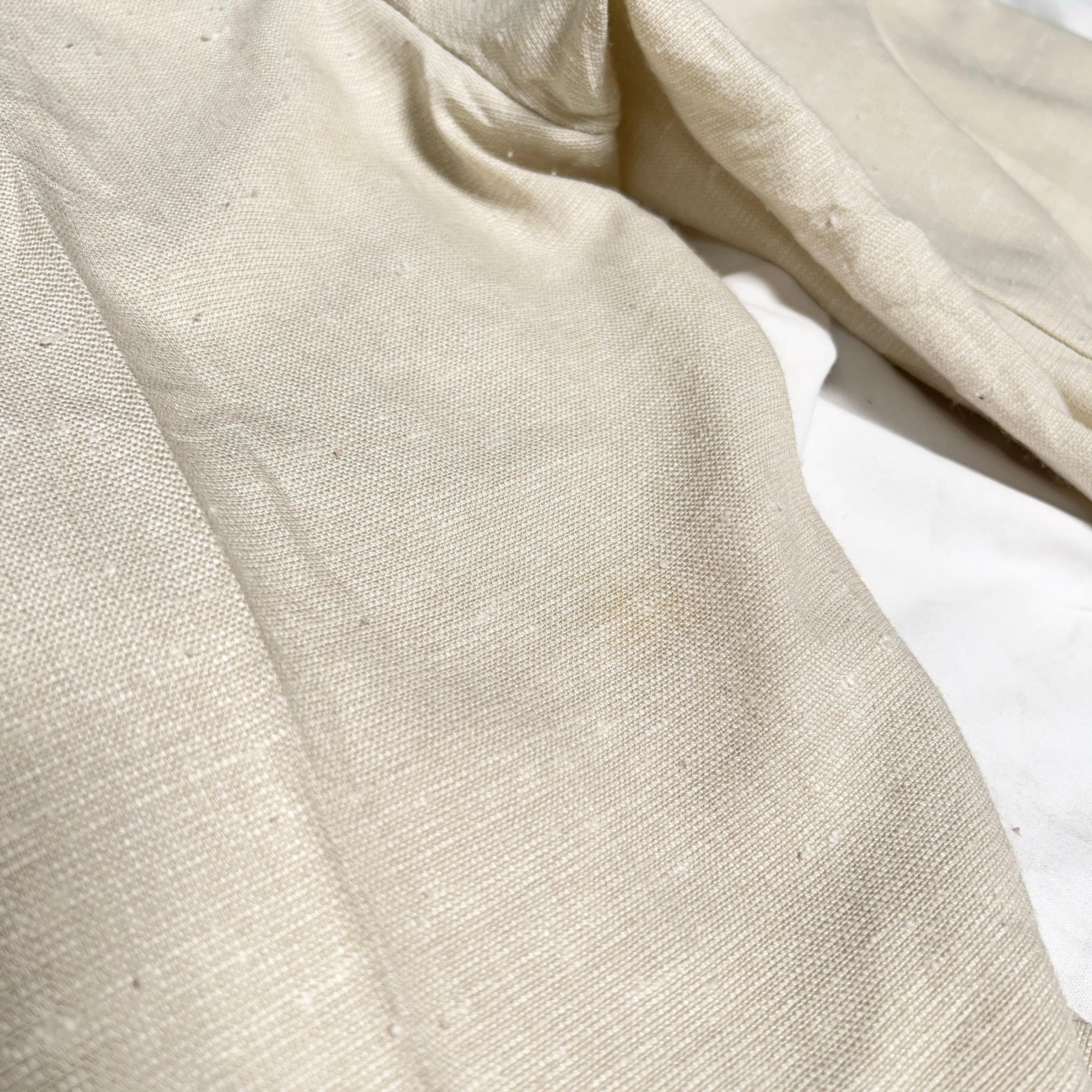 リネンスラックスのようなオフホワイトカラーでネップ感のある生地で清涼感があります。