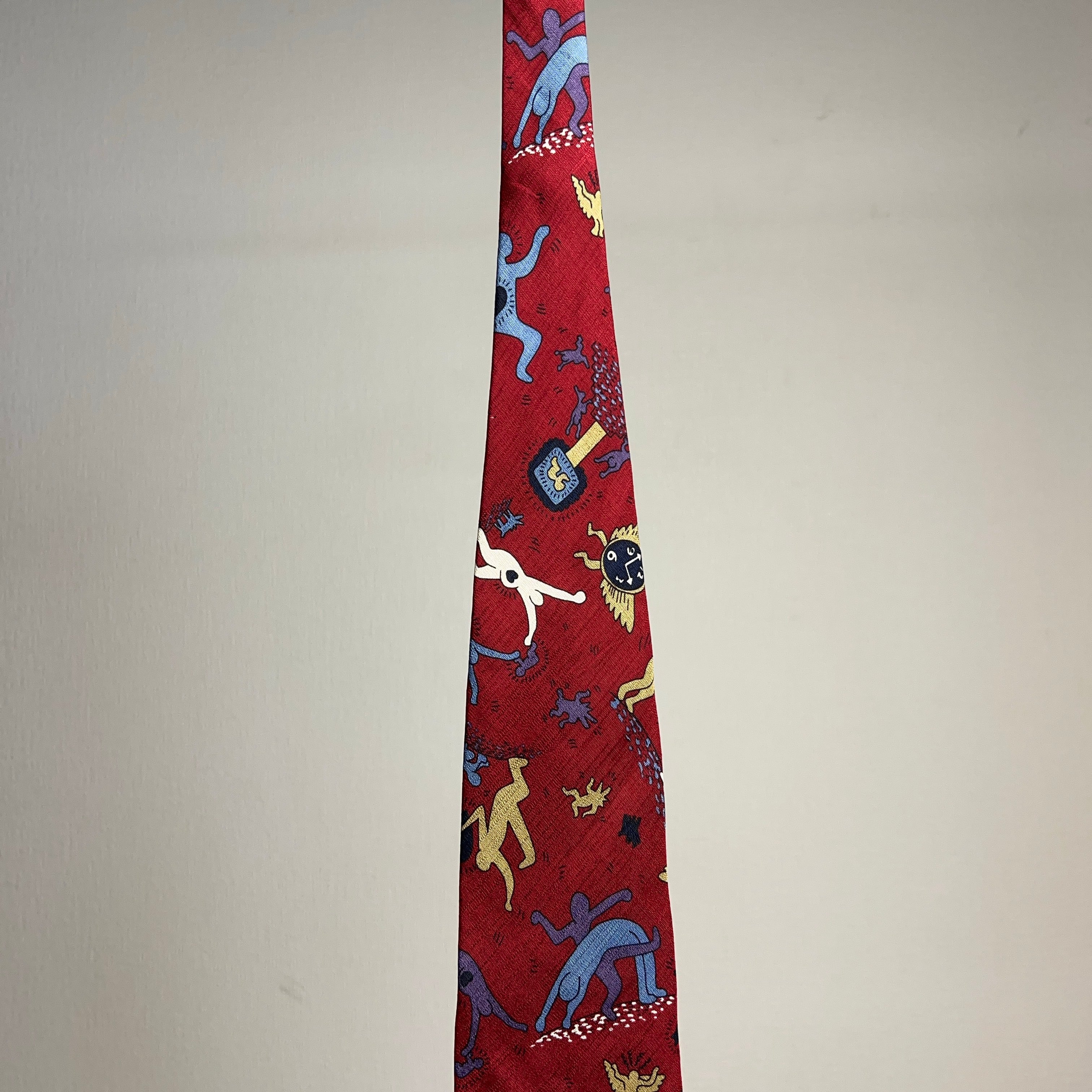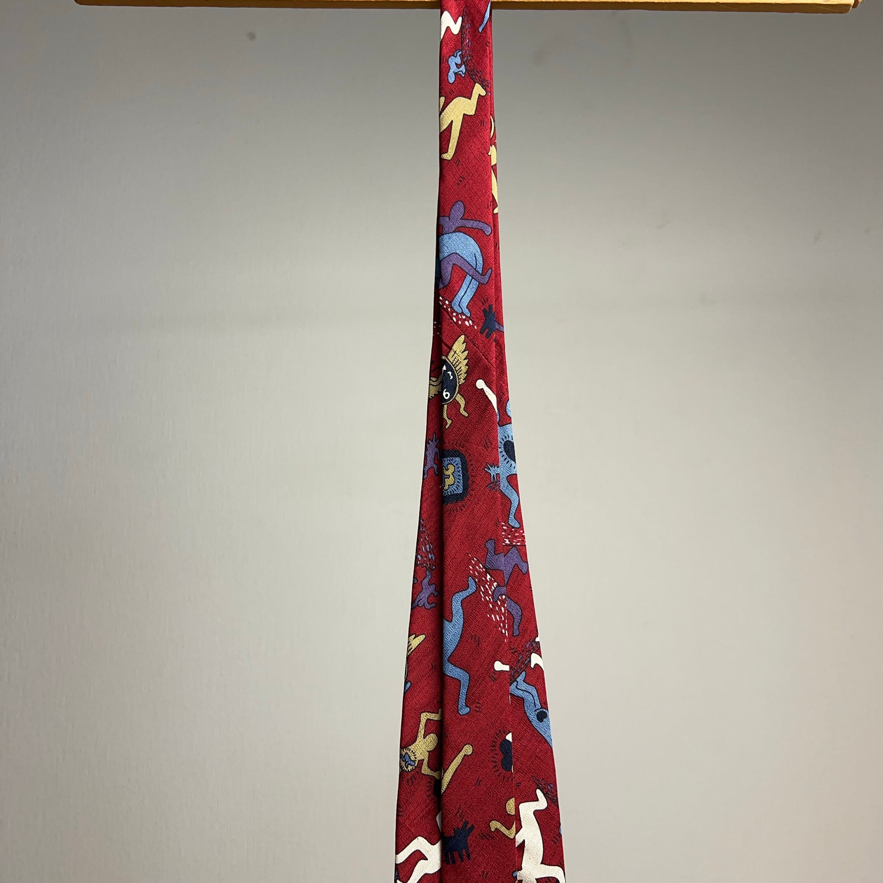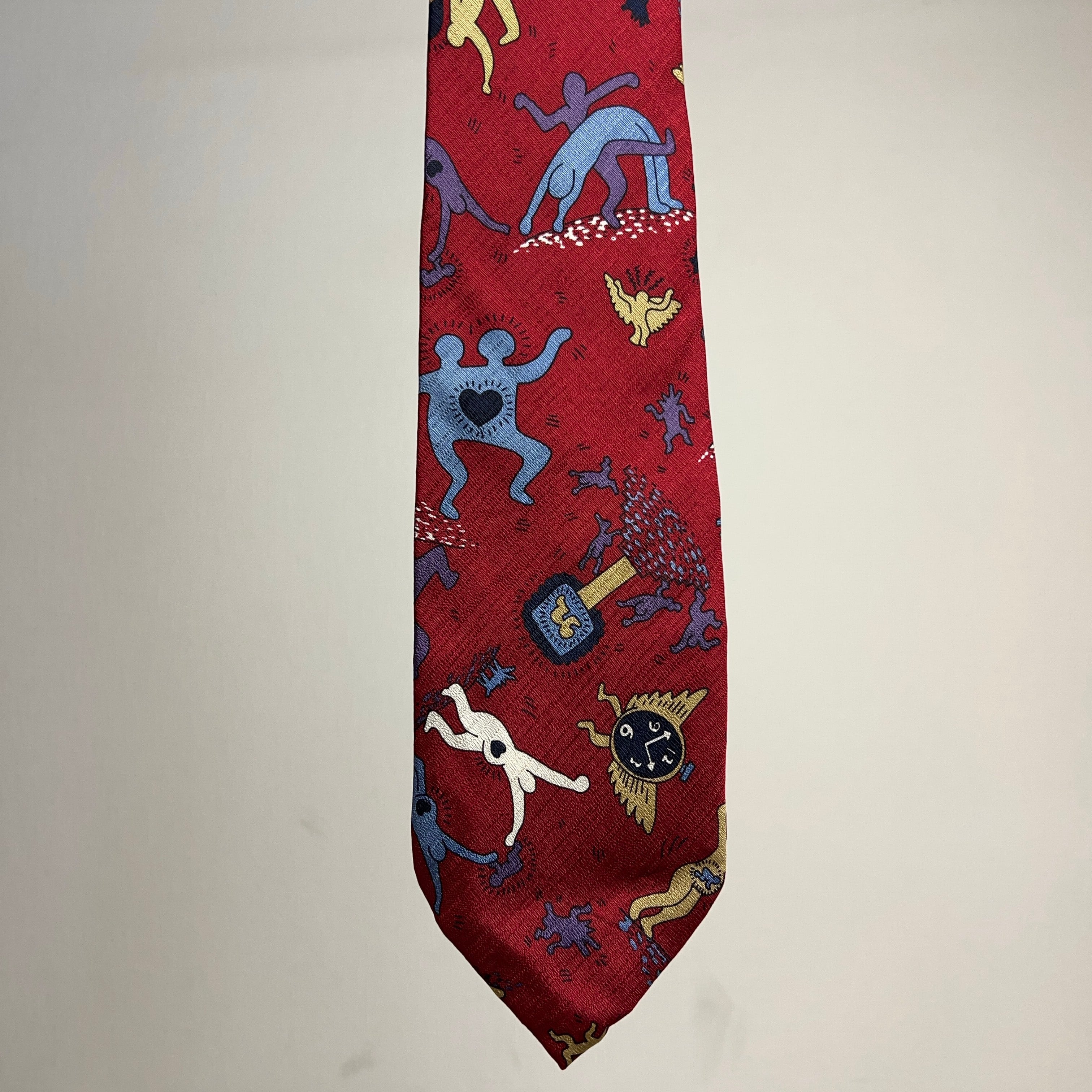 ストリートアートの先駆者とも呼ばれるキース・ヘリングの代表的なアートがプリントされたシルクネクタイ。