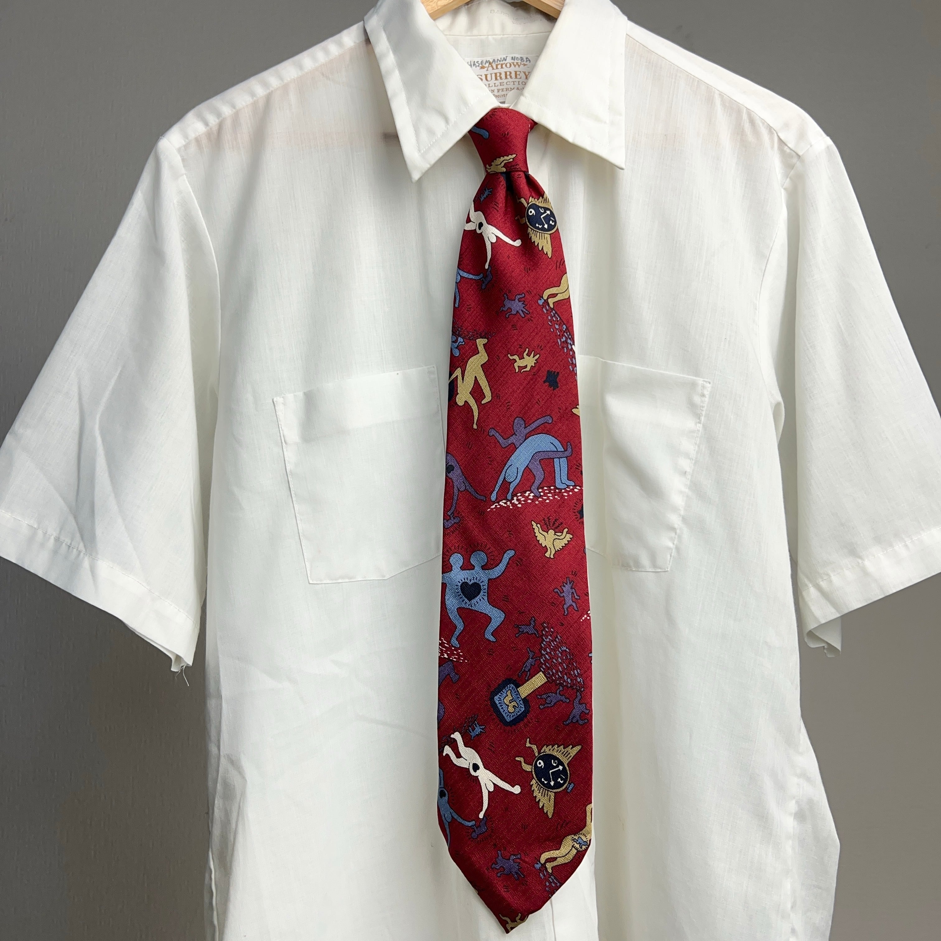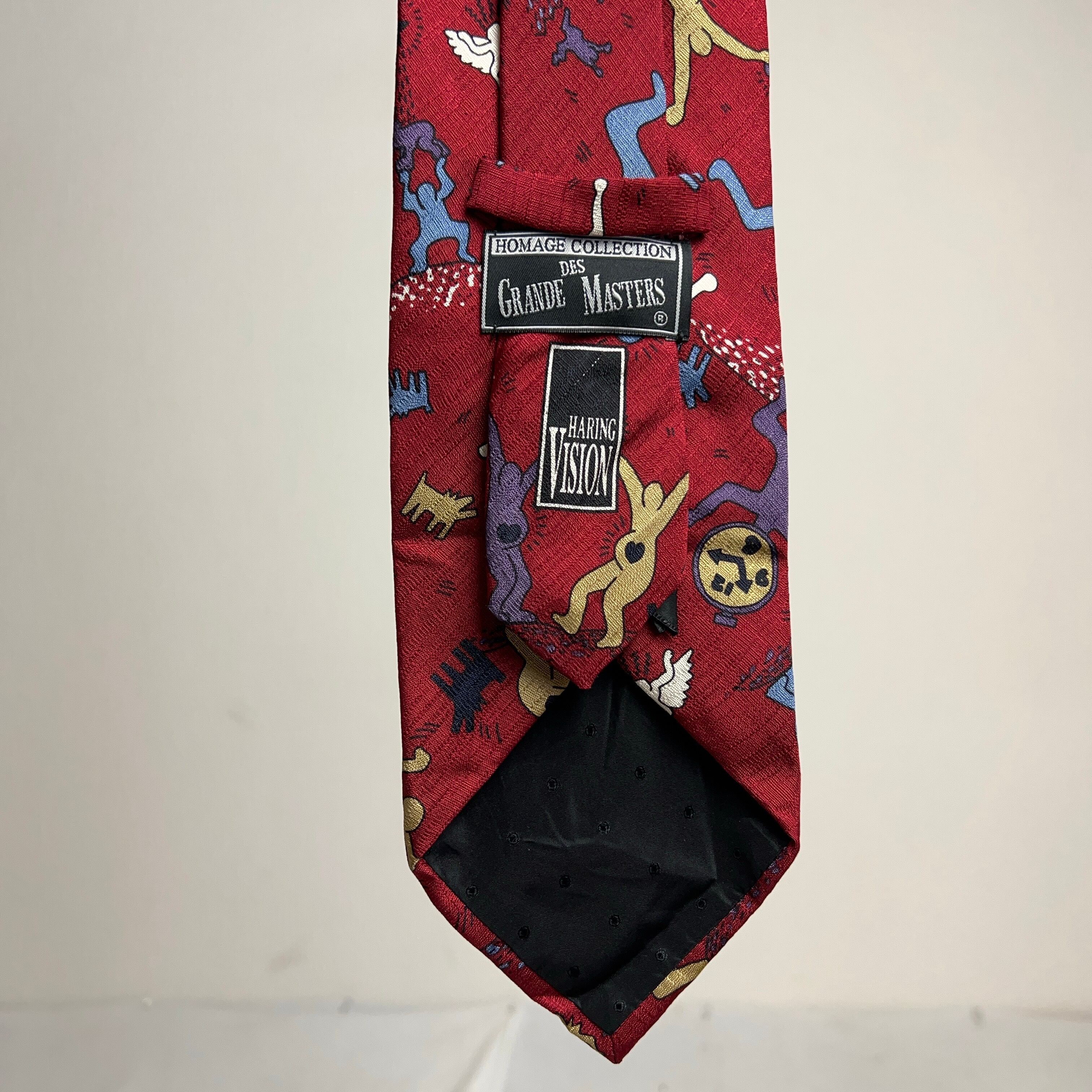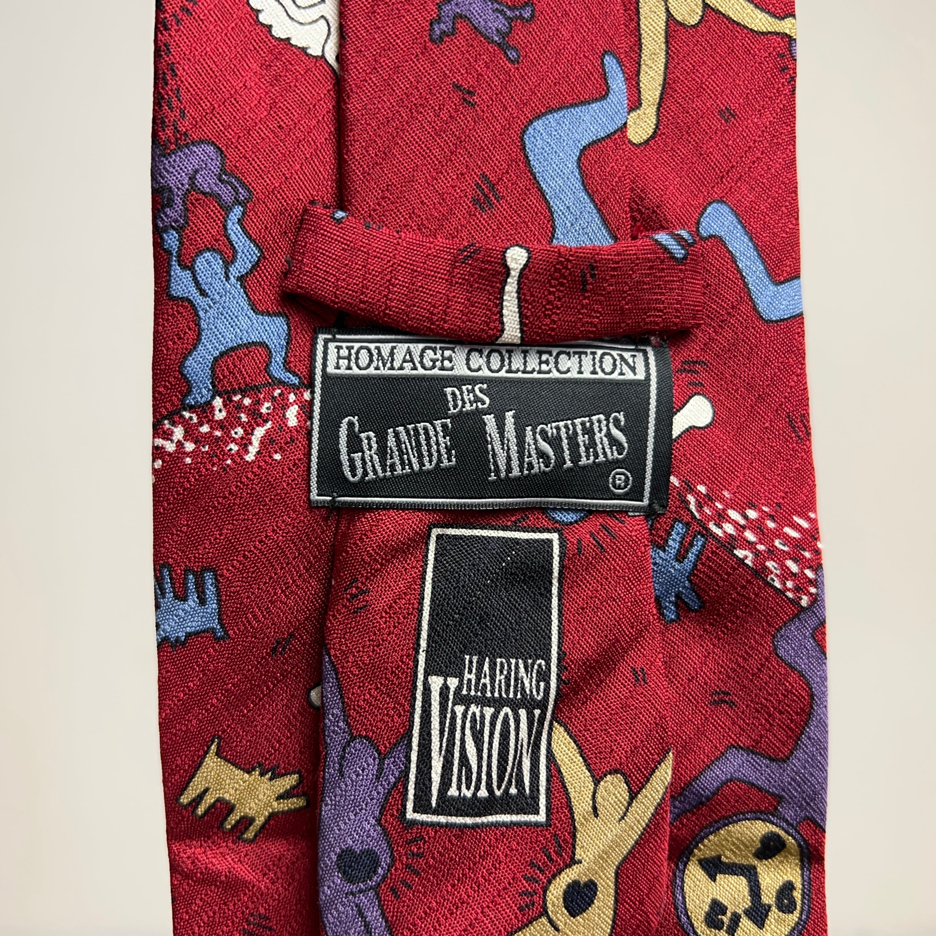 ストリートアートの先駆者とも呼ばれるキース・ヘリングの代表的なアートがプリントされたシルクネクタイ。