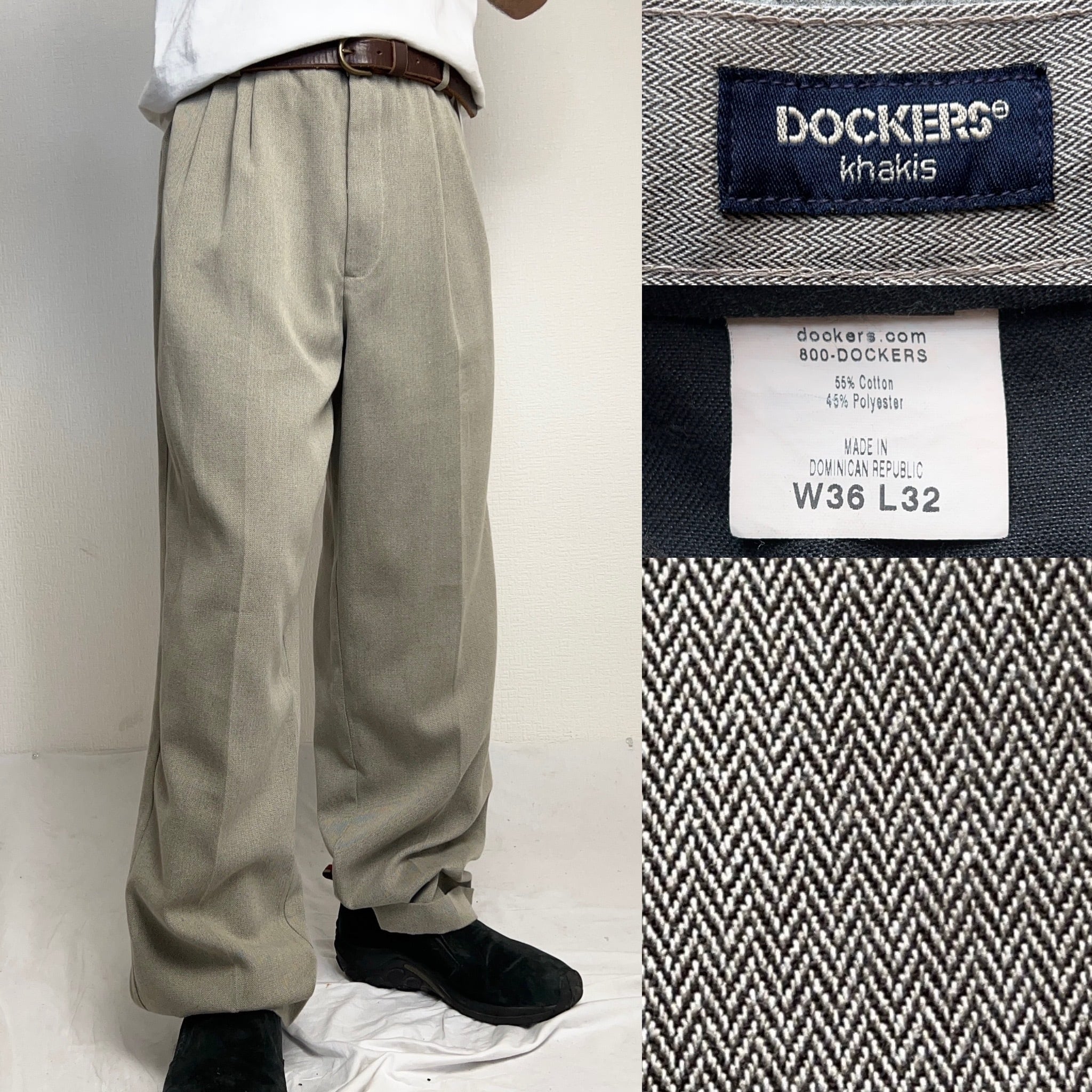 00's Levi's DOCKERS HBT 2tuck Wide Pants 00年代 リーバイス ドッカーズ グレー ヘリンボーンツイル チノパン 2タック ワイド W36 L32【1000A3434】