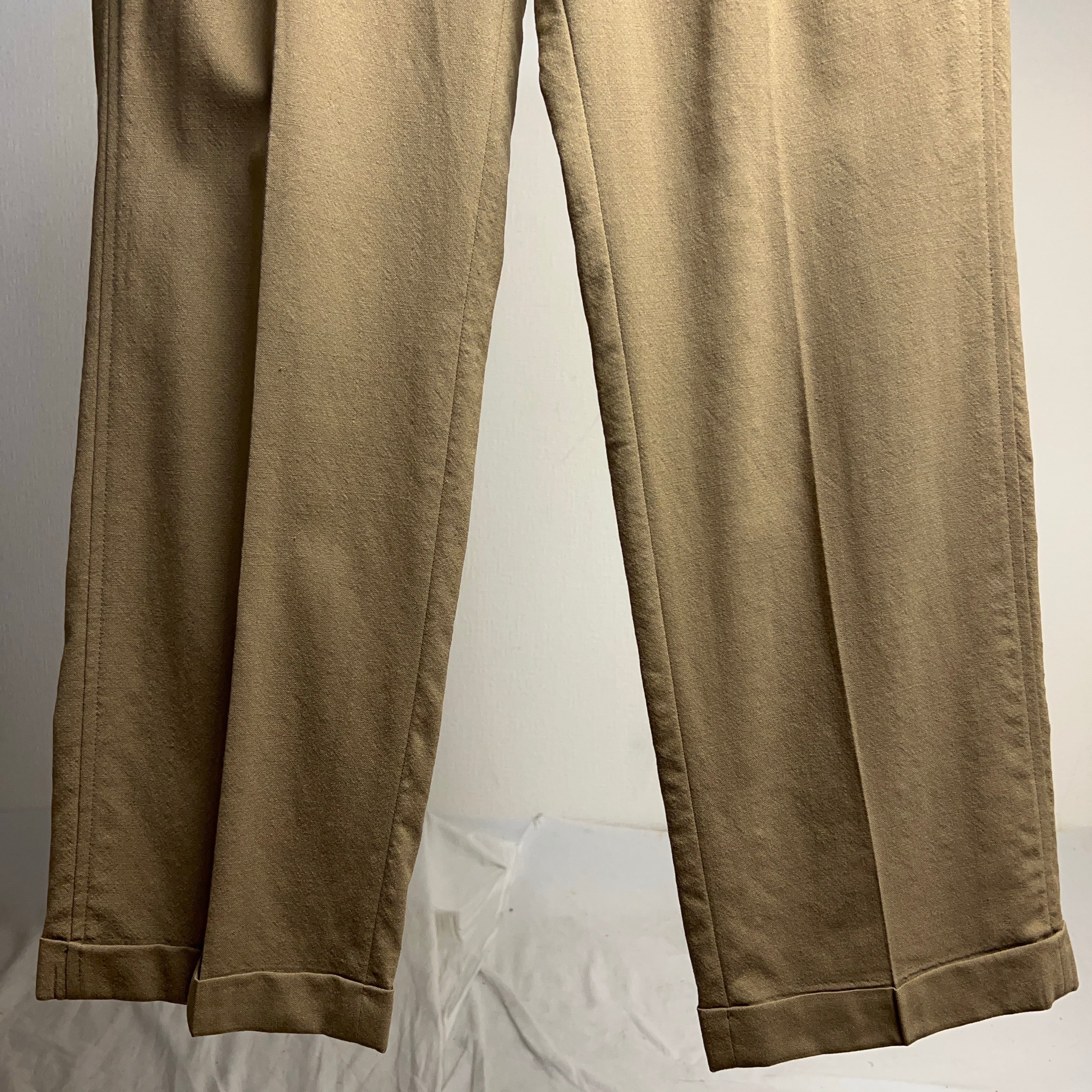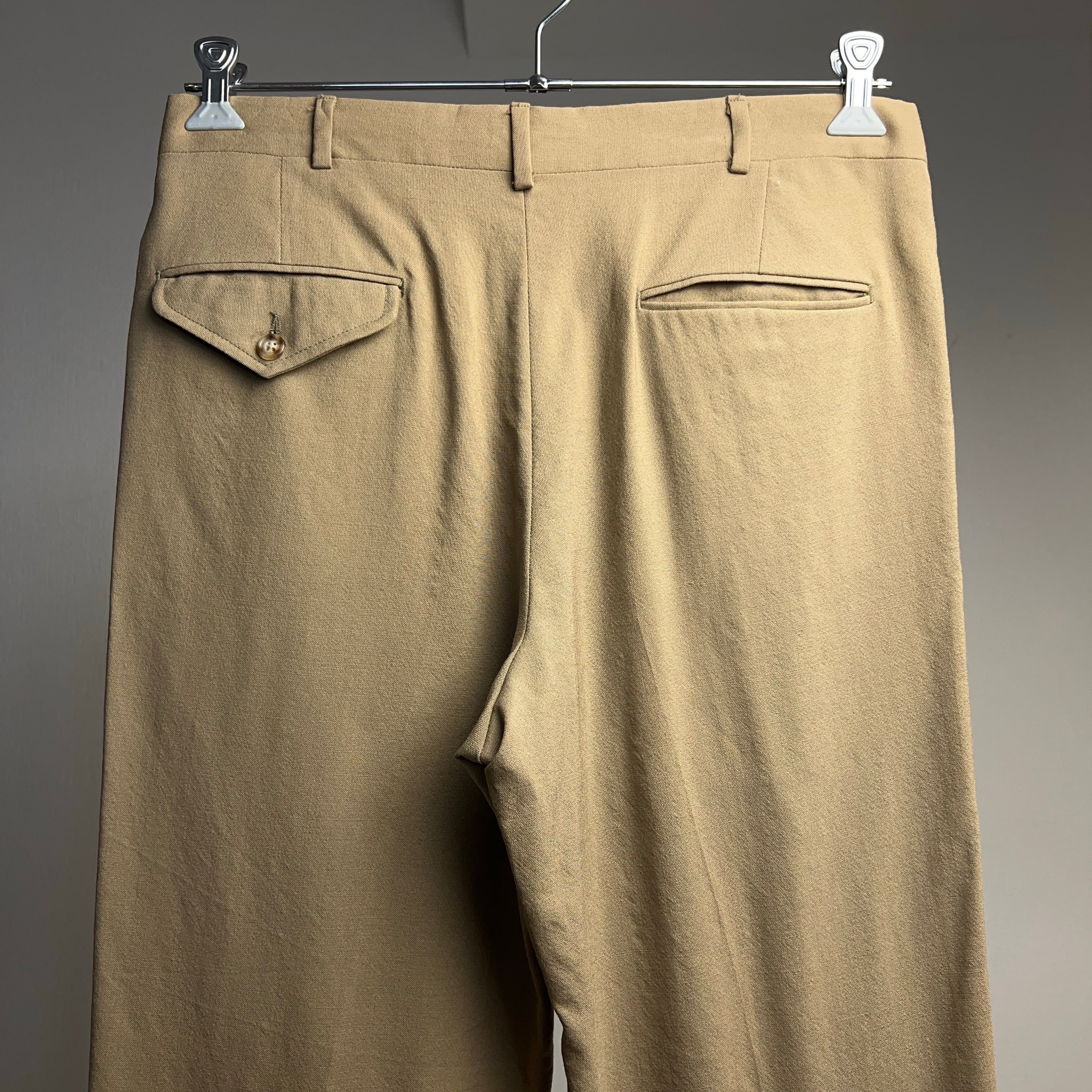こちらはMADE IN U.S.A.のサスペンダーボタン付きウールスラックスとなります。ウールといっても生地は薄めです。