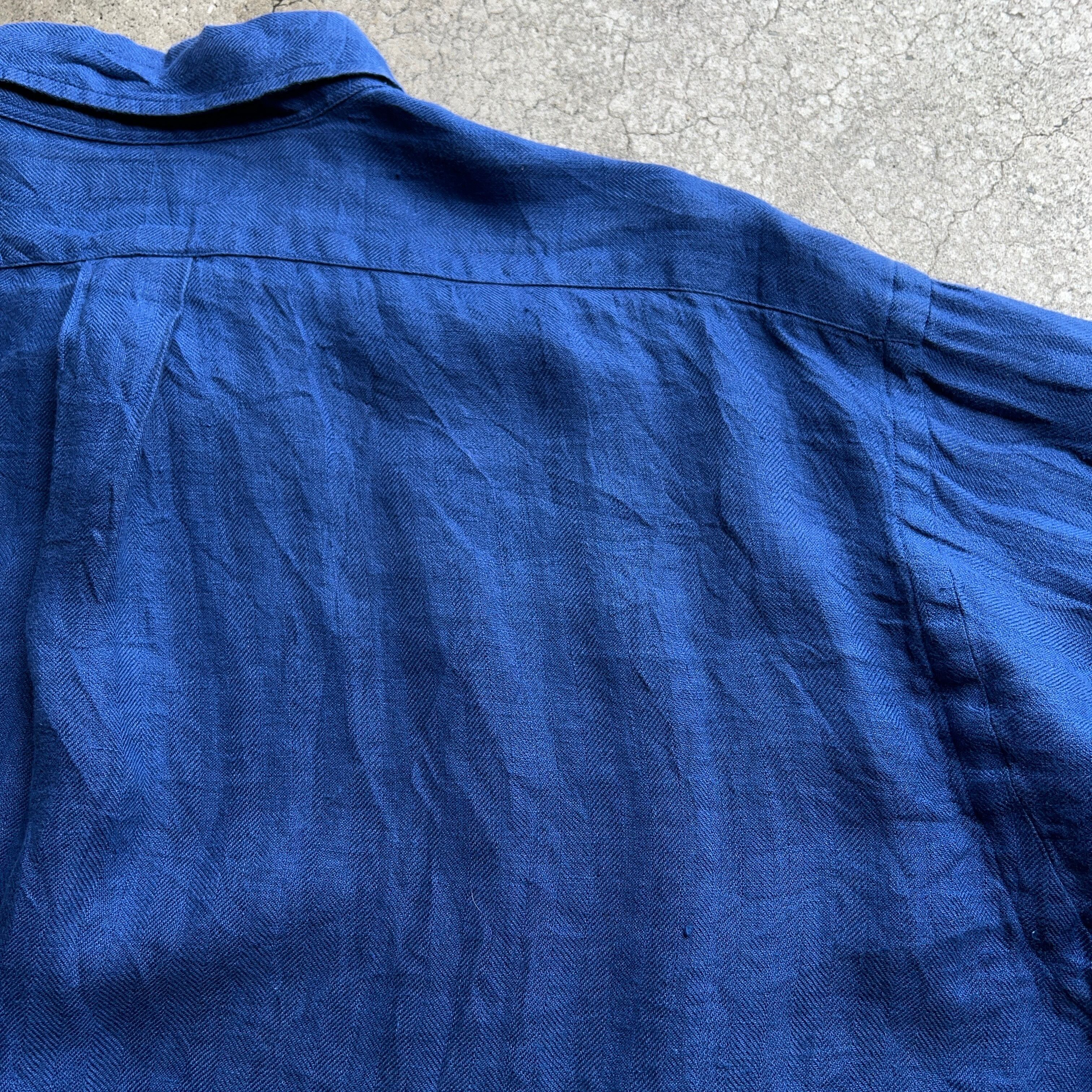 90's Ralph Lauren "BLAKE" Linen HBT L/S Shirt 90年代 ラルフローレン リネン ヘリンボーンツイル 長袖シャツ ブレイク 青 ブルー XL【1000A3467】