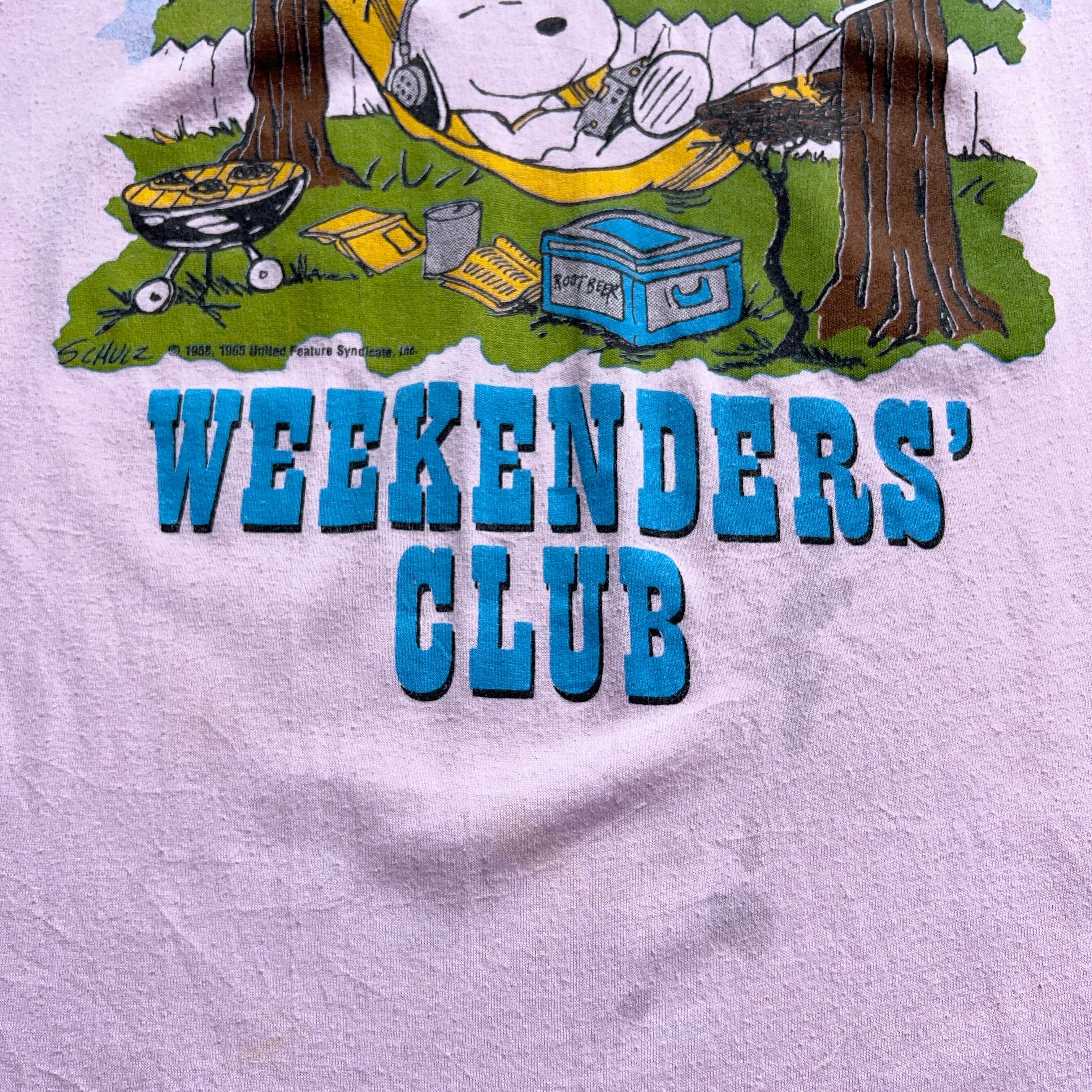 80's~ Snoopy "WEEKENDERS CLUB" Tshirt 80年代 90年代 スヌーピー ピーナッツ Tシャツ シングルステッチ ピンク 【1000A3470】
