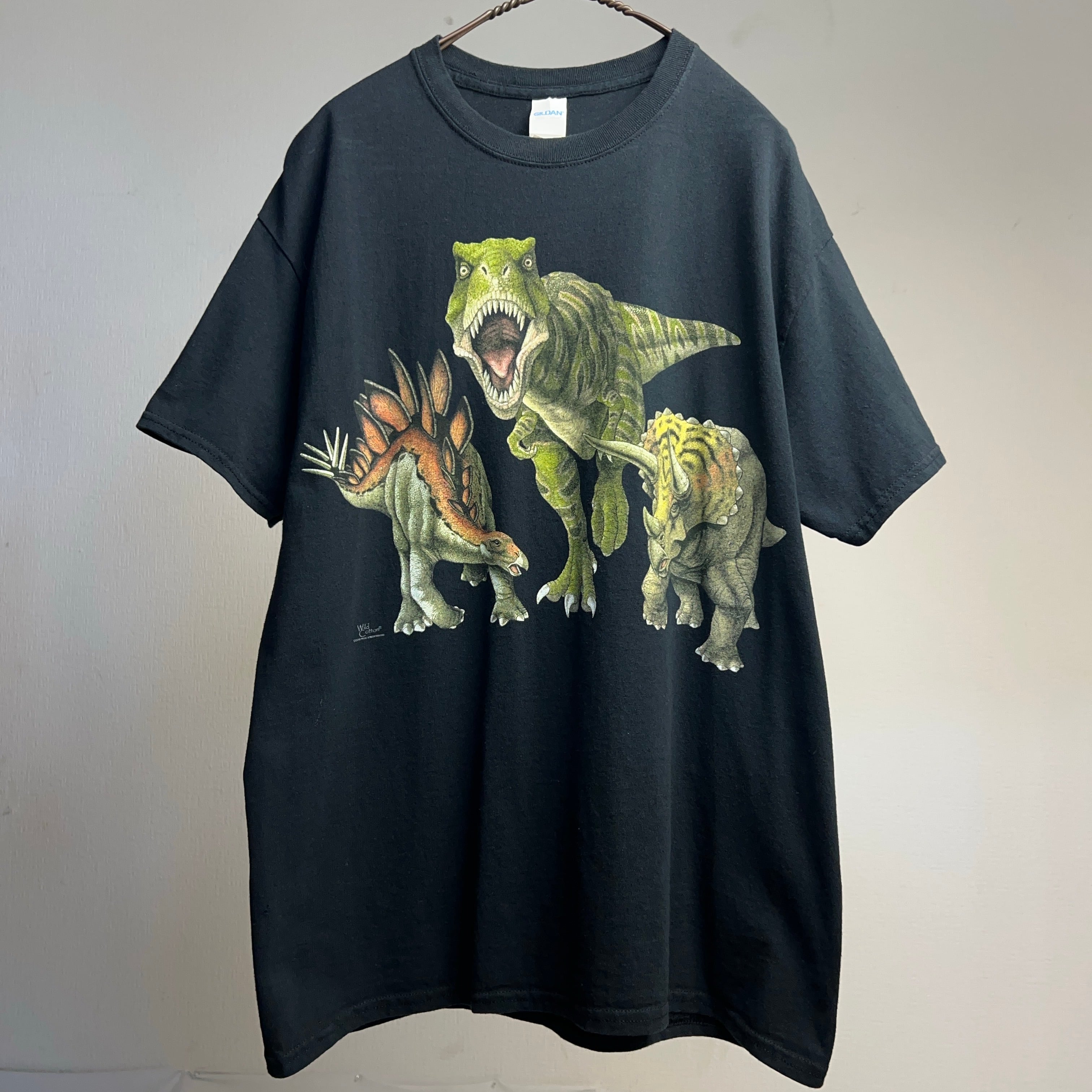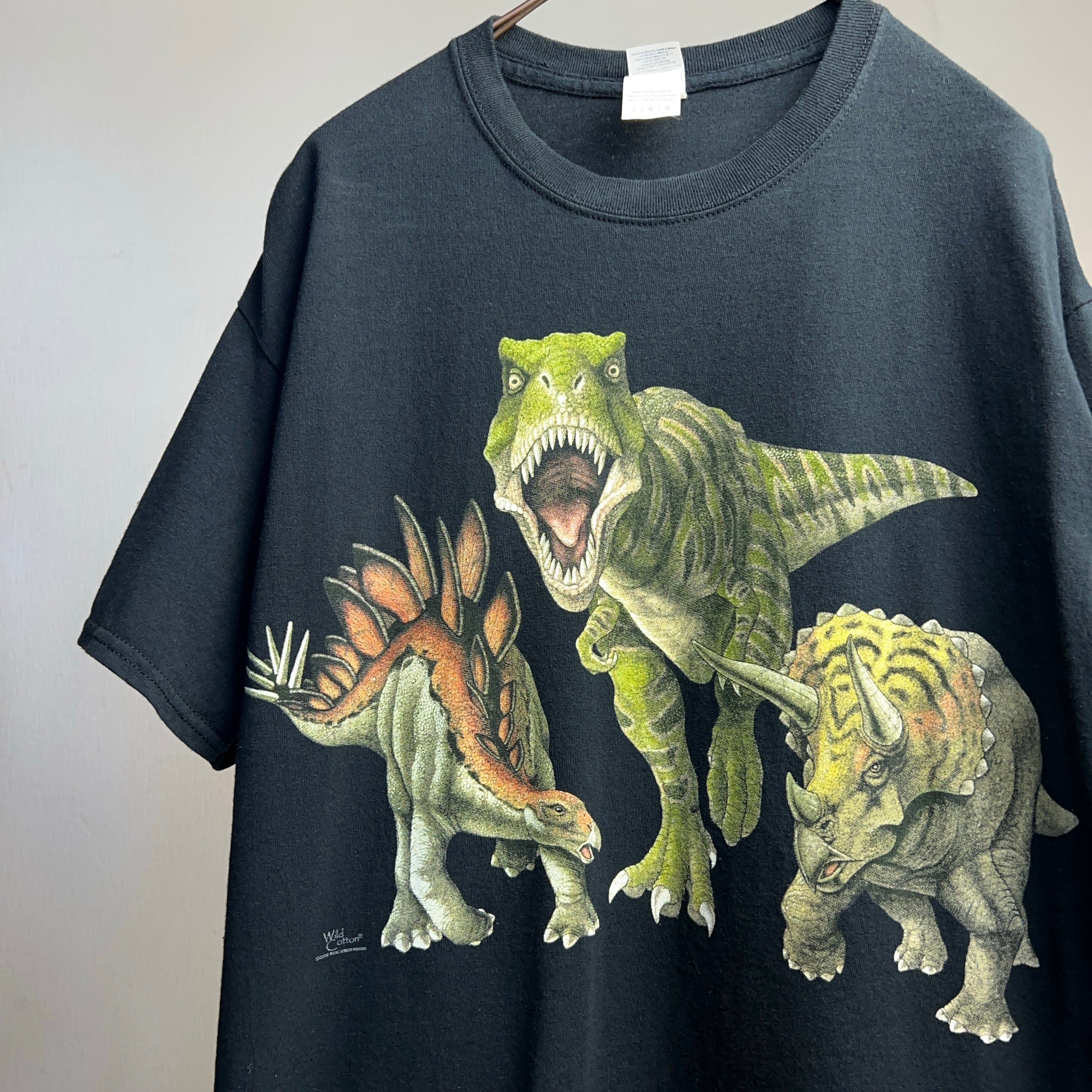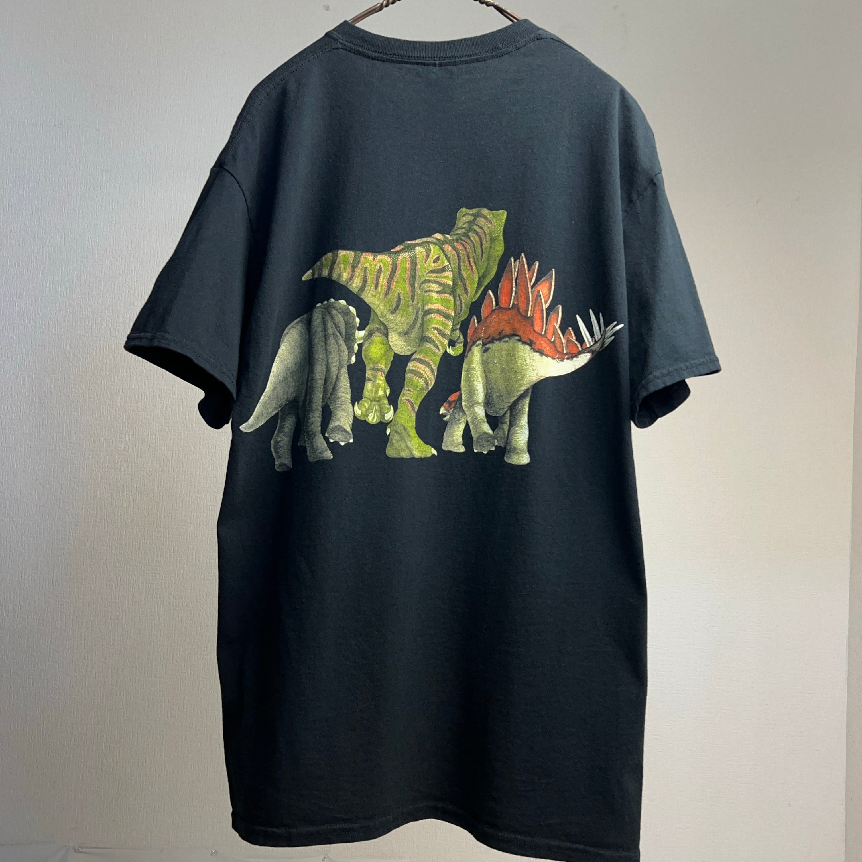 "DINASOUR" Art Tshirt Wild Cotton 恐竜 アート Tシャツ 博物館 ステゴサウルス ティラノサウルス トリケラトプス SIZE L【1000A3505】