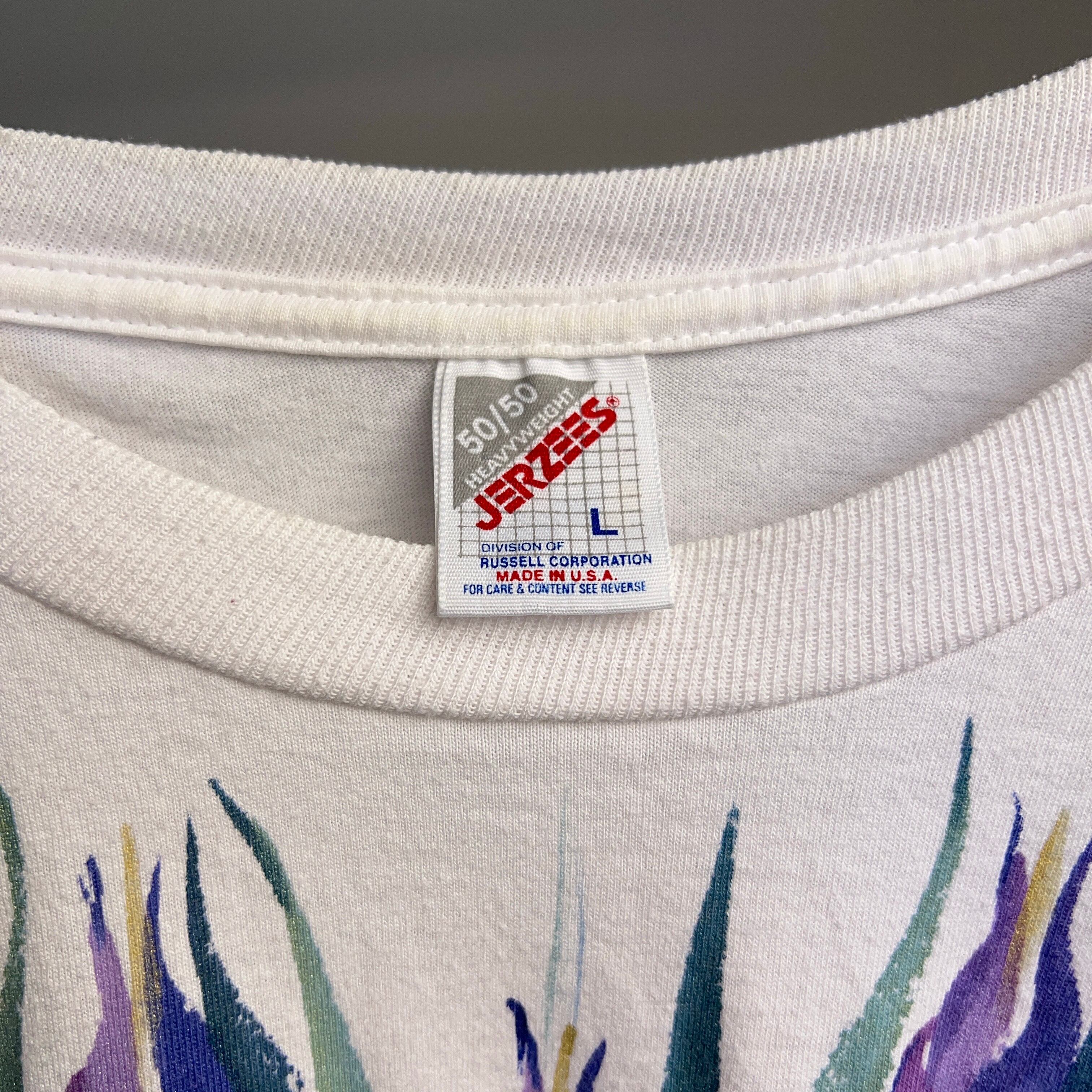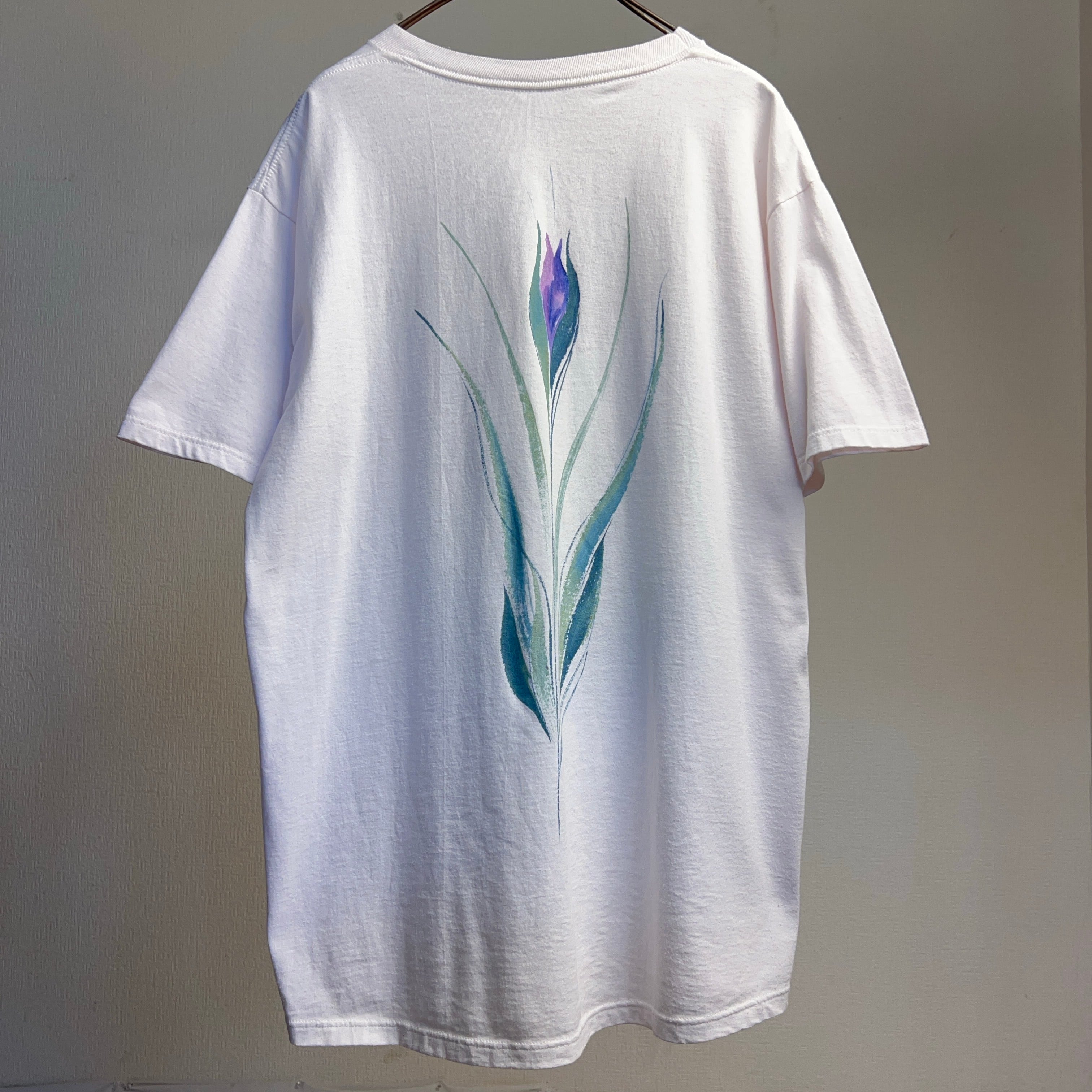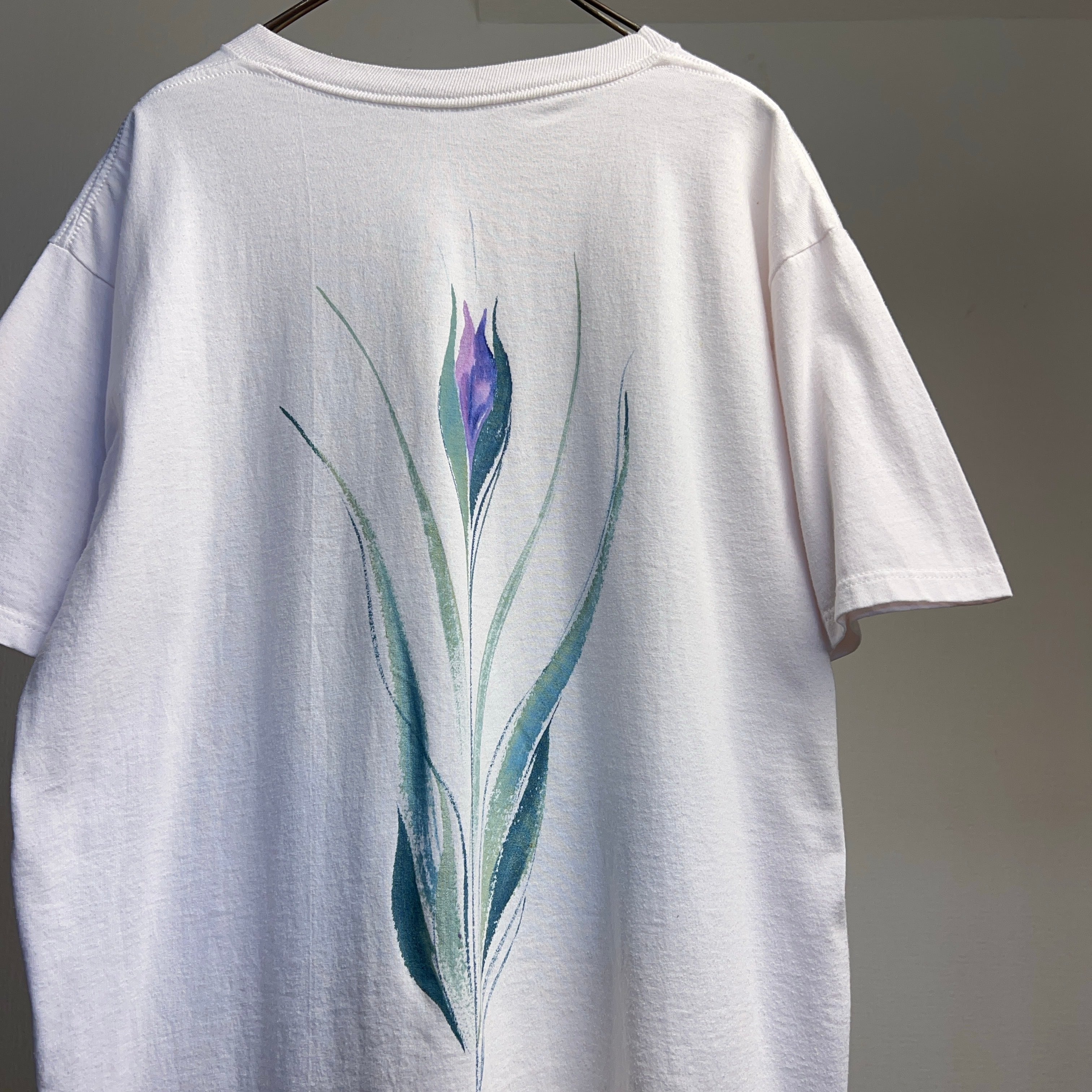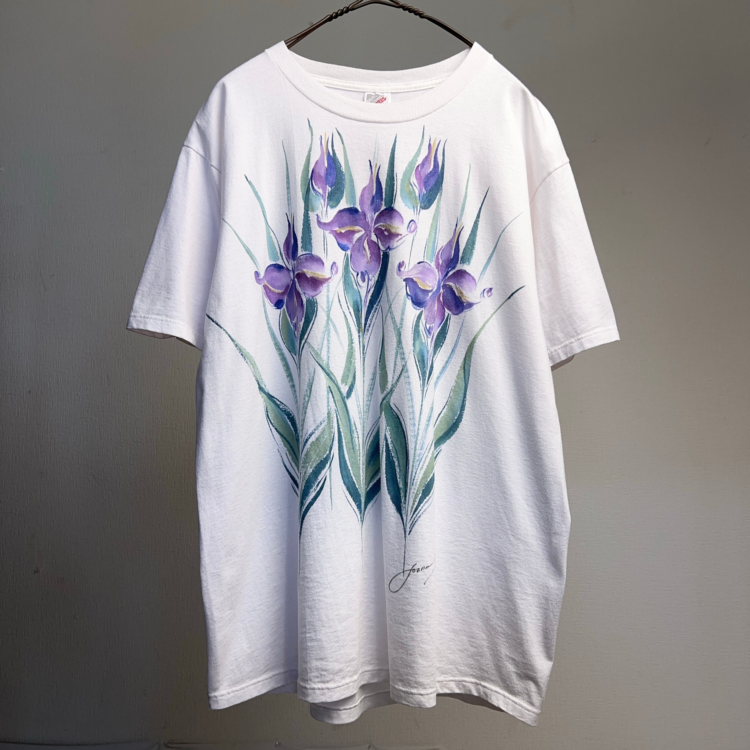 90's "IRIS" Flower Art Tshirt 90年代 花 アート Tシャツ 菖蒲 あやめ SIZE L MADE IN USA【1000A3506】【送料無料】