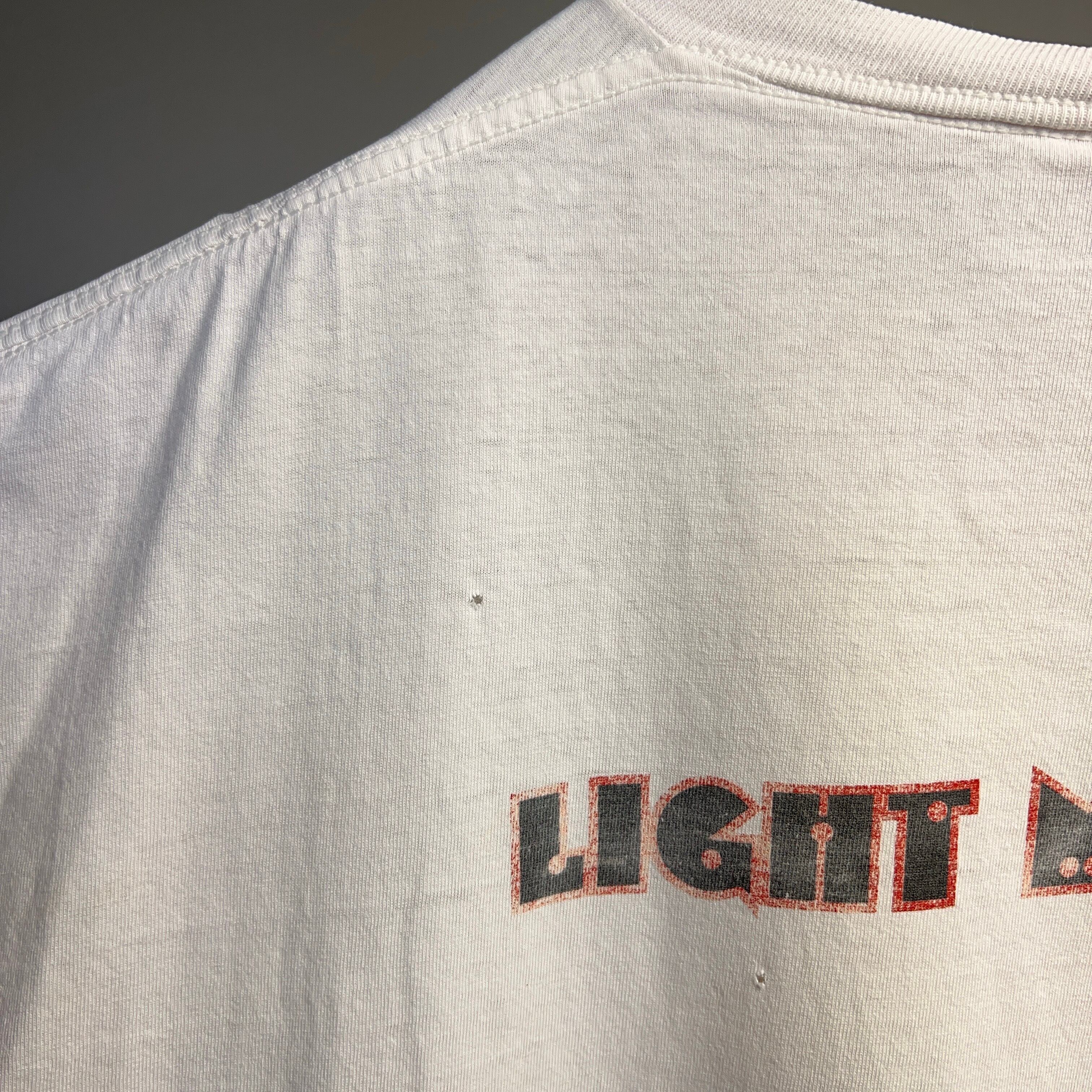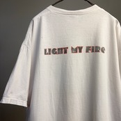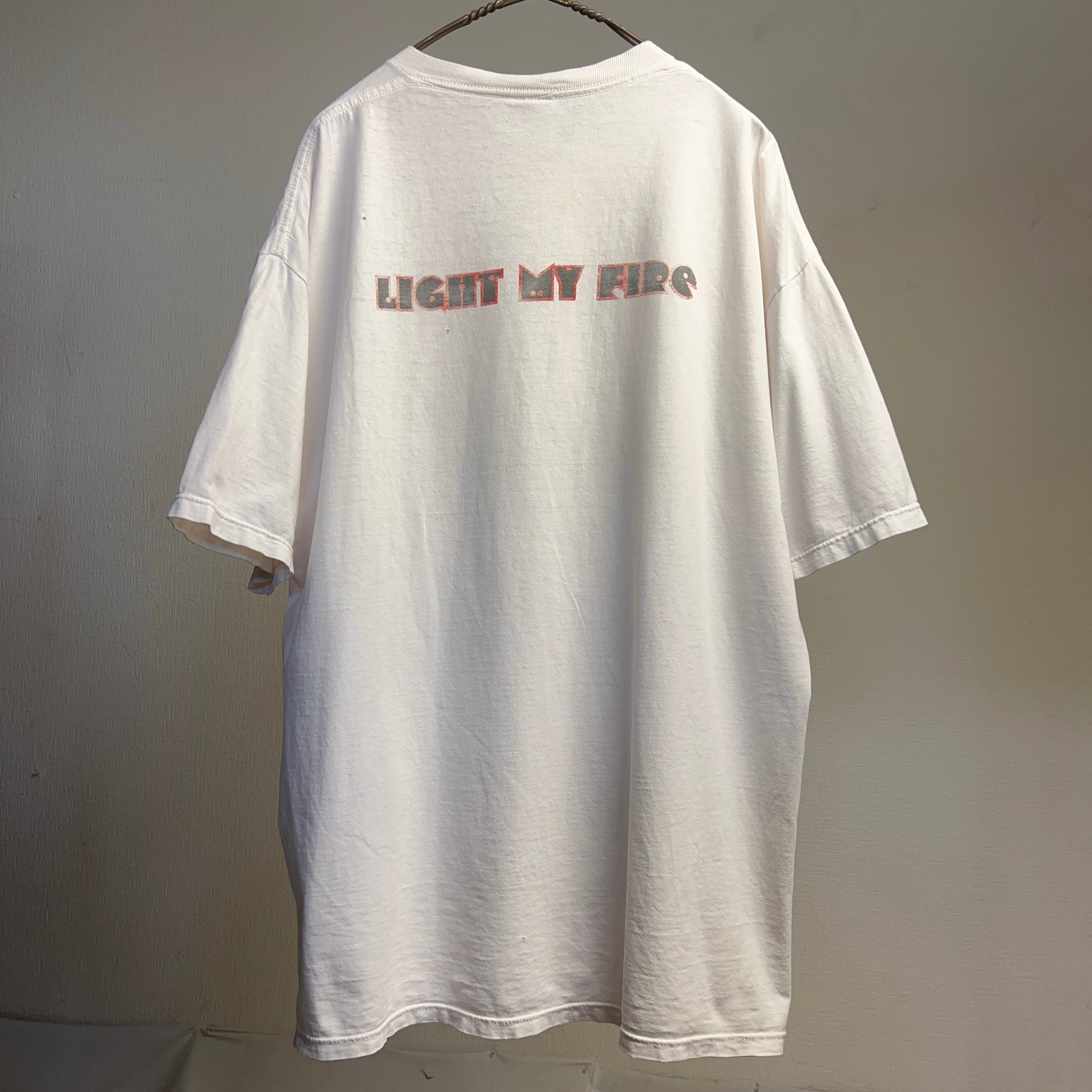 伝説のロックバンドTHE DOORSのボーカルJIM MORRISONとDOORSが1960年代にリリースした楽曲LIGHT MY FIREのプリントが入ったヴィンテージバンドTシャツ。