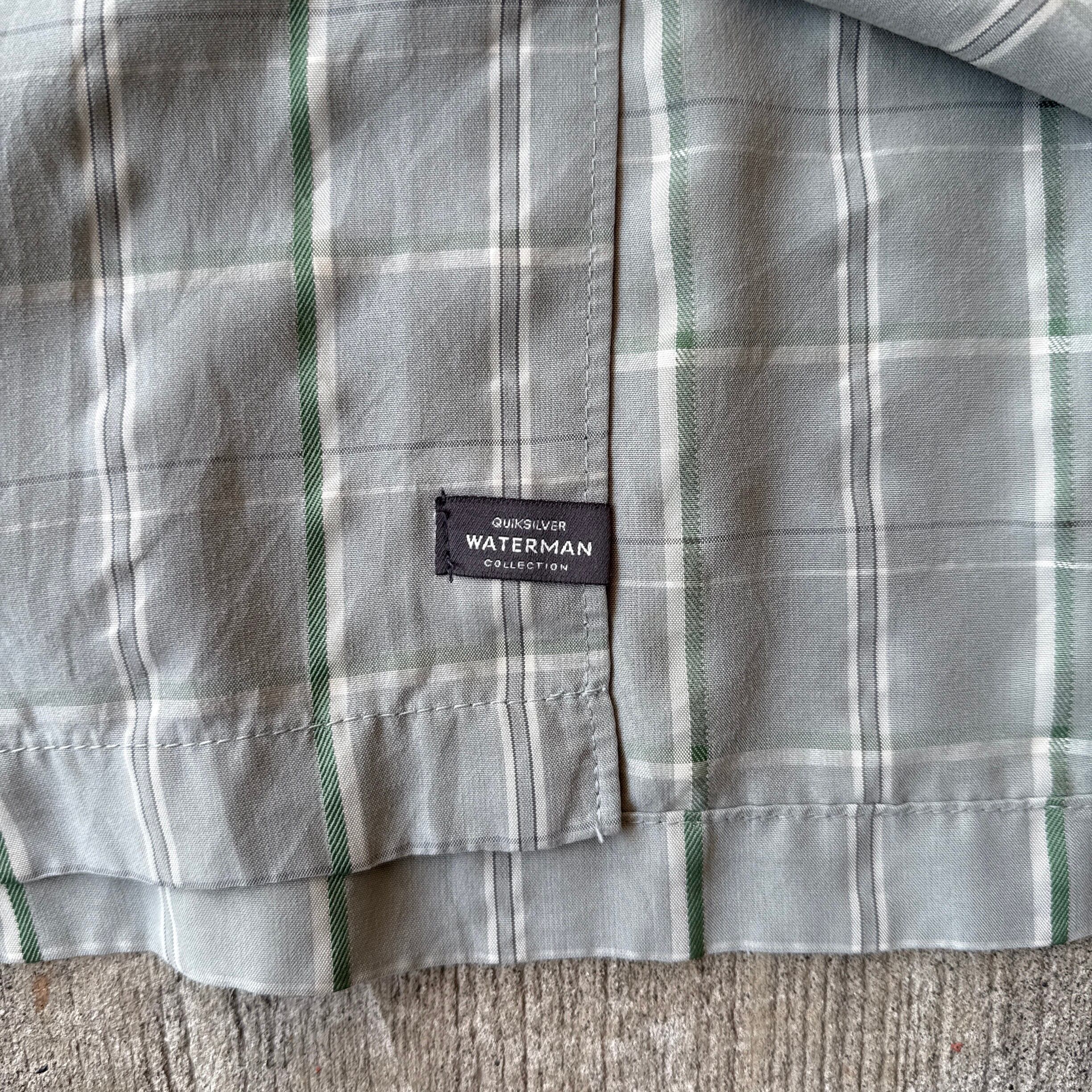 "QUIK SILVER " Short Sleeve Plaid Shirt Gray L Size Surfクイックシルバー 半袖シャツ チェック サーフ グレー【TH1167】【3000円均一商品】