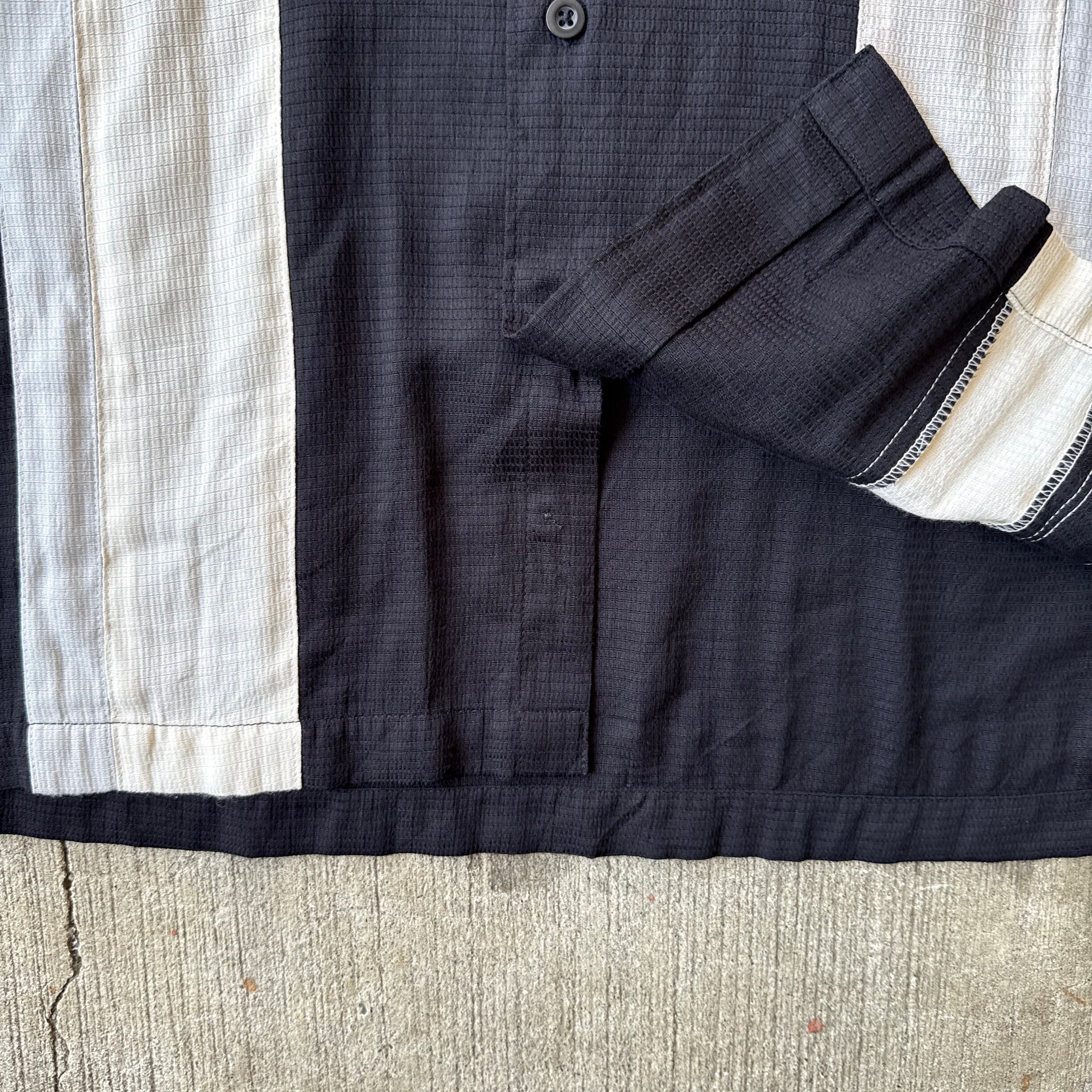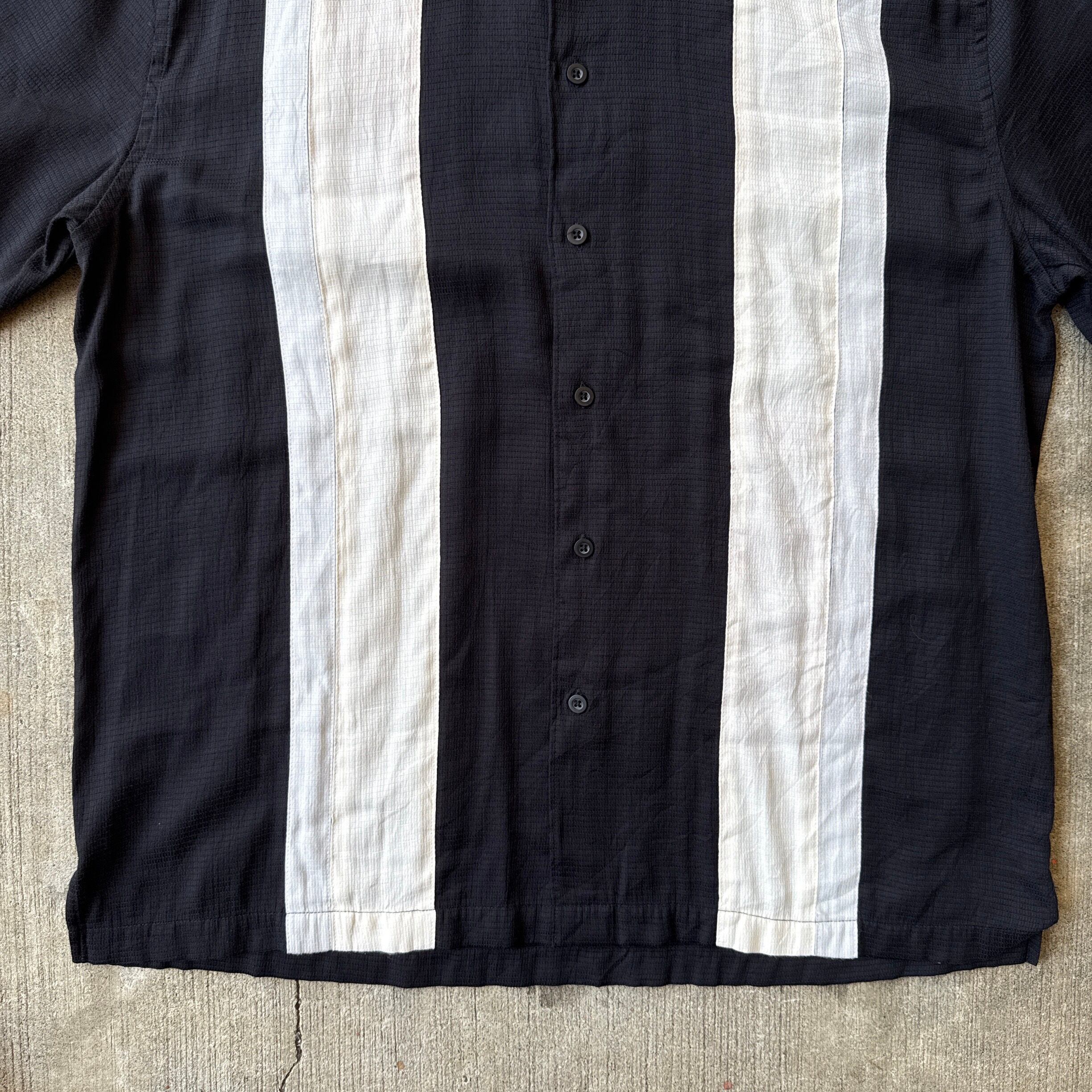 Black RAYON POLYESTER Short Sleeve 2tone Shirt L Size ブラック レーヨン ポリエステル 半袖シャツ ツートーン【TH1171】【3000円均一商品】