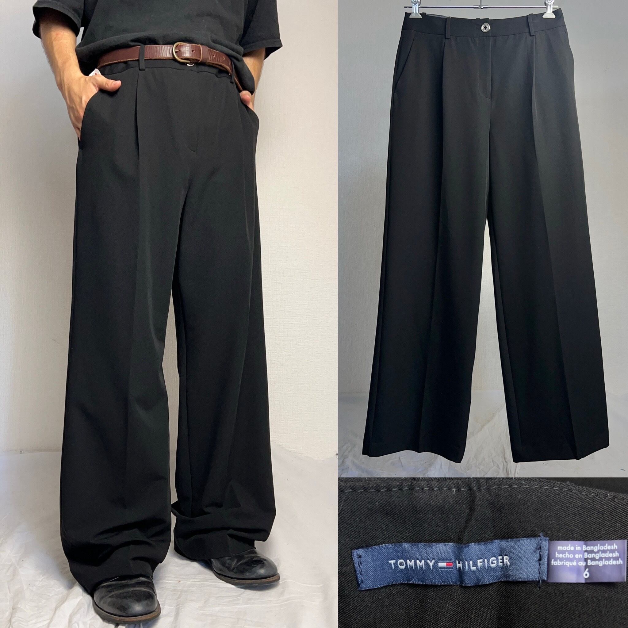 Tommy Hilfiger 1tuck "BAGGY" Slacks Black DEAD STOCK トミーヒルフィガー バギー スラックス ワイド 1タック極太 黒 ブラックW31.5 デッドストック【1000A4001】