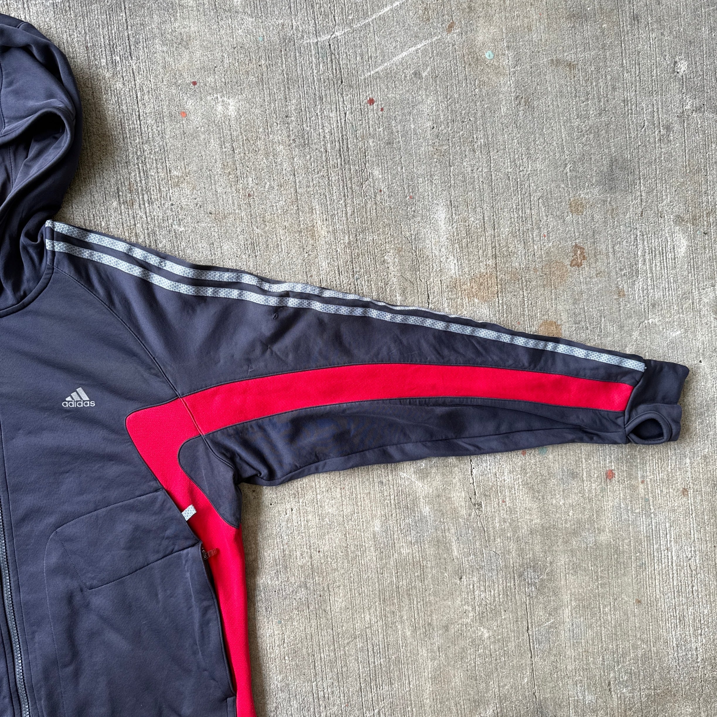 "adidas" Black Red Gray Track Jacket Hood M Size アディダス 黒 赤 グレー トラックジャケット フード 【TH1202】【3000円均一商品】
