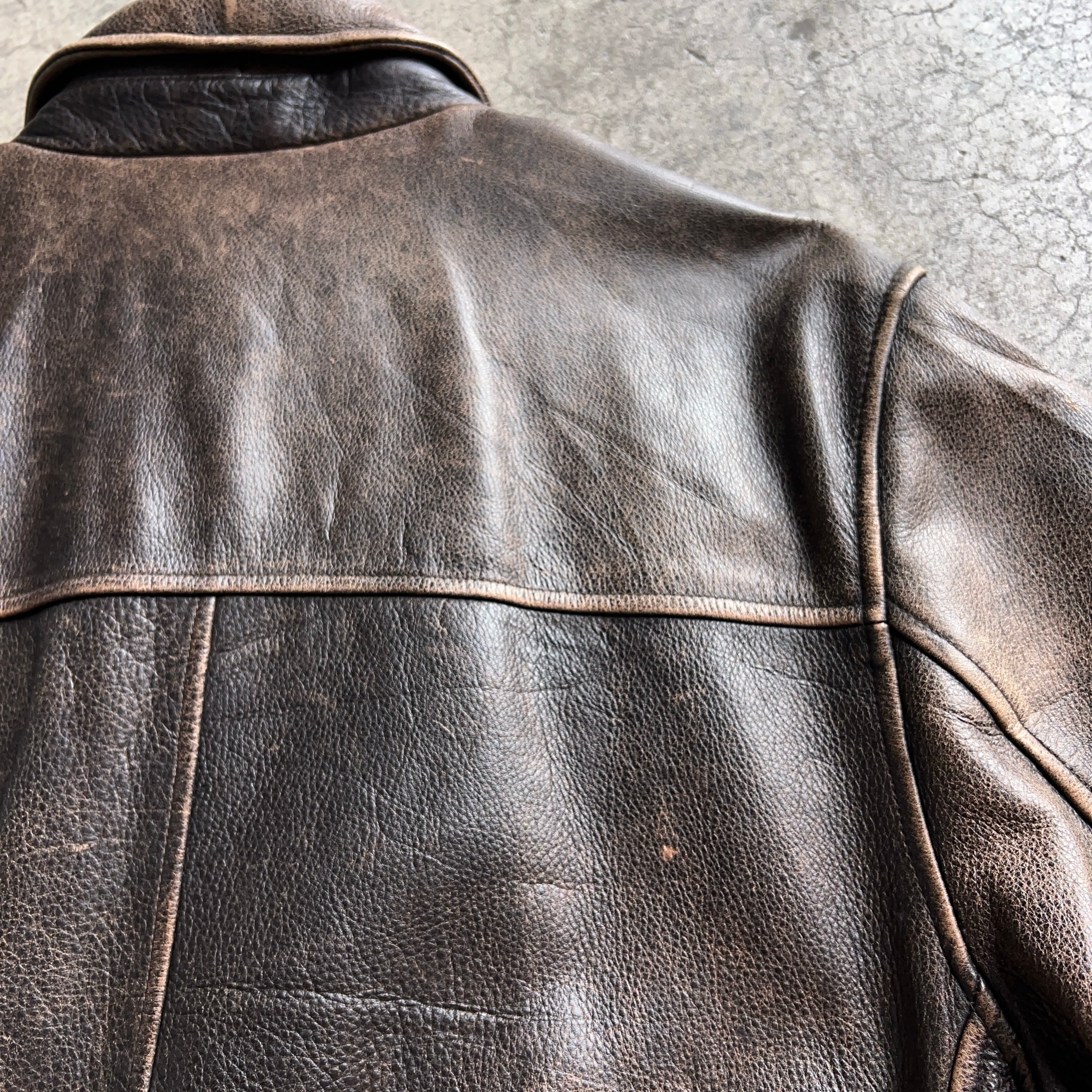 肉厚でありながら柔らかくてもちもちとしたレザーが使われており非常に着心地とシルエットが良い1着となります。