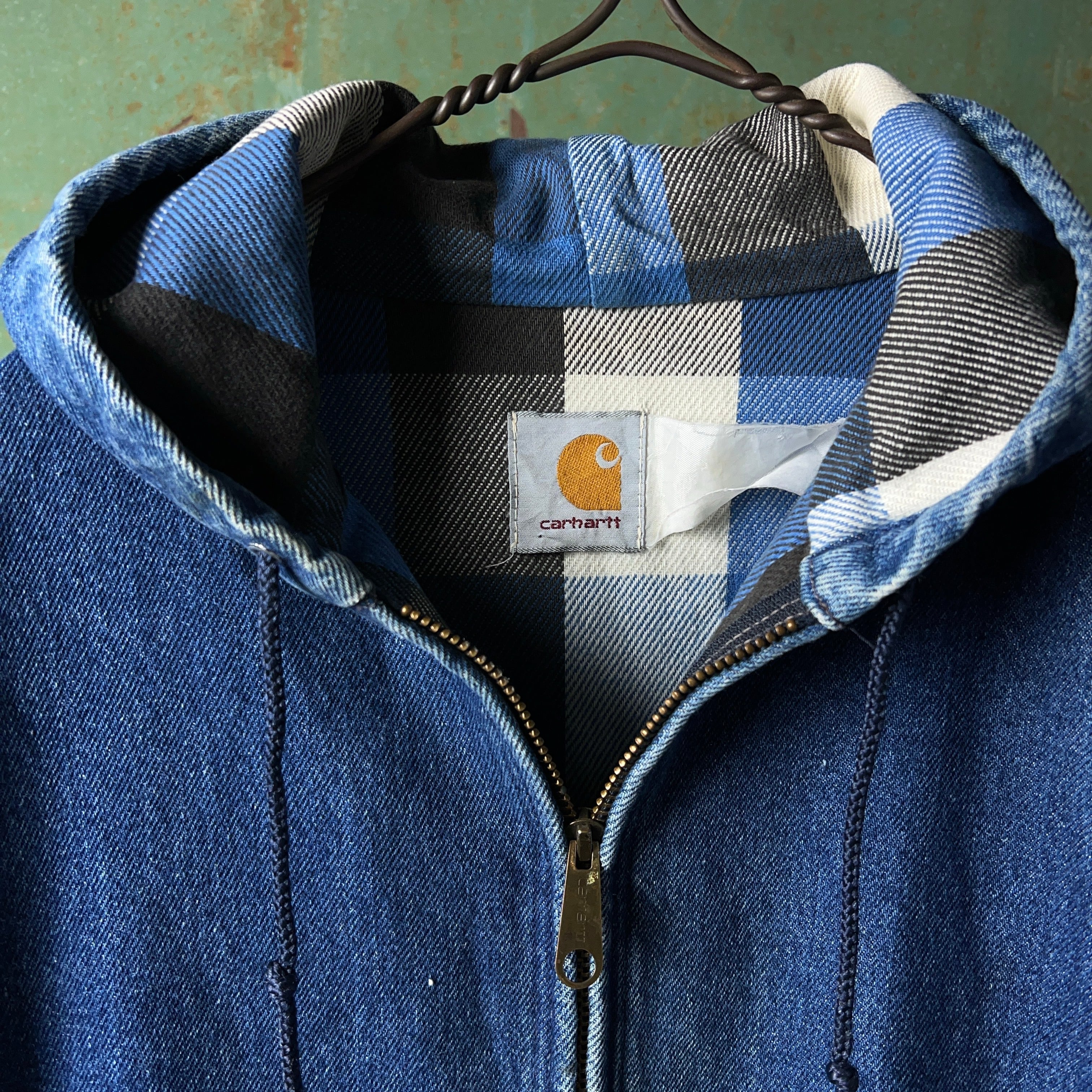 90's~ Carhartt Denim Active Jacket Heavy Flannel 90年代 00年代 カーハート アクティブジャケット デニム パーカー フード ベビーネル【1000A5018】【送料無料】