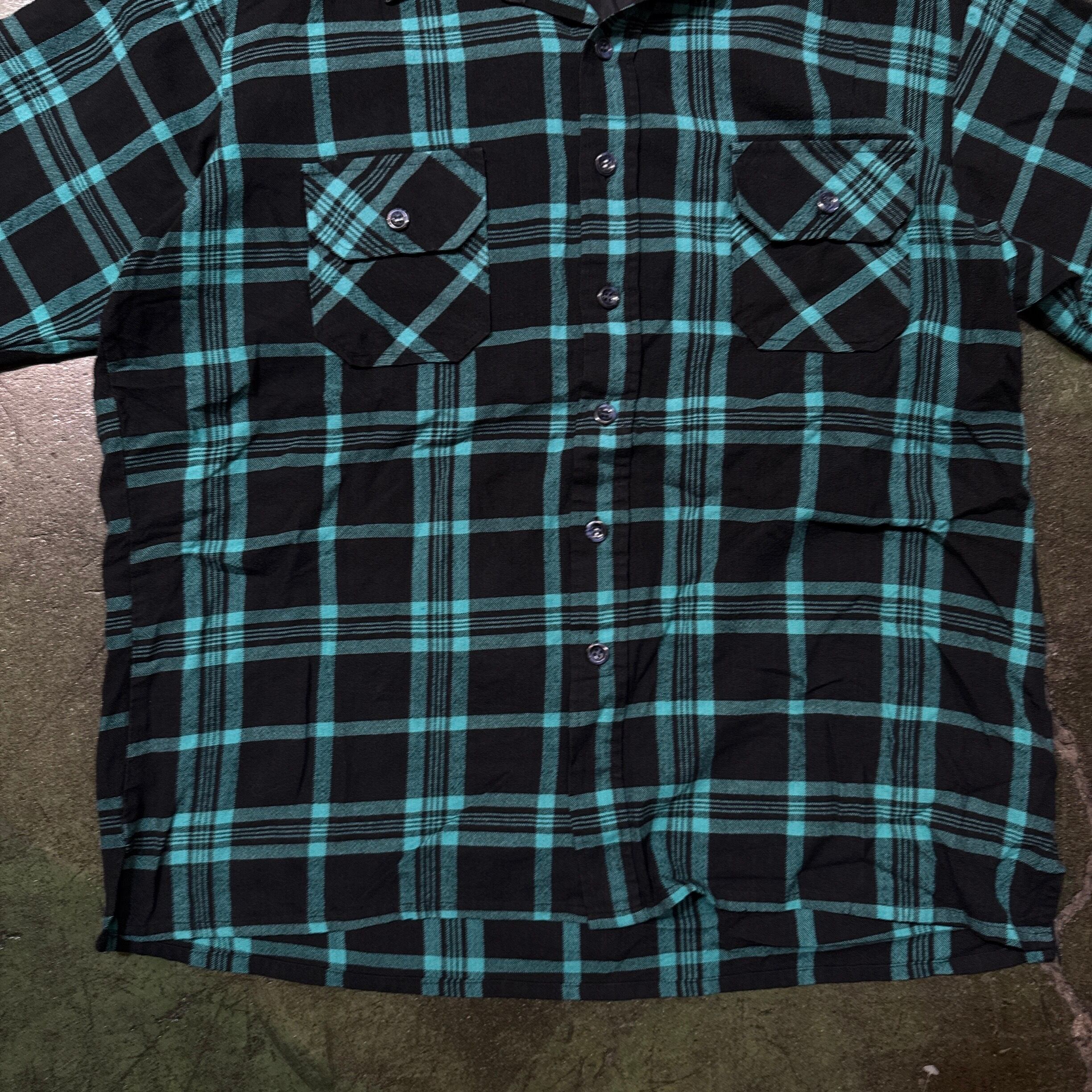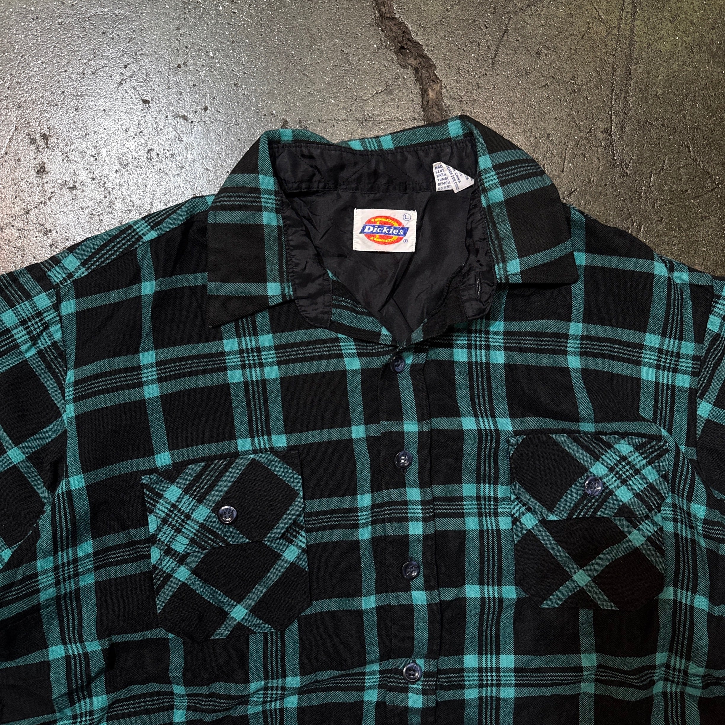 80年代から90年代頃のディッキーズのチェックシャツ。ベージュや紺、赤などのイメージが強いディッキーズが黒とミントグリーンの配色でチェックシャツを作ってしまうセンス。
