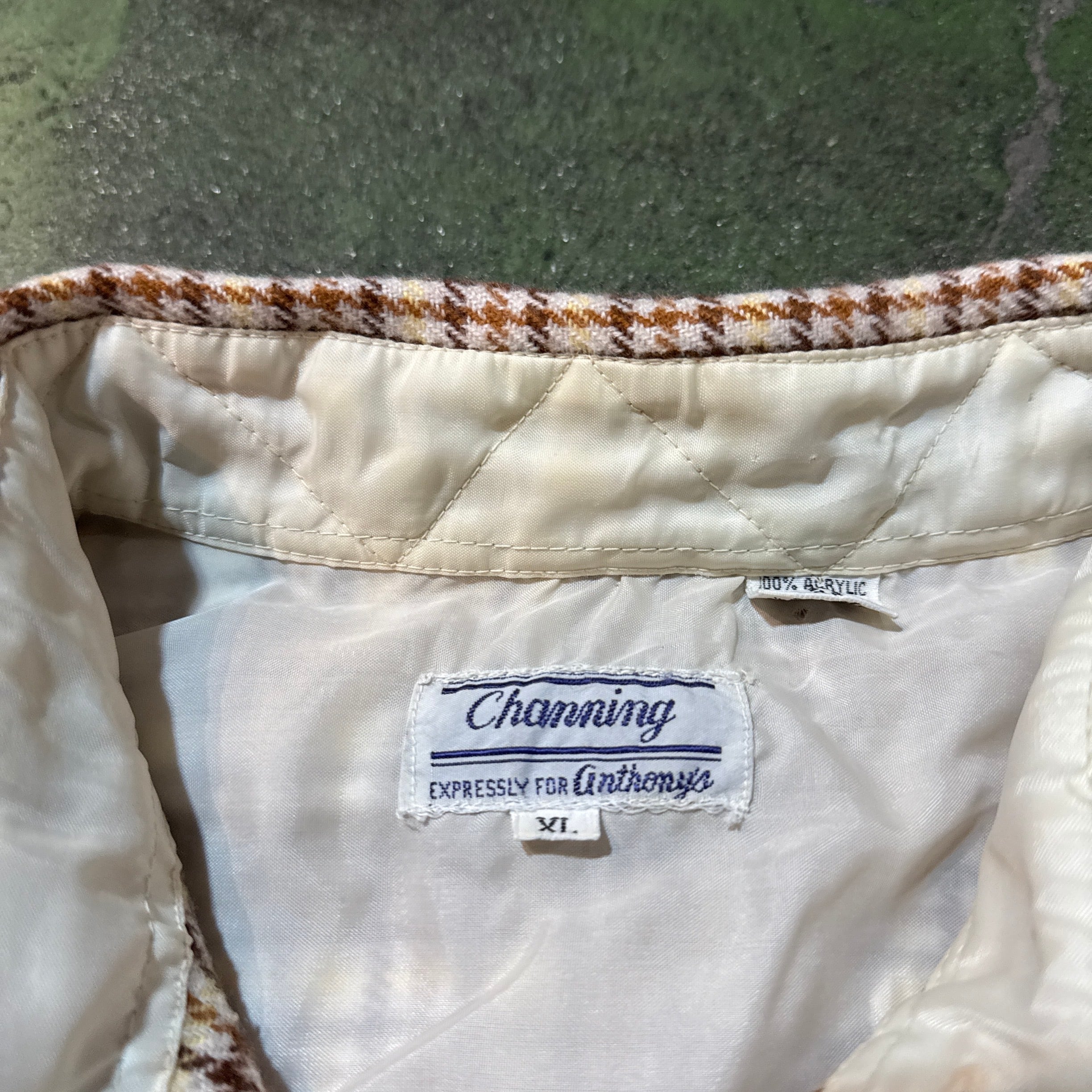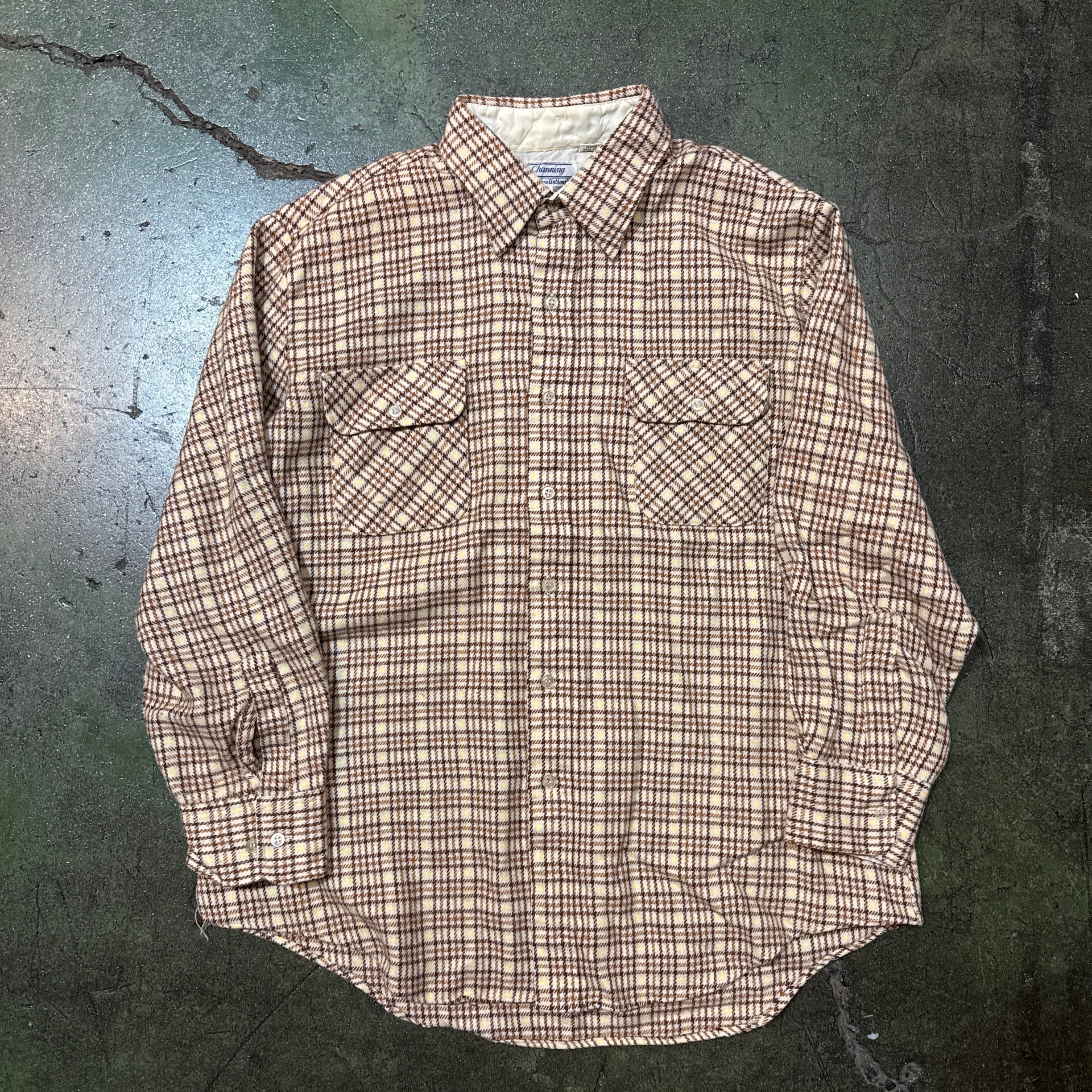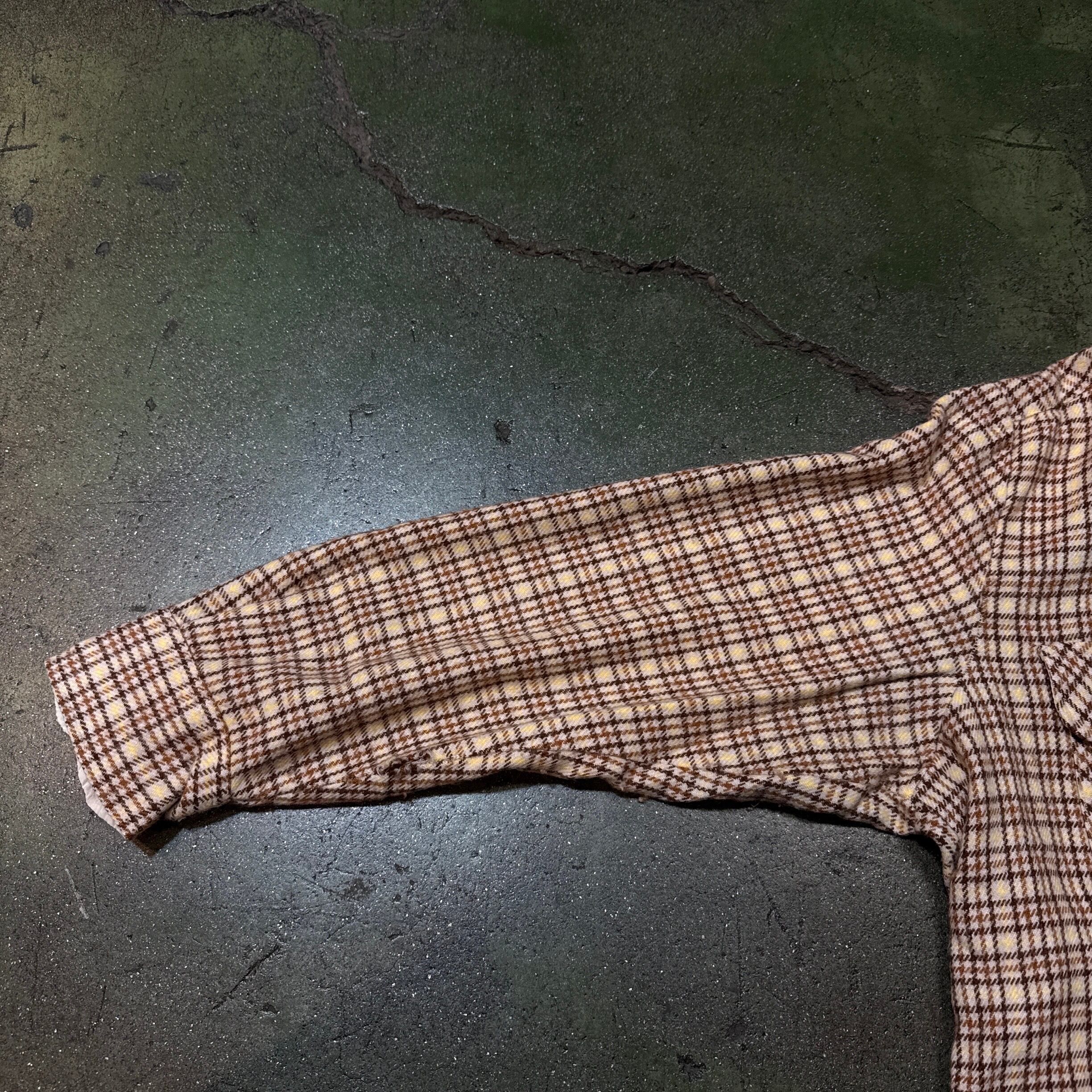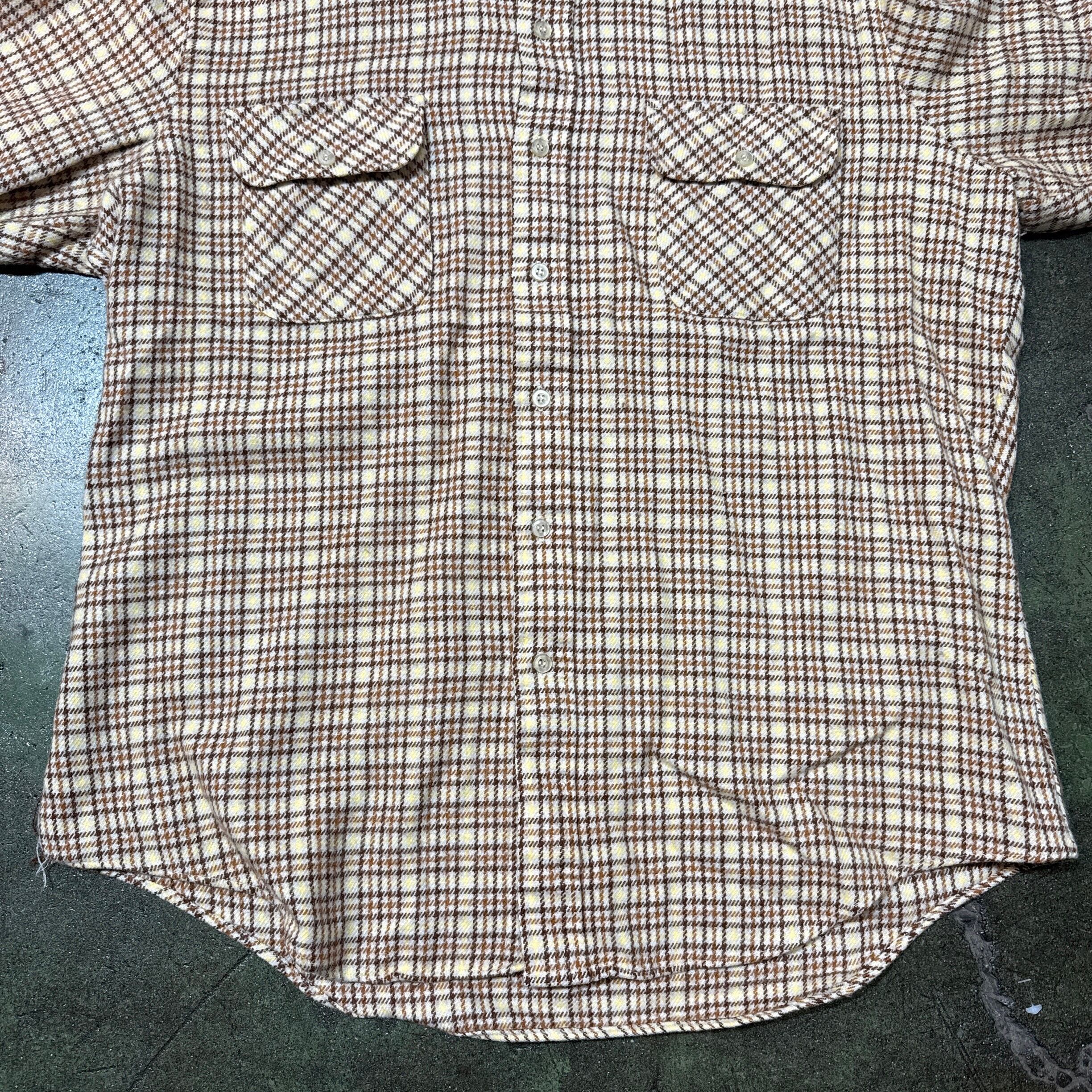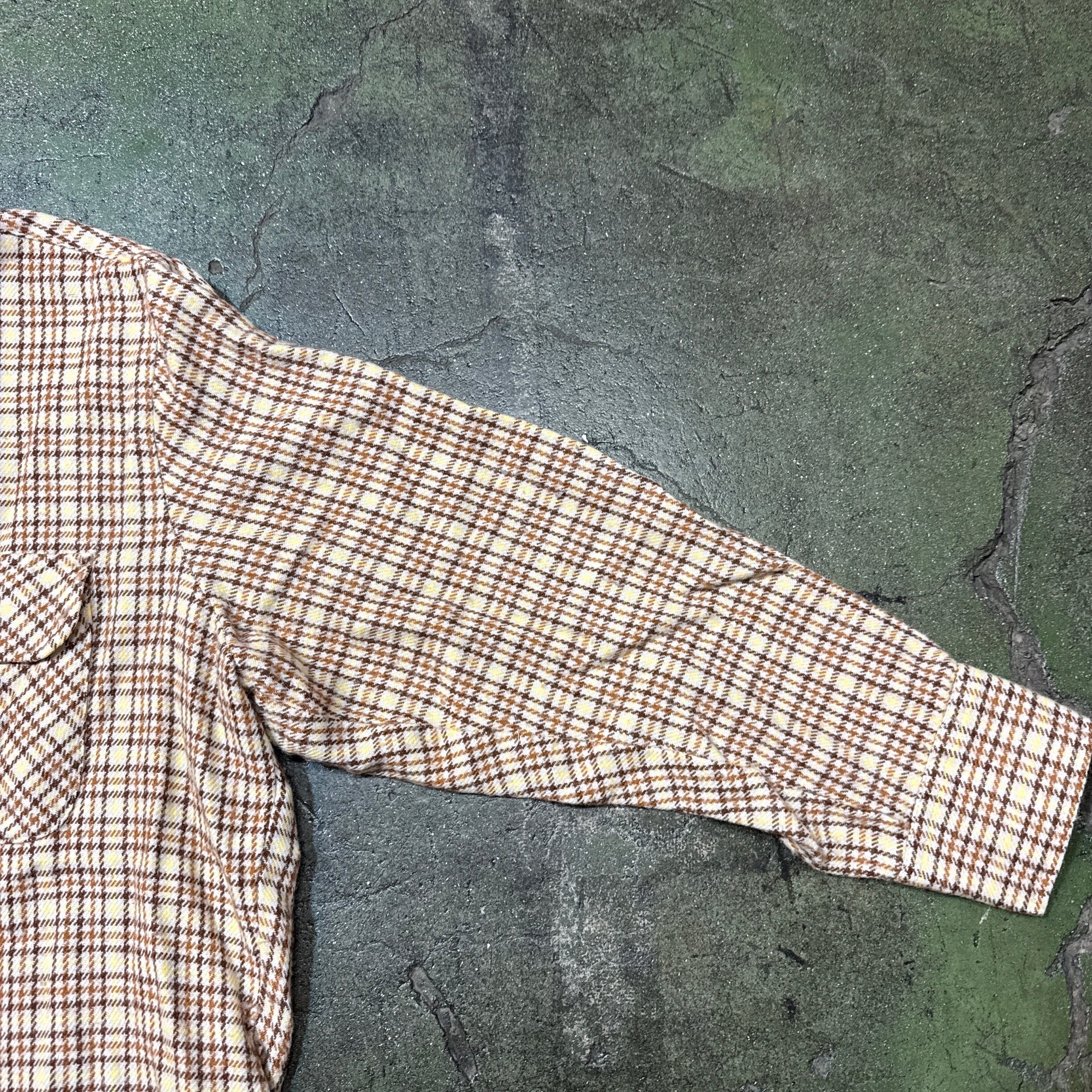 80s Long Sleeve Plaid Acrylic Shirt Brown Yellow XL Size 80年代 長袖チェックシャツ アクリル ブラウン イエロー XL サイズ 【TH1312】【3000円均一商品】