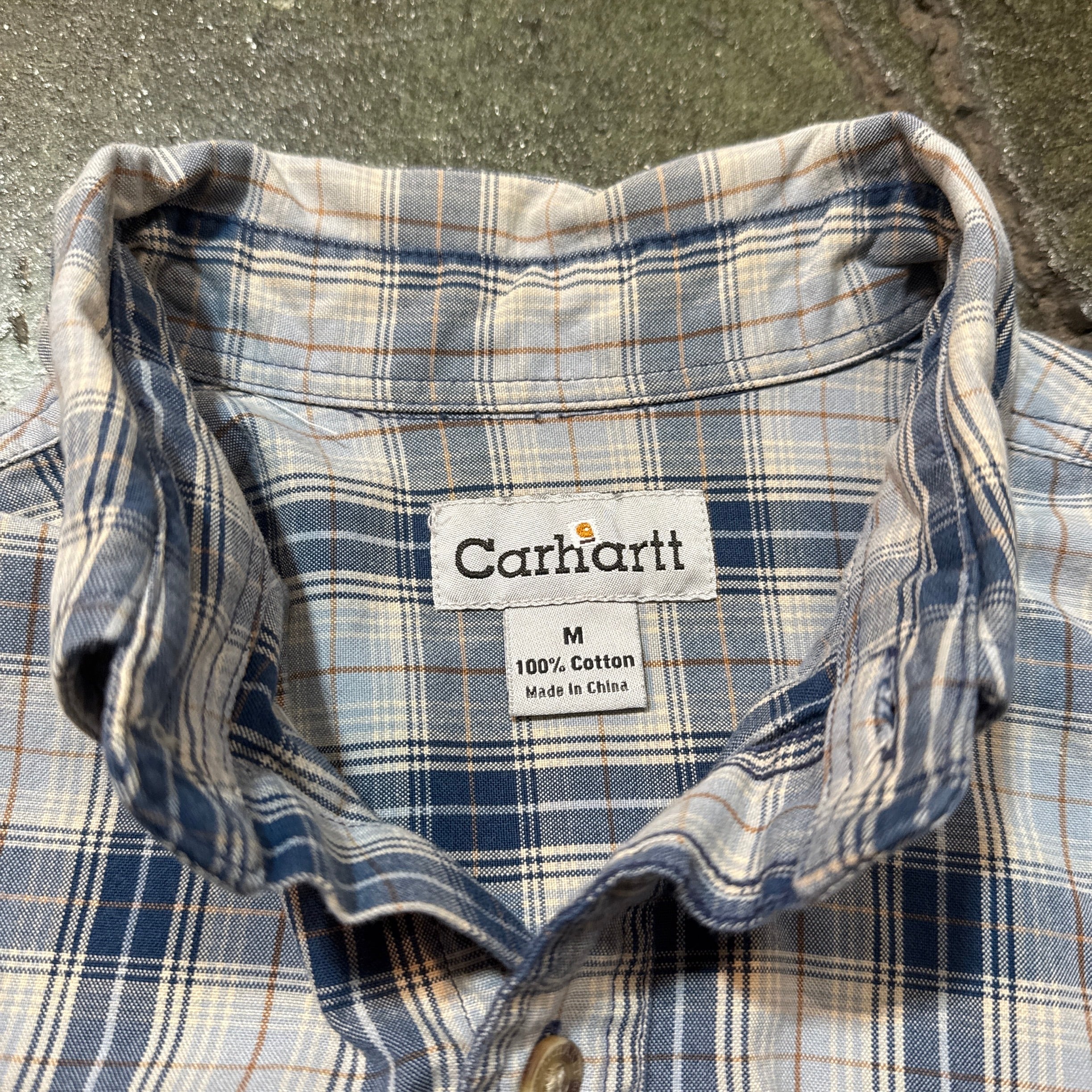 Carhartt Long Sleeve Plaid Shirt Cotton Blue M Size カーハート 長袖チェックシャツ コットン ブルー Mサイズ 【TH1314】【3000円均一商品】